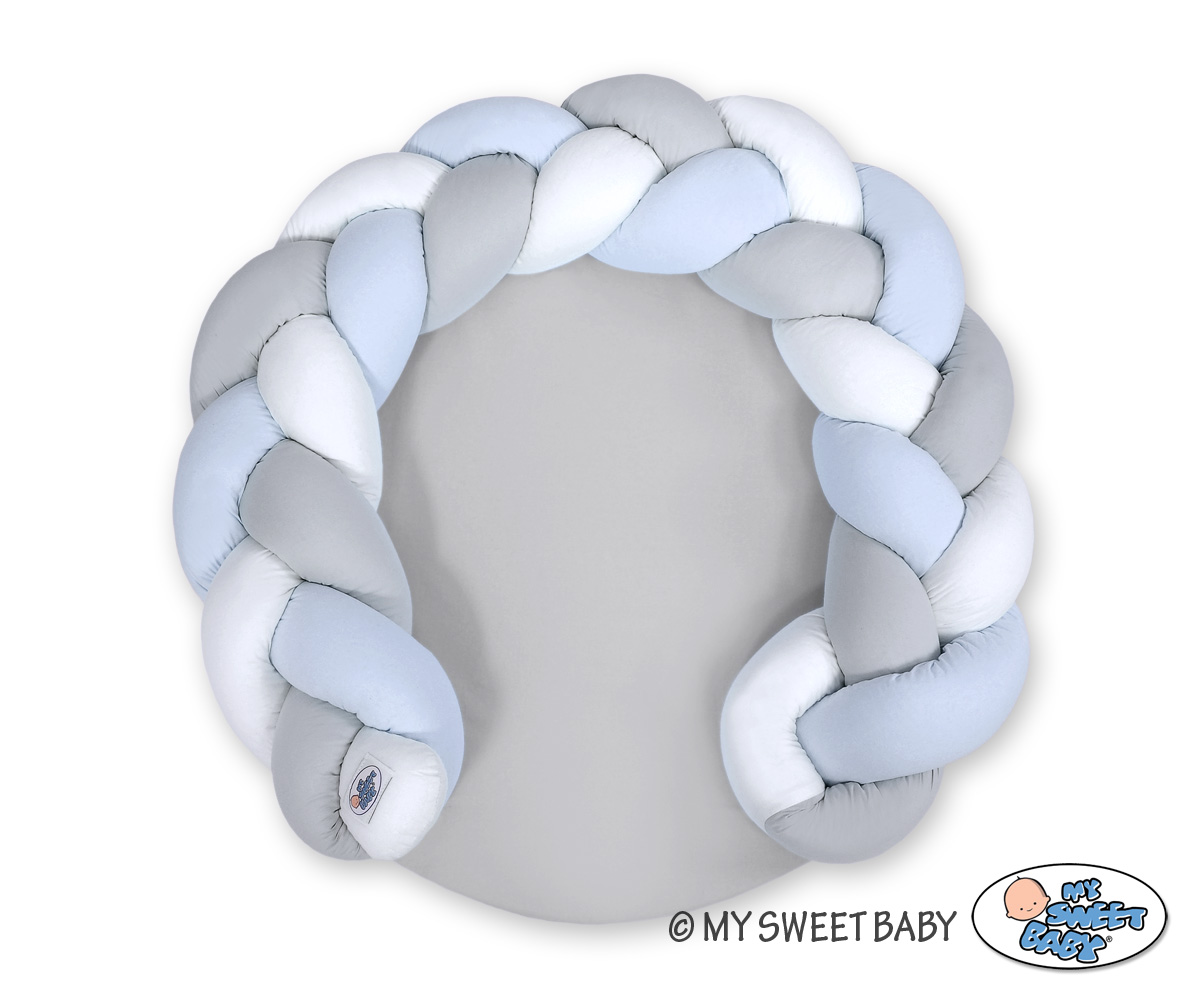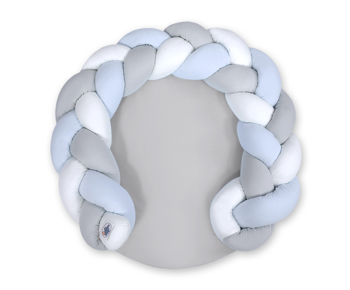 Babynestchen / Bettumrandung Geflochten / Spielmatte 2 in1 - weiß-blau-grau