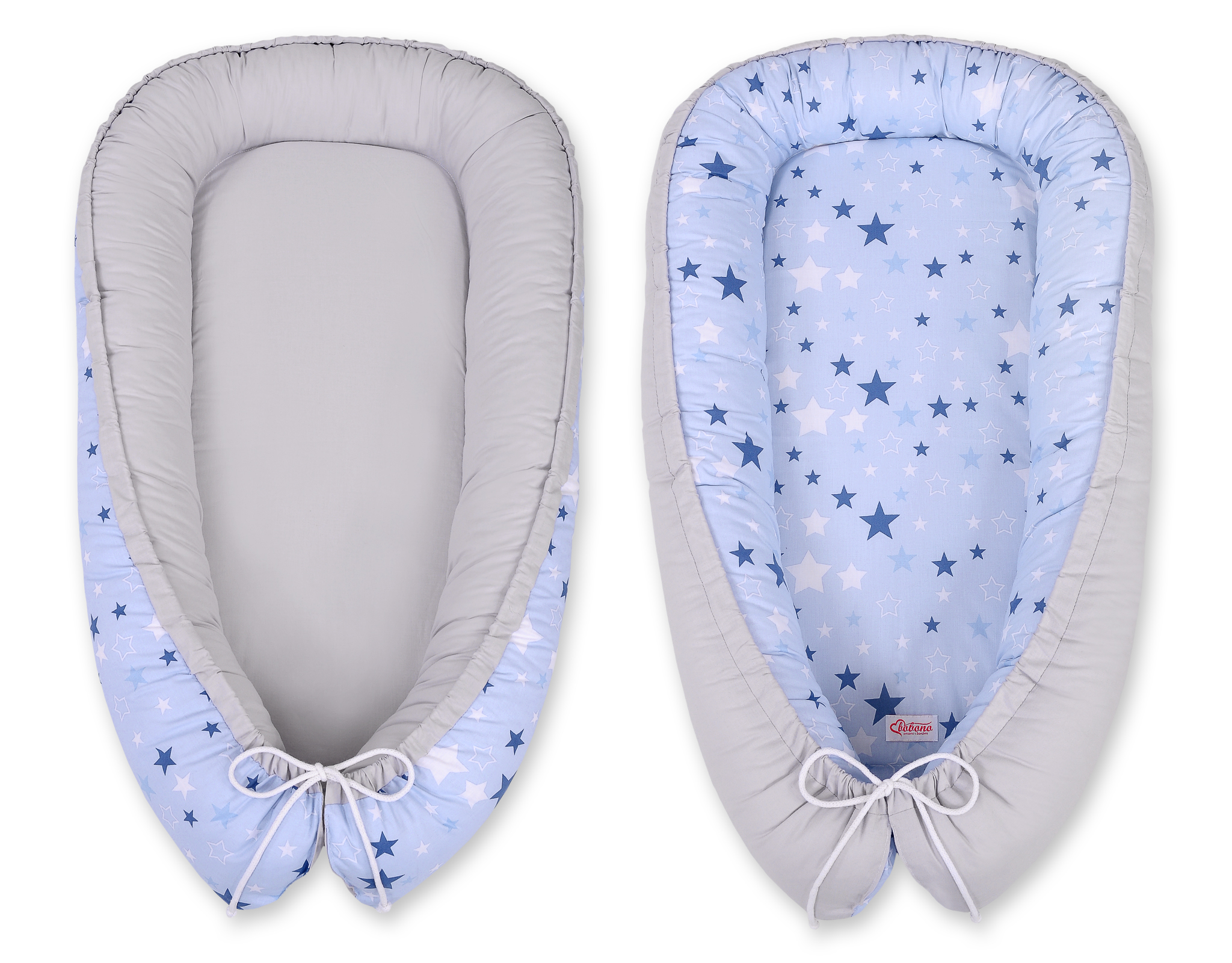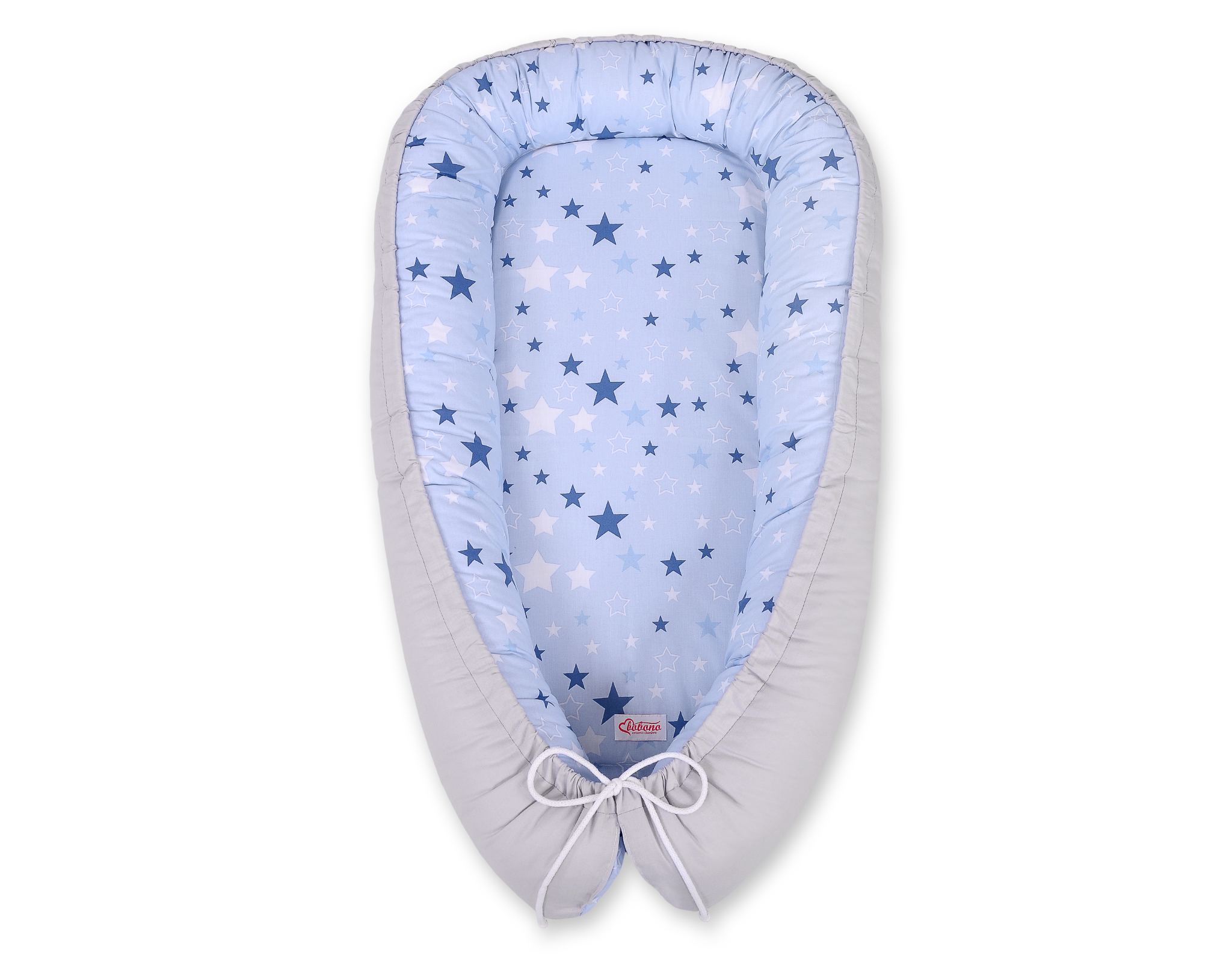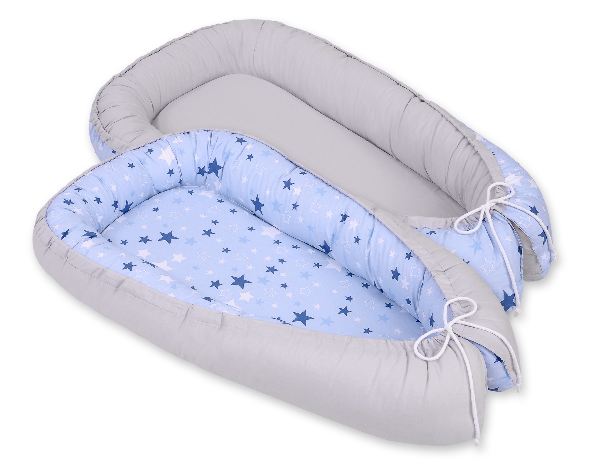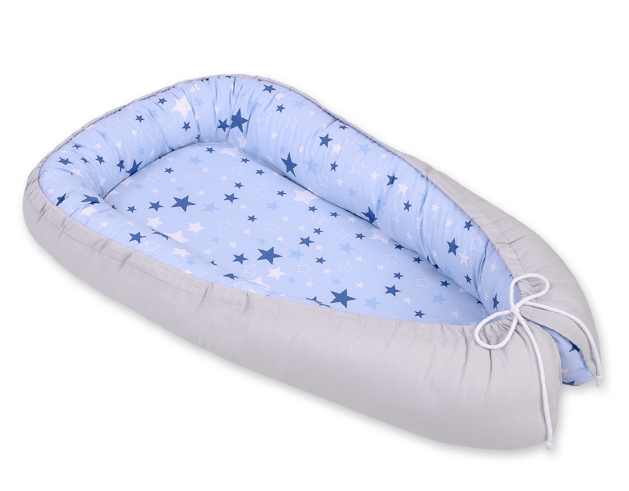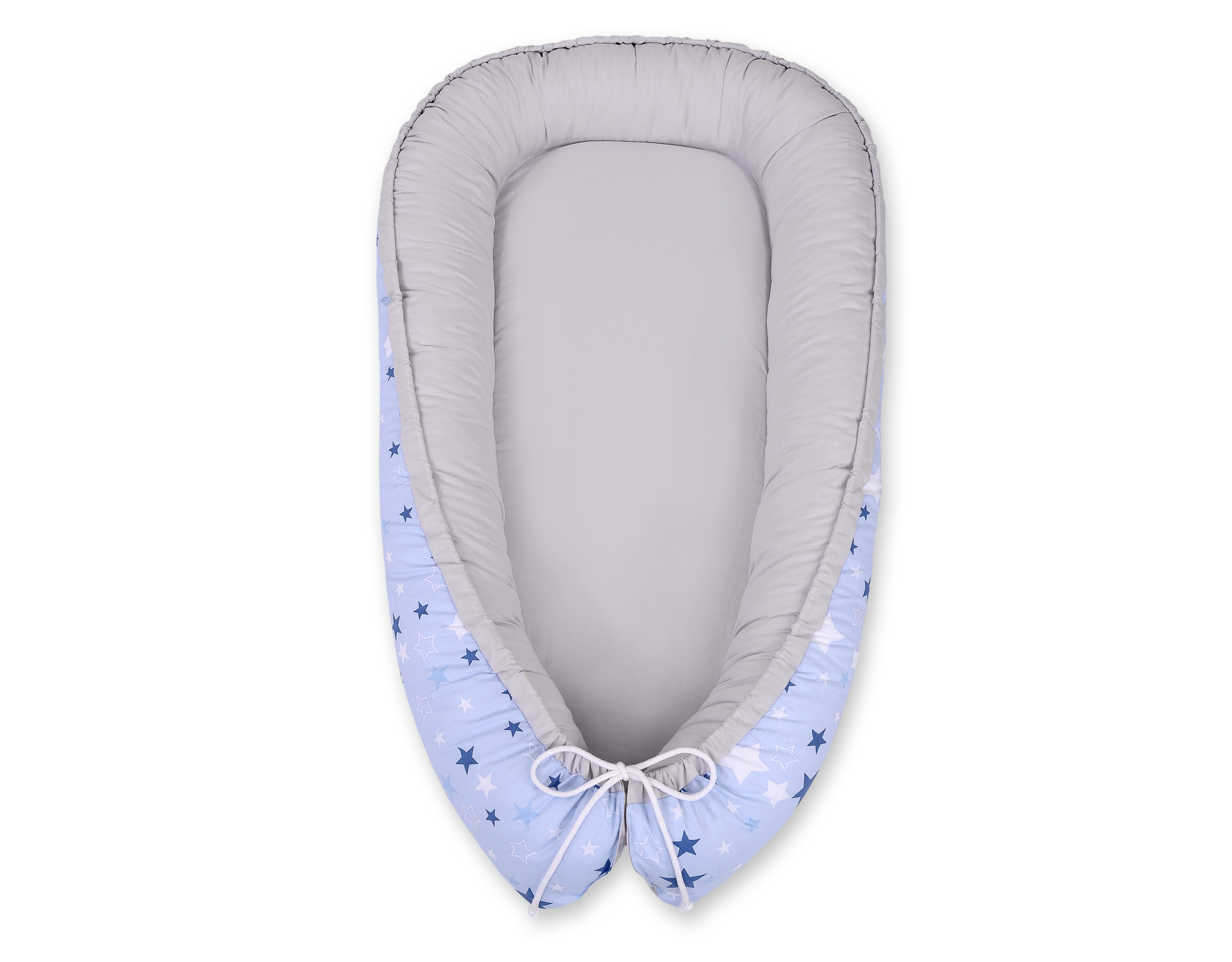 Stubenwagen » Bettwäsche für Babys » Bettwäsche für Babybett FUN & JOY » Babynestchen » Babynestchen - blaue Sternen/grau