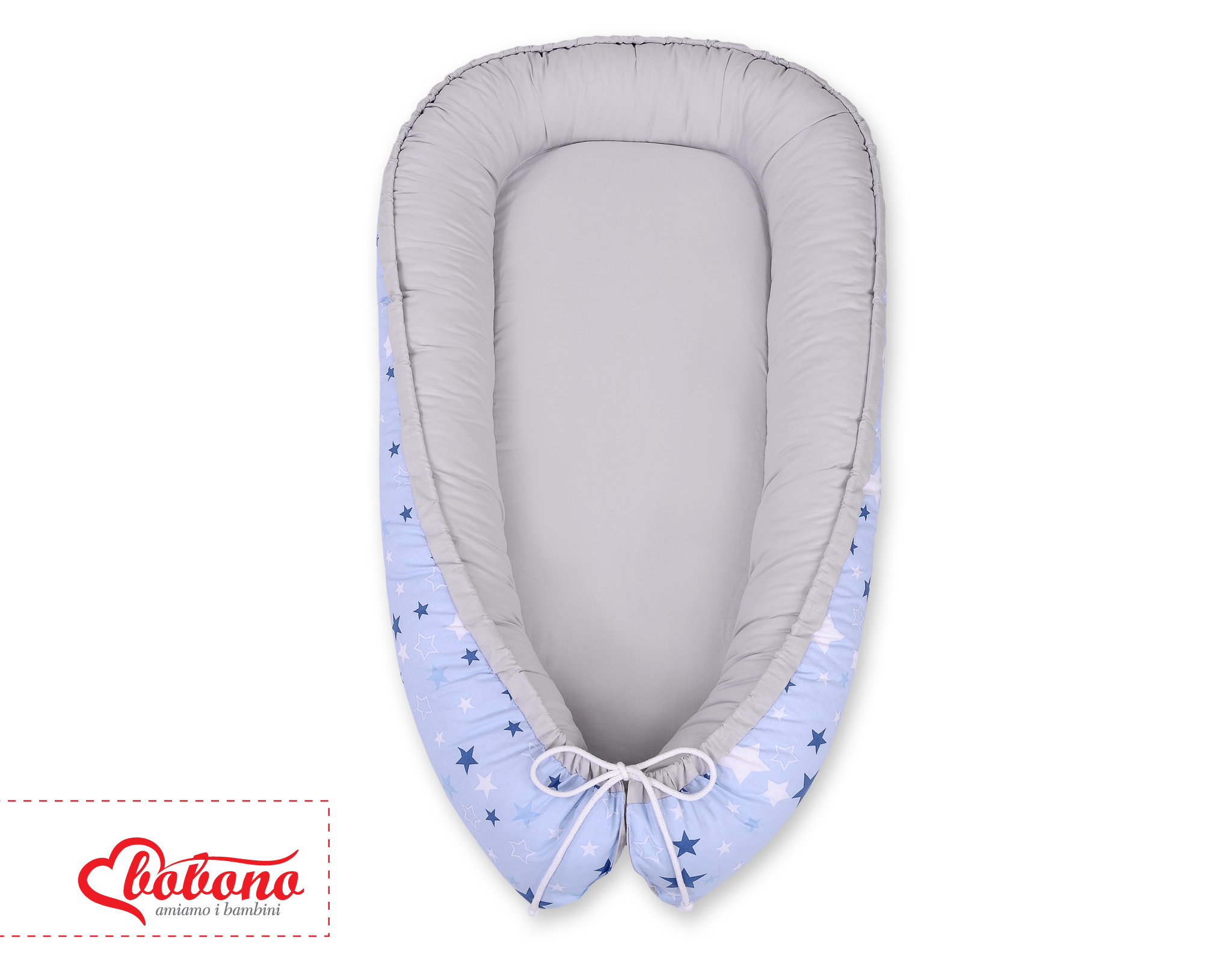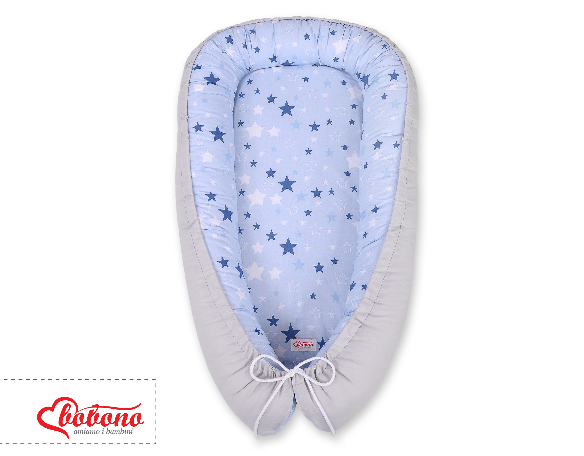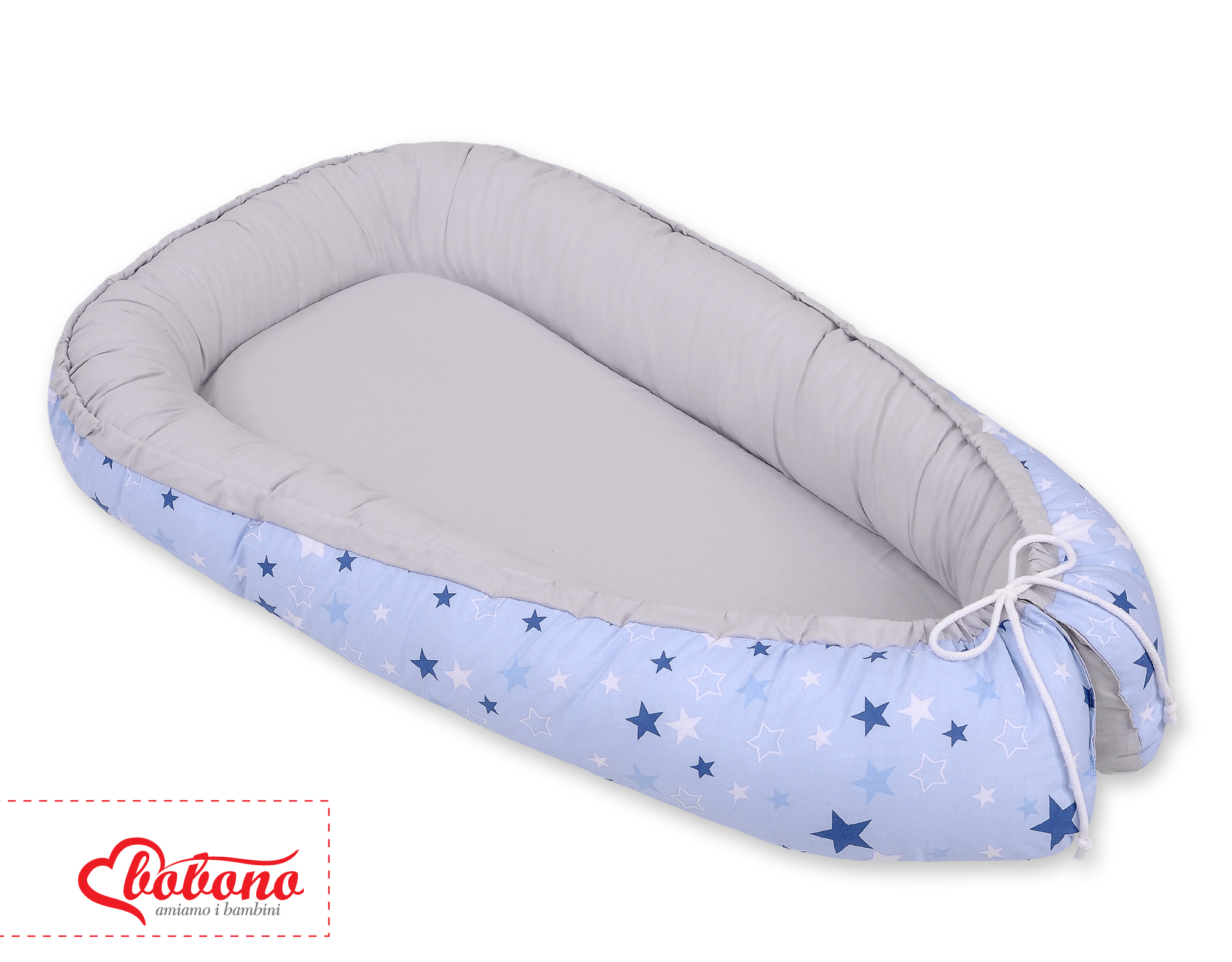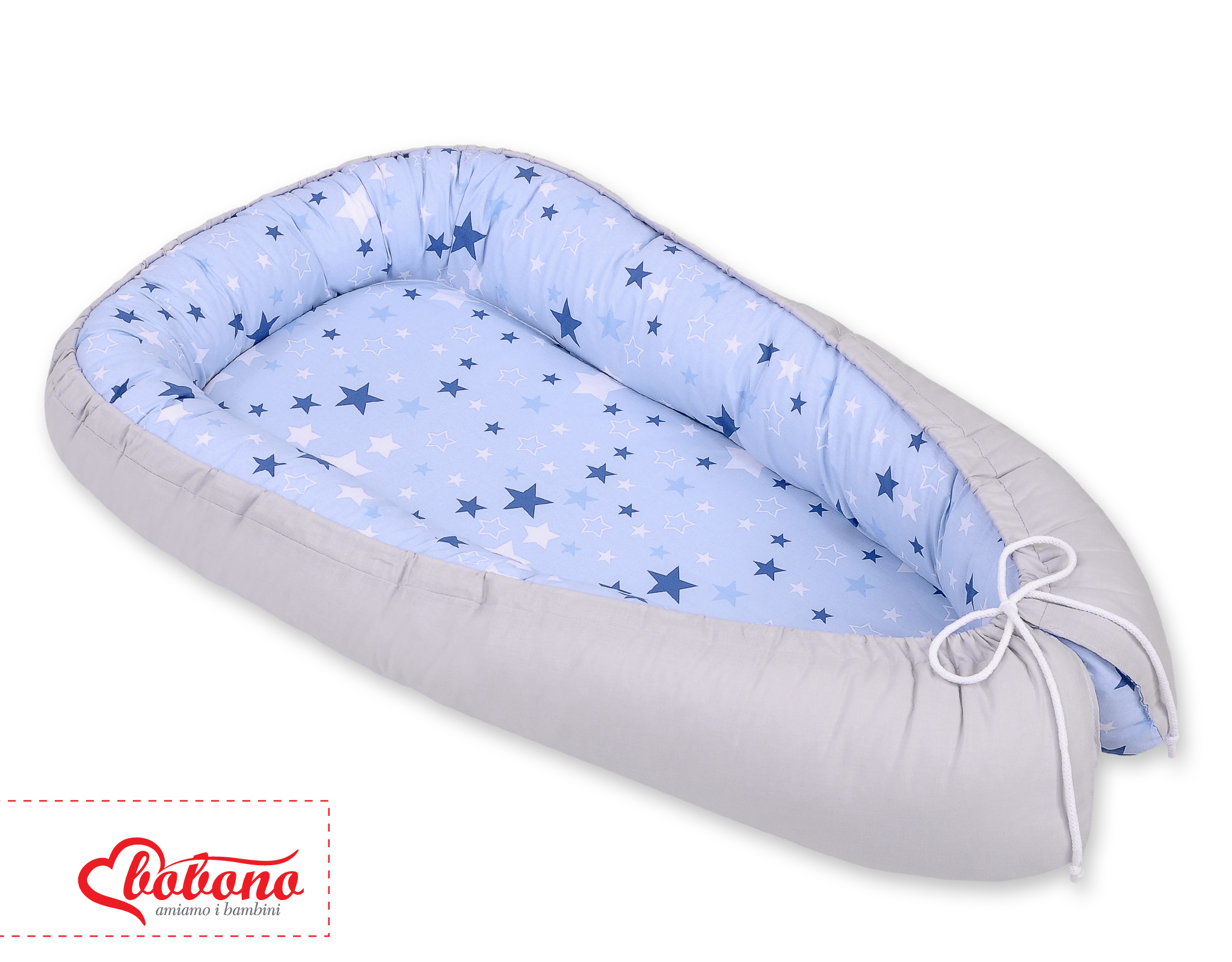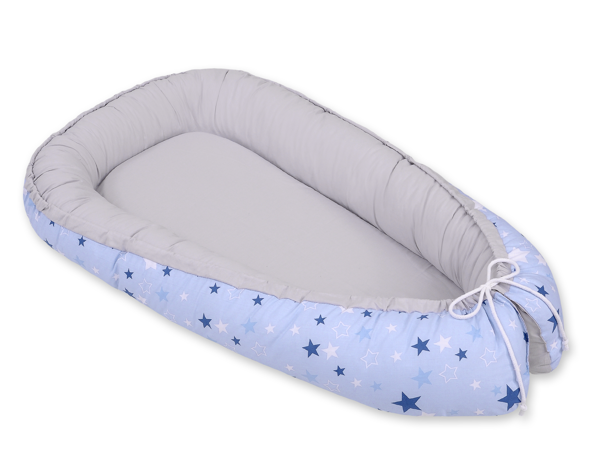 Stubenwagen » Bettwäsche für Babys » Bettwäsche für Babybett FUN & JOY » Babynestchen » Babynestchen - blaue Sternen/grau