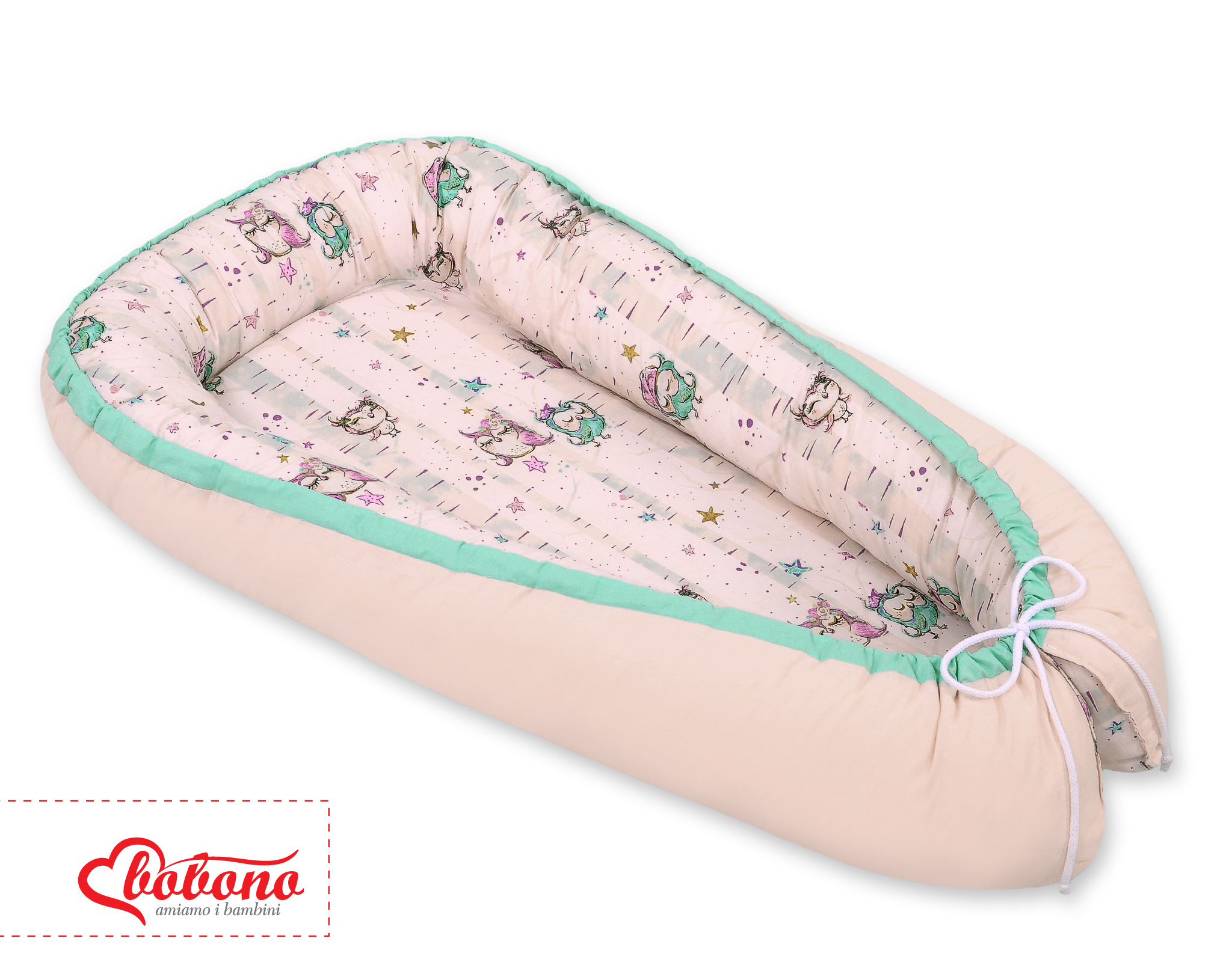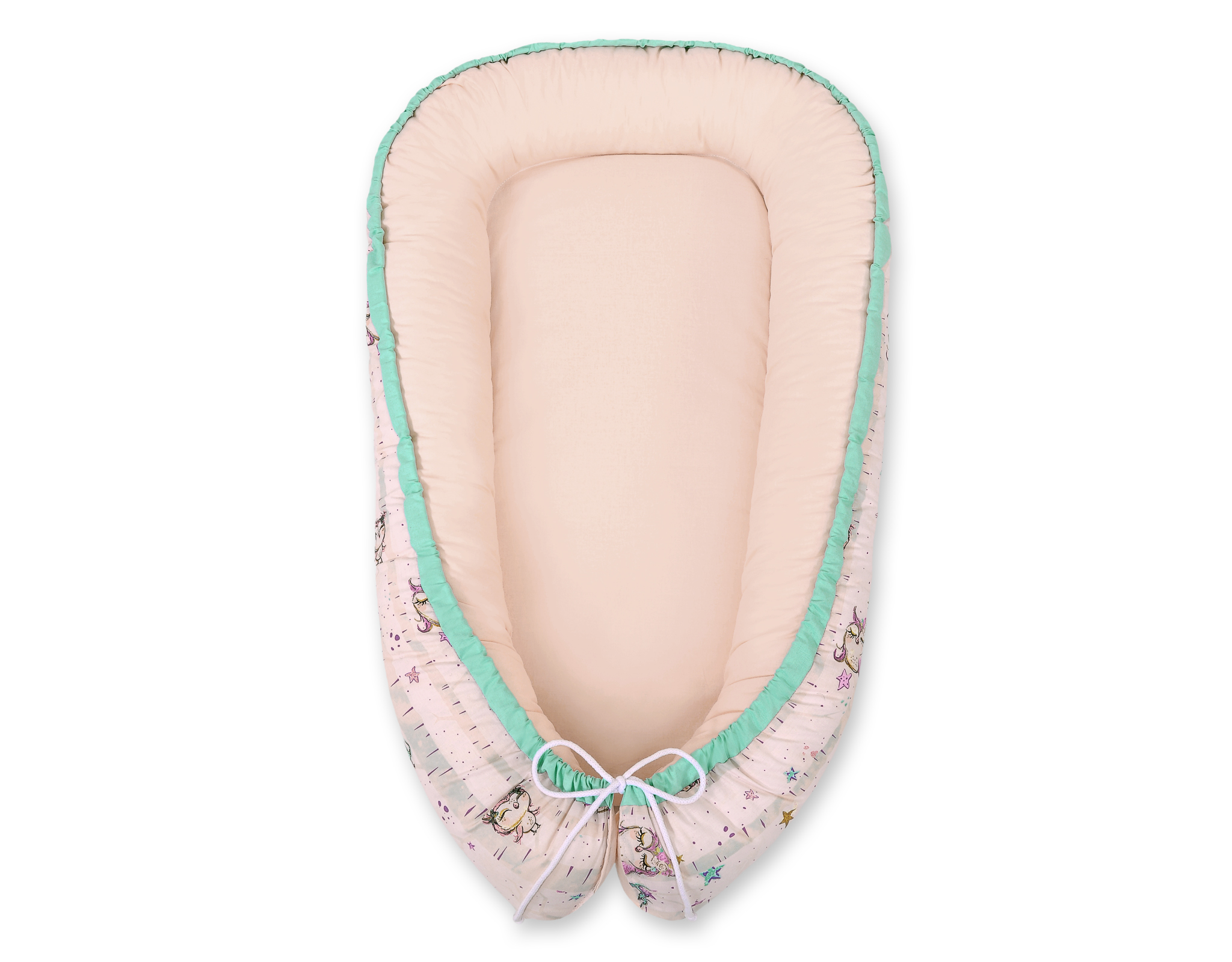 Es kann in das Kinderbett, Stubenwagen oder Wiege reingelegt werden. Somit hat das Baby seinen eigenen Raum, wo es sich sicher und geborgen füllt. Die hohen Ränder erleichtern den Eltern das Baby in der seitlichen Possition zu legen.