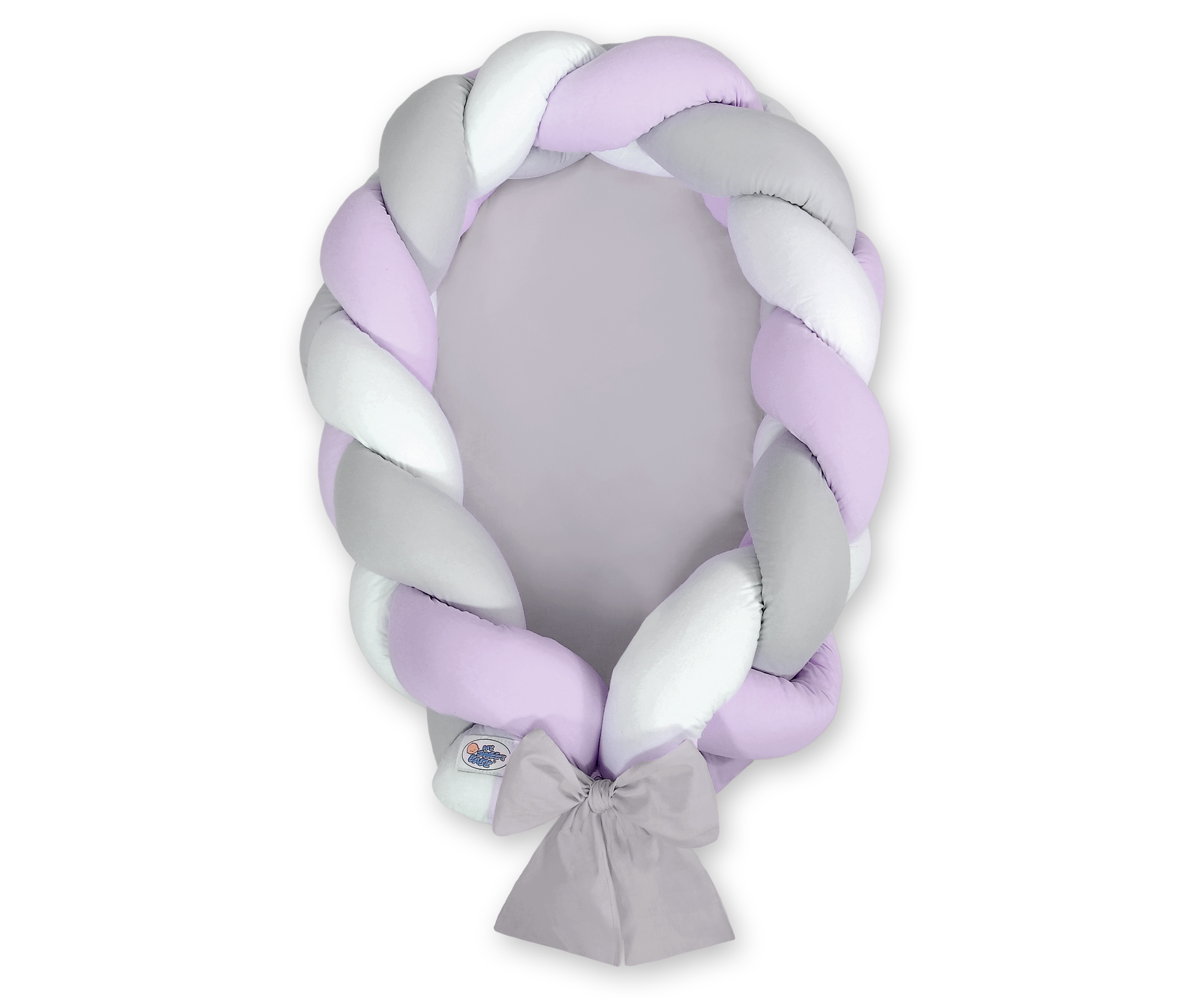 Babynestchen Geflochten 2 in 1 Bettumrandung - weiß-lila-grau