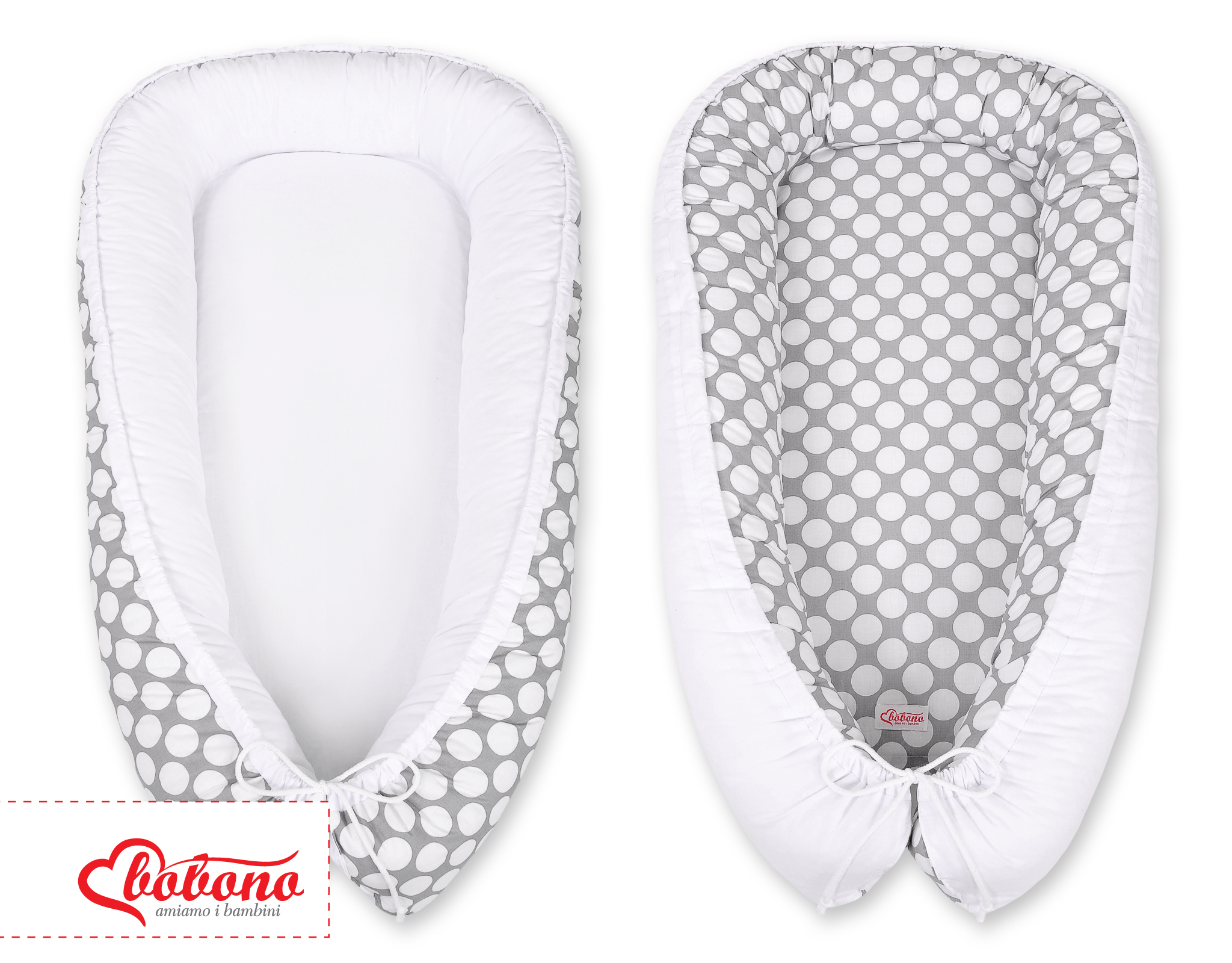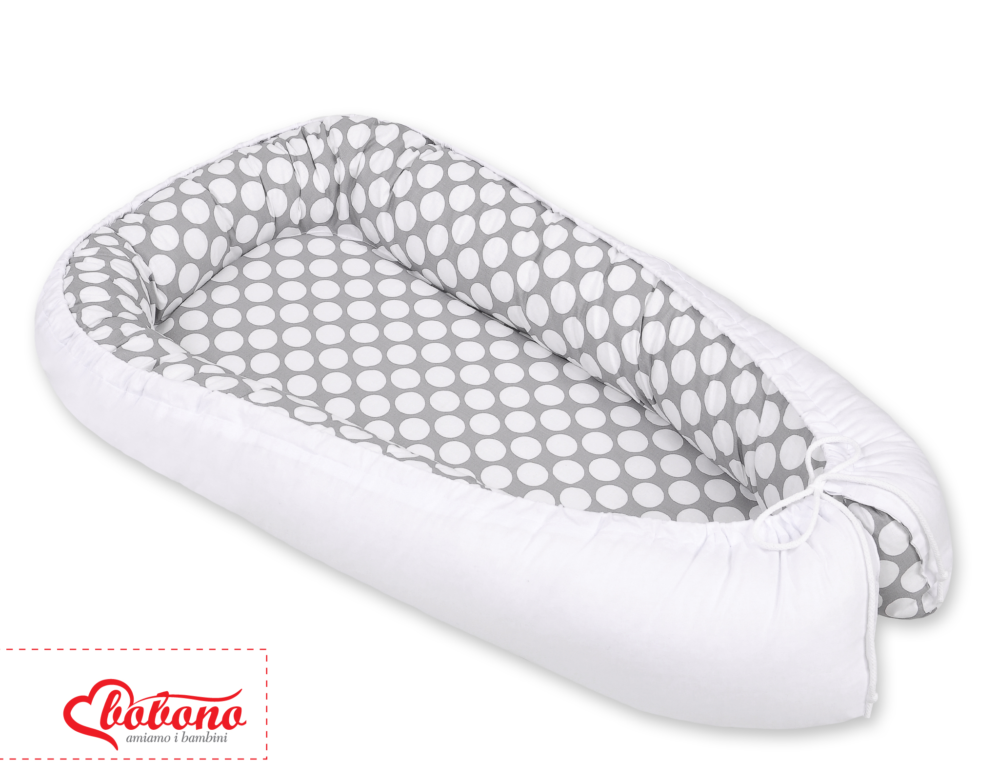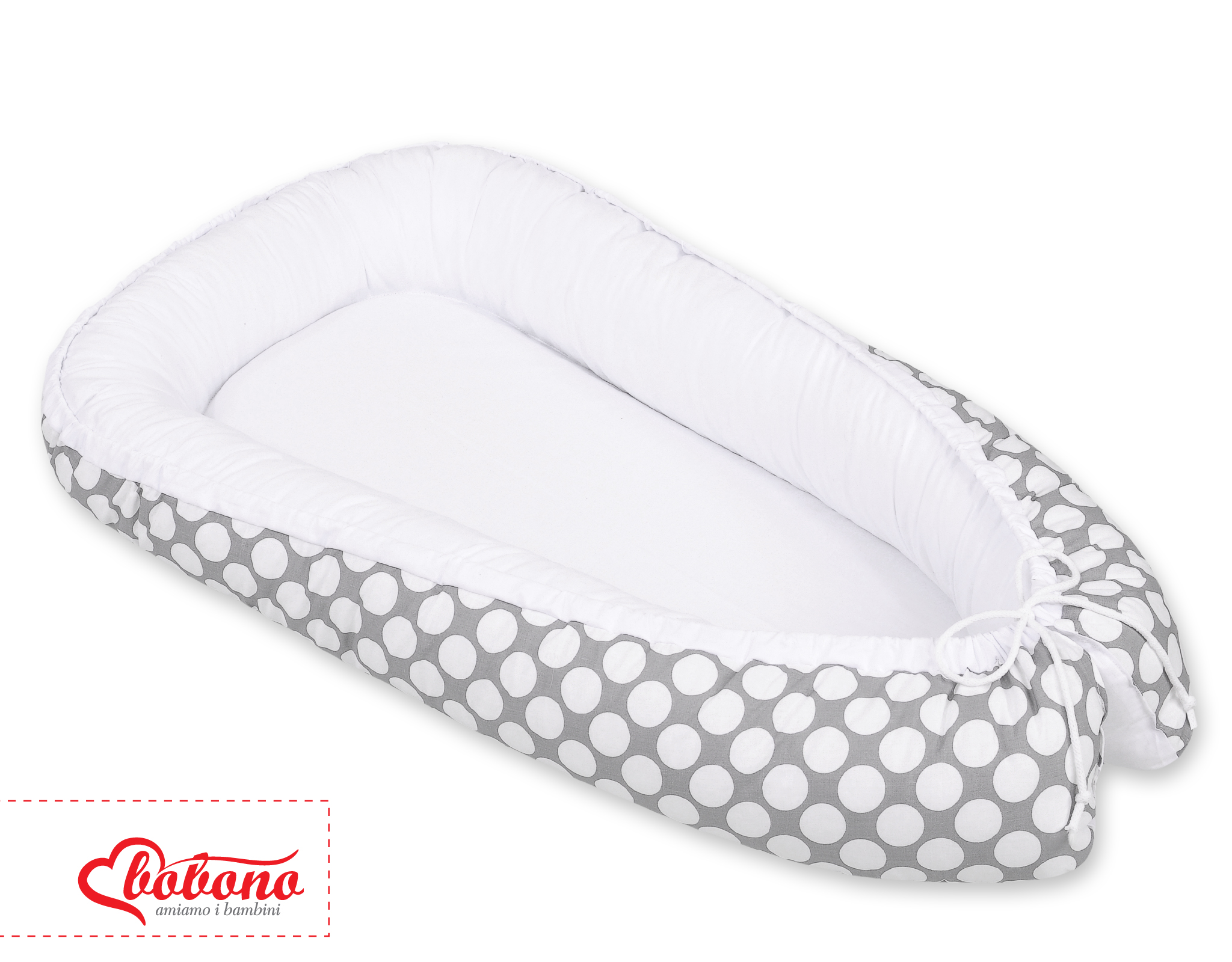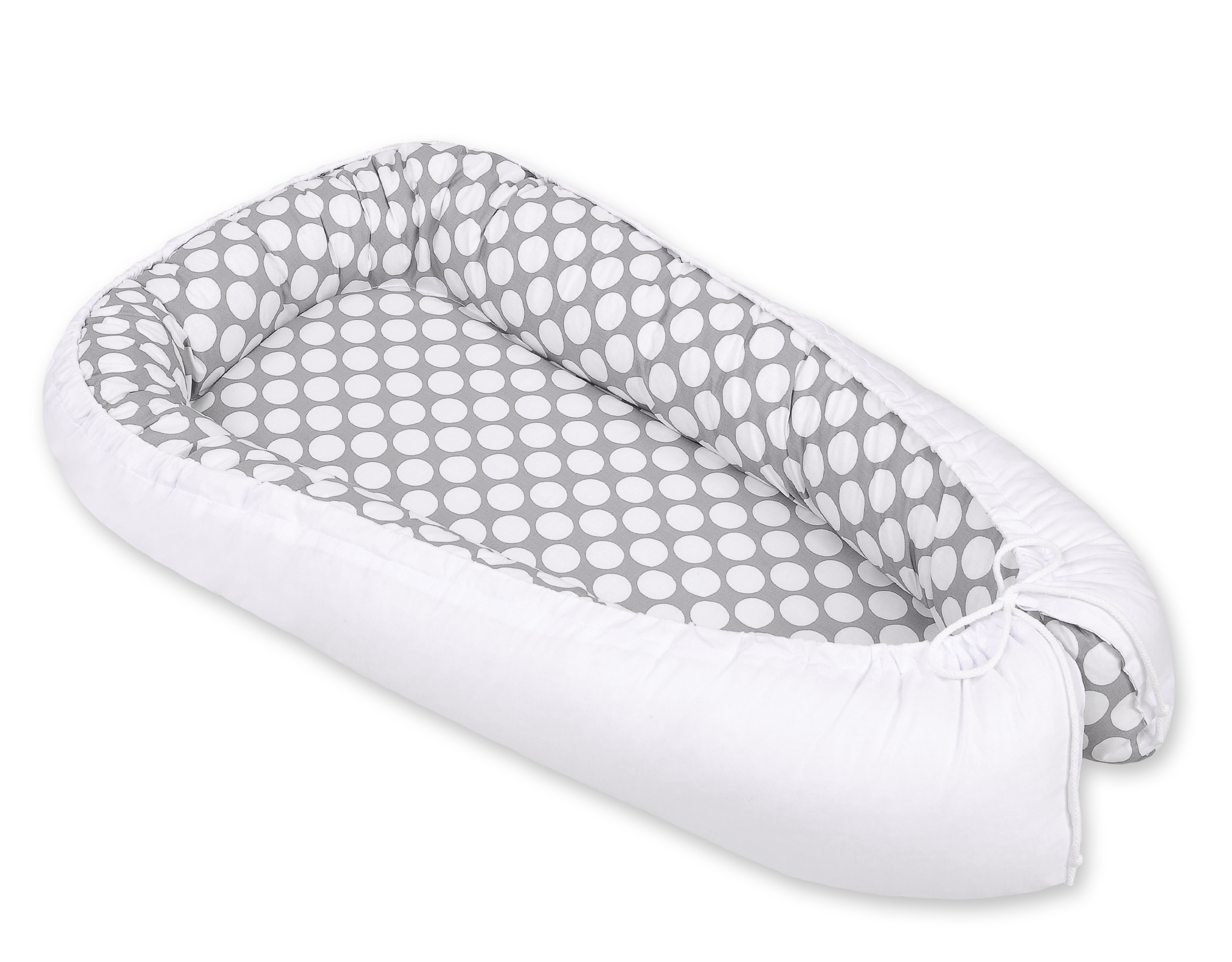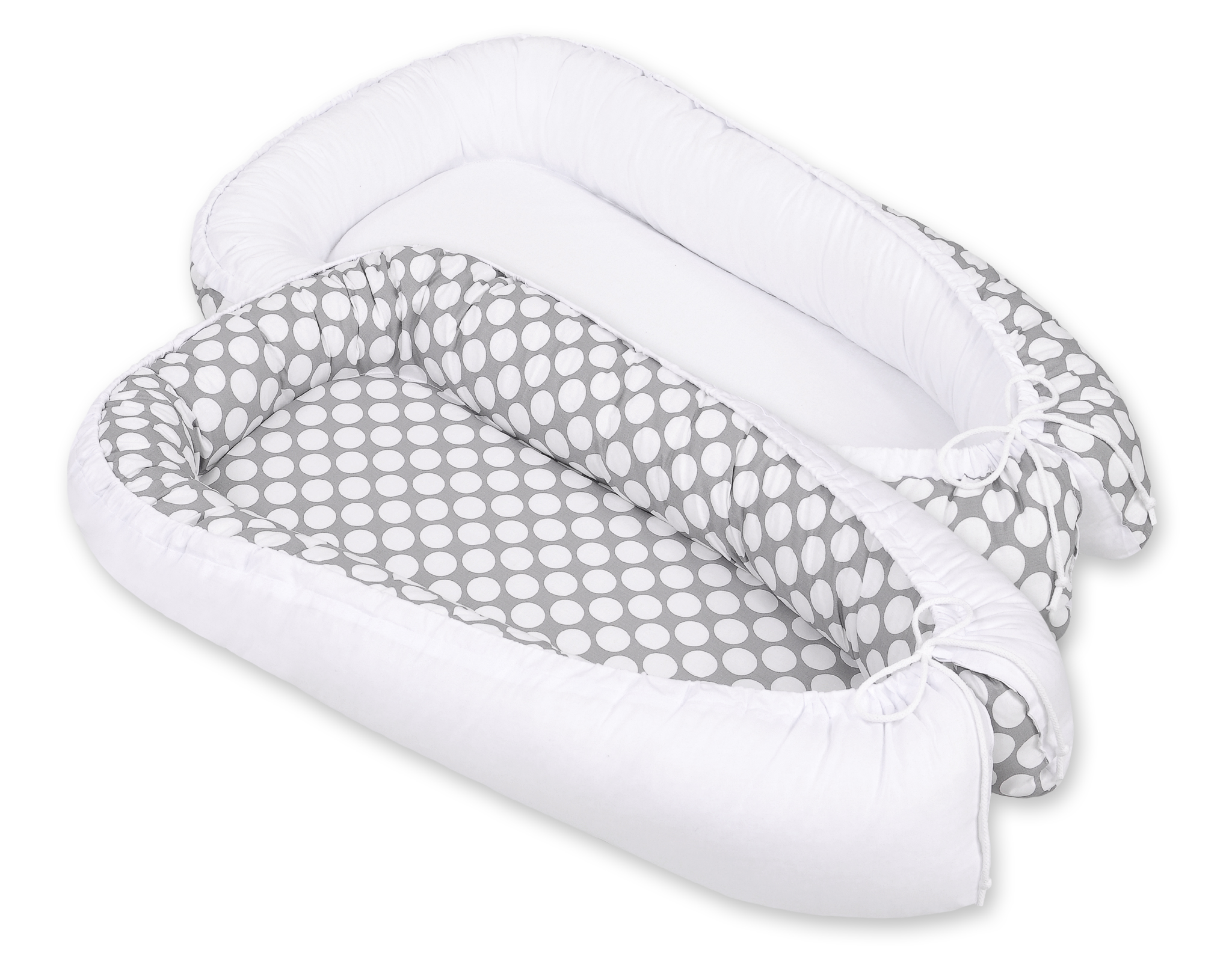 Stubenwagen » Bettwäsche für Babys » Bettwäsche für Babybett FUN & JOY » Babynestchen » Babynestchen - Grau-Punktemuster/weiß