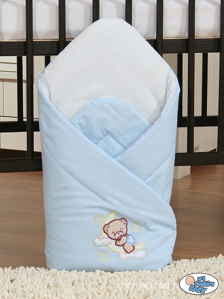 Stubenwagen » Bettwäsche für Babys » Bettwäsche für Babybett GUTE NACHT » Babynestchen / Babyhörnchen mit steife Einlage » Babynestchen - Gute Nacht blau