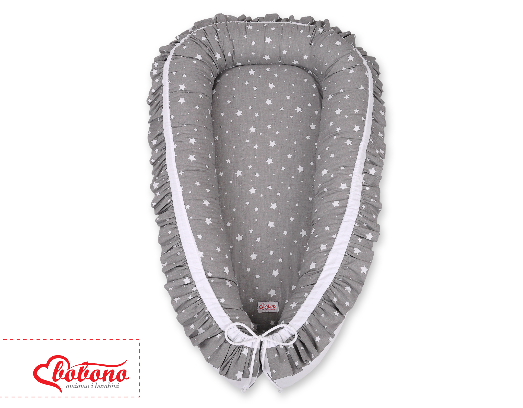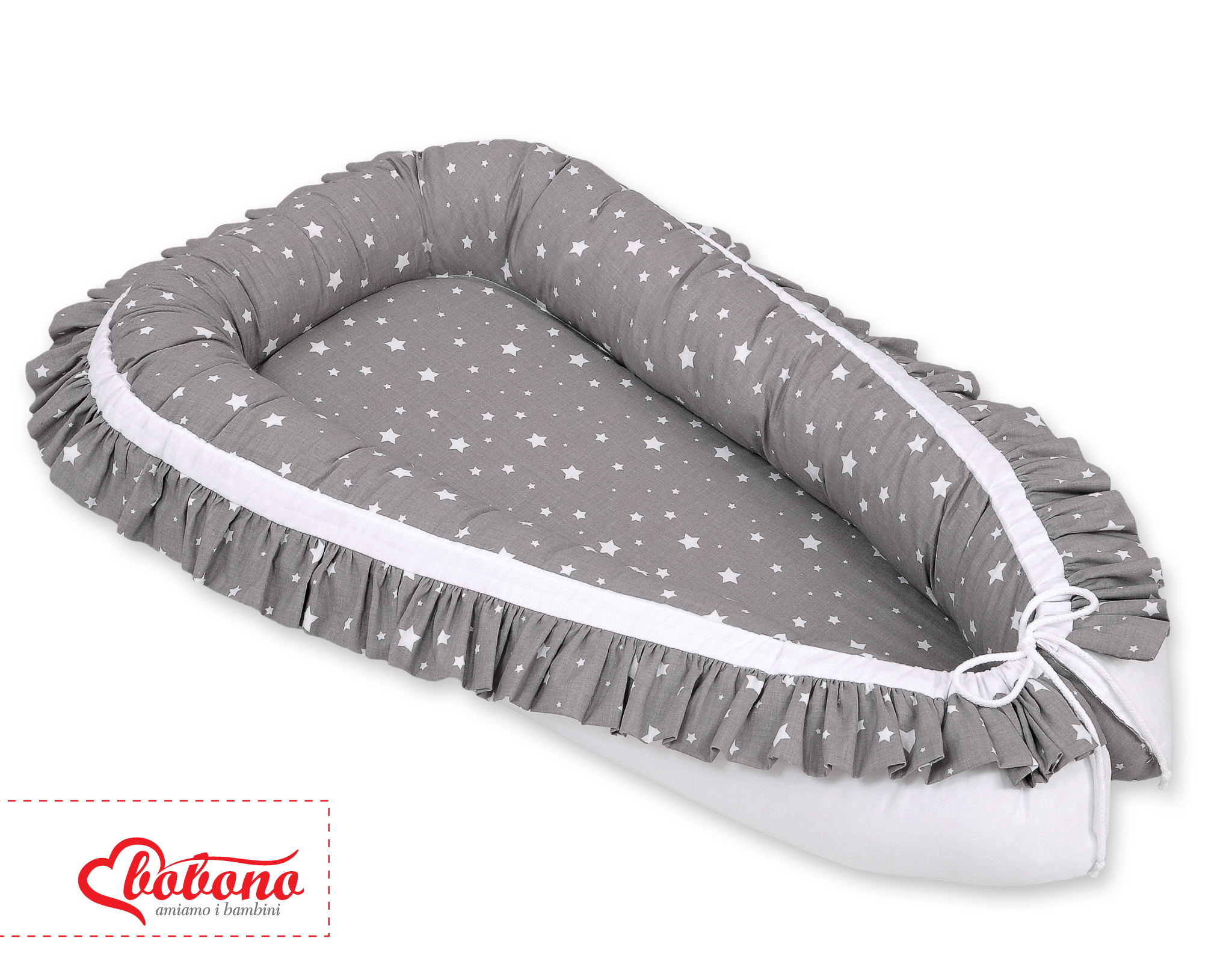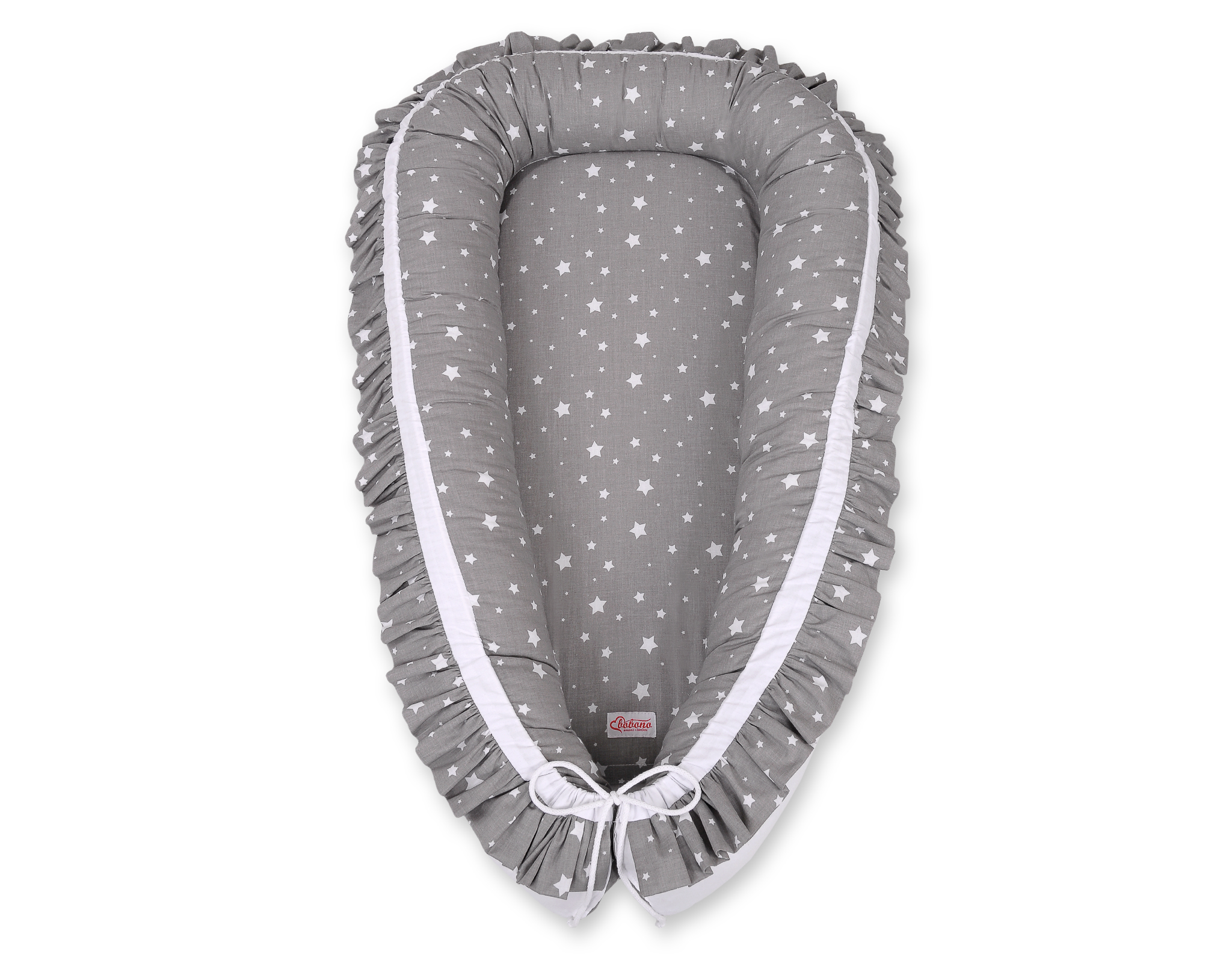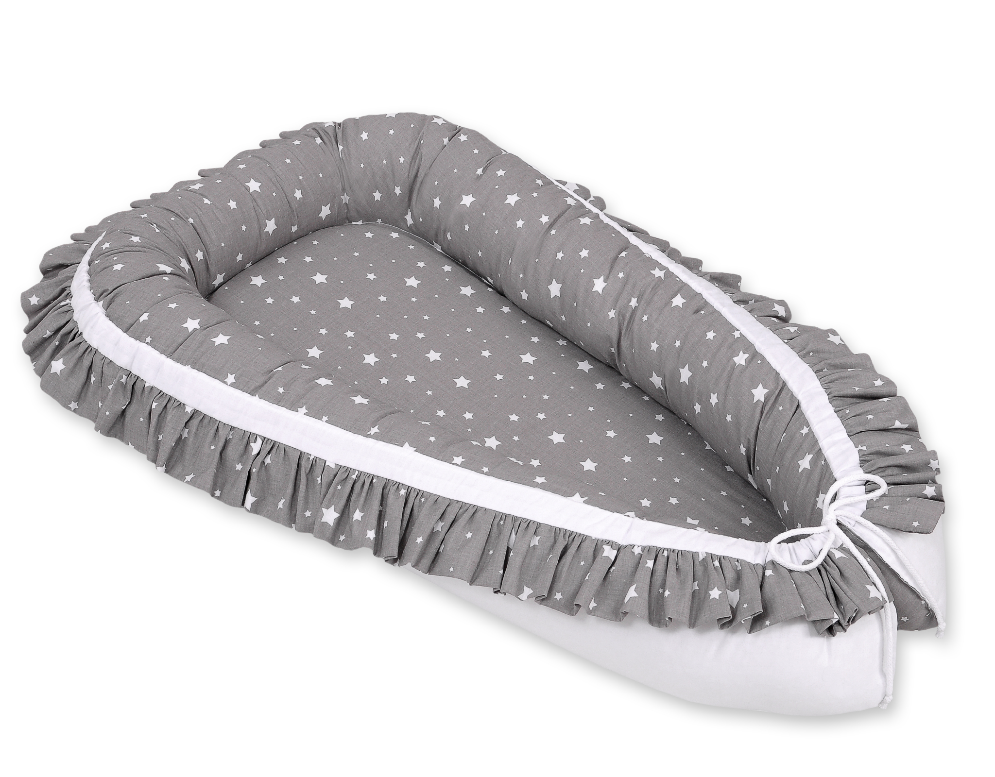 Babynestchen mit Rüsche - mini Sternchen weiß/weiß