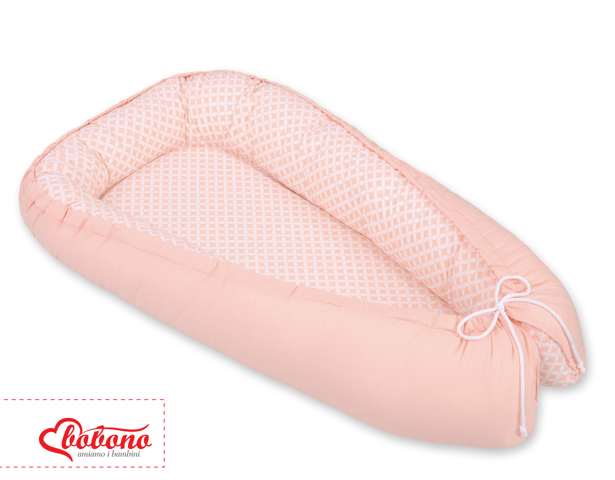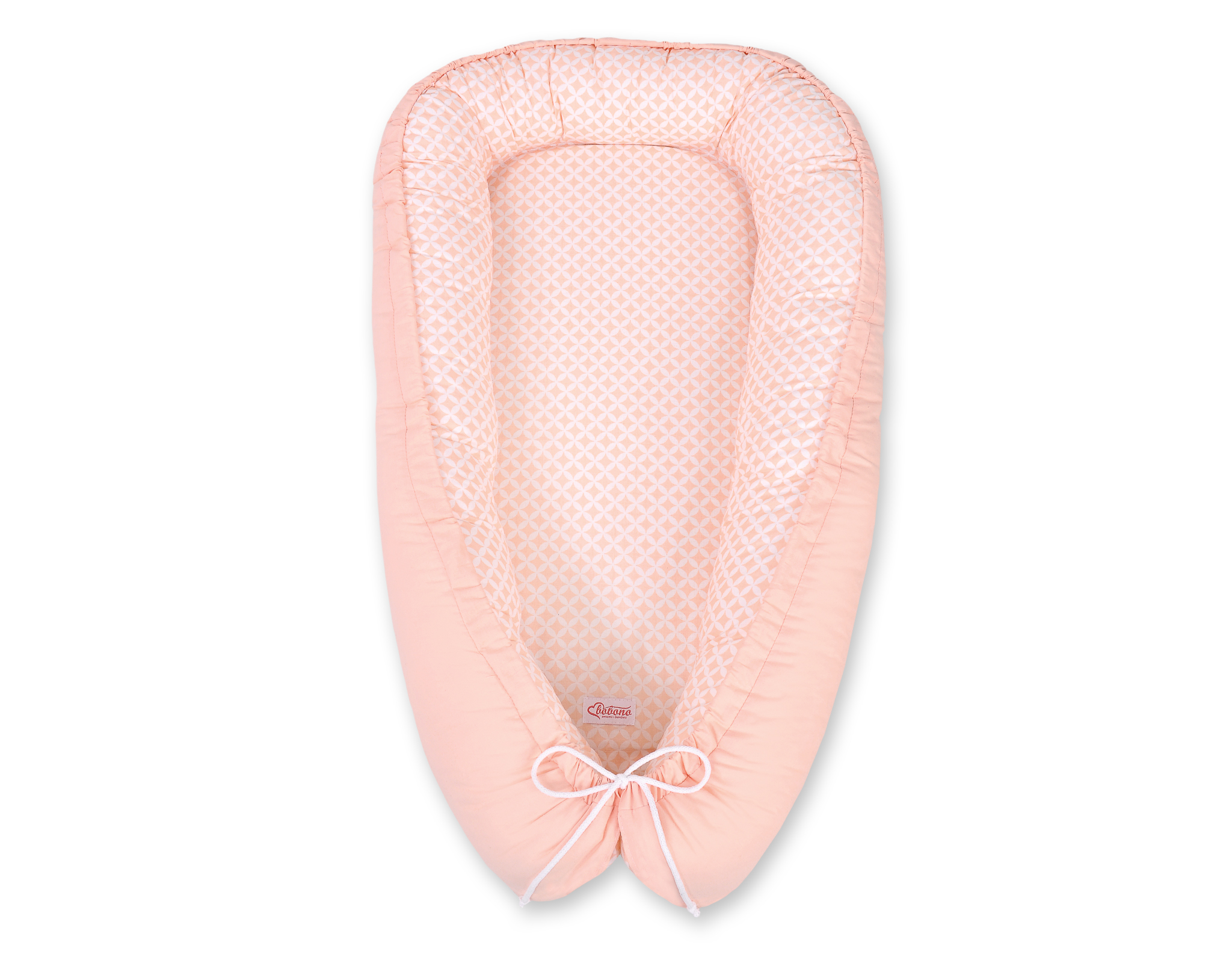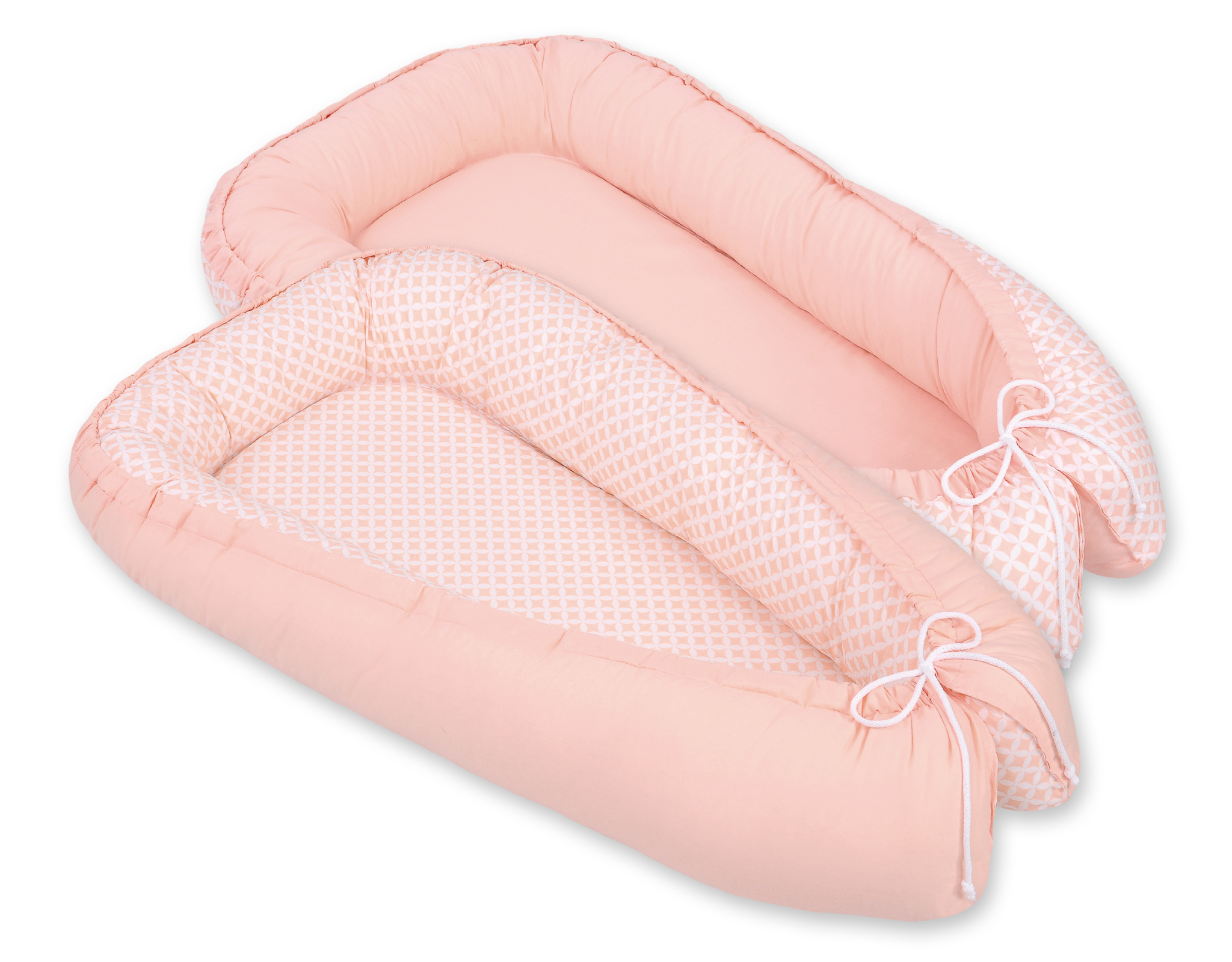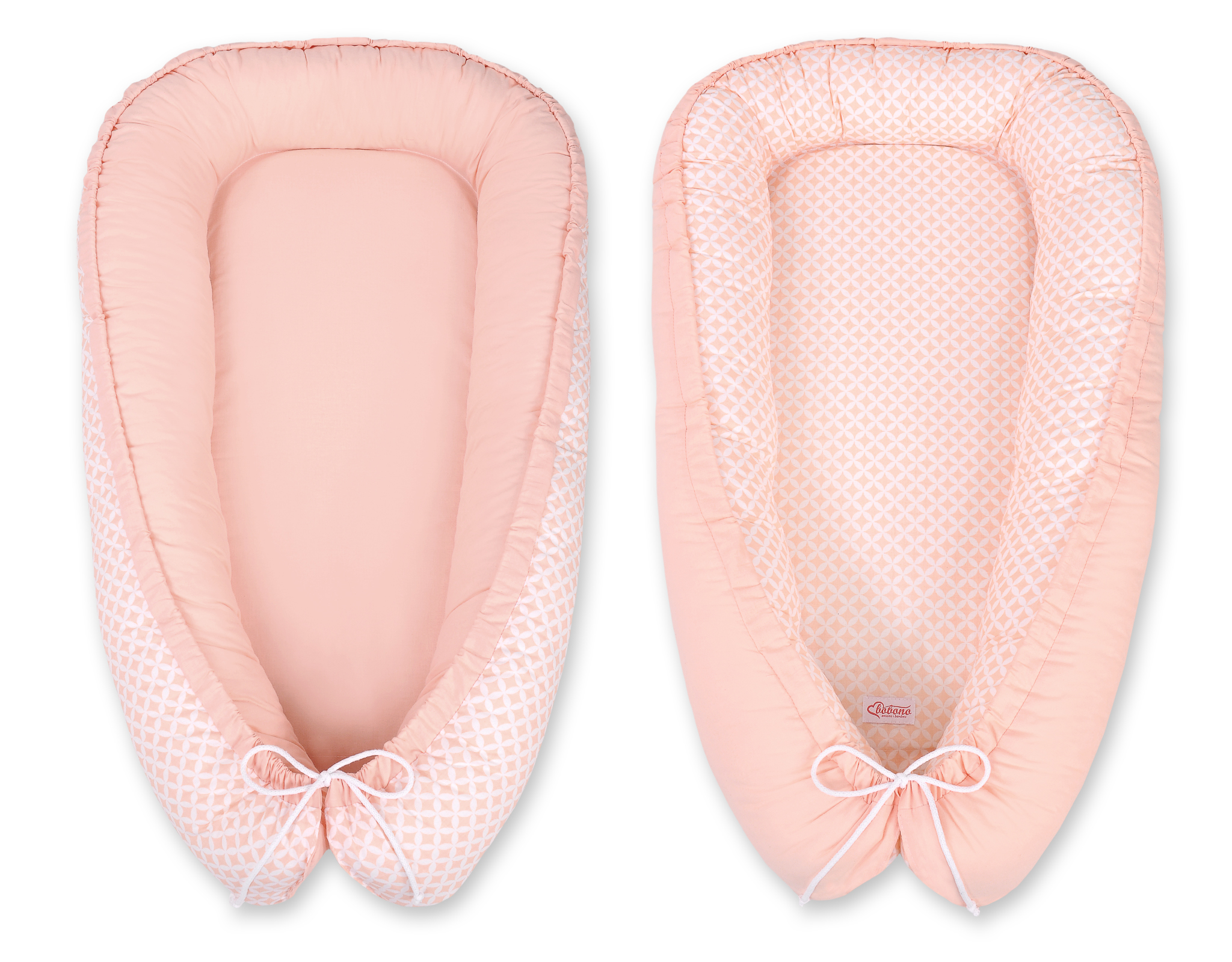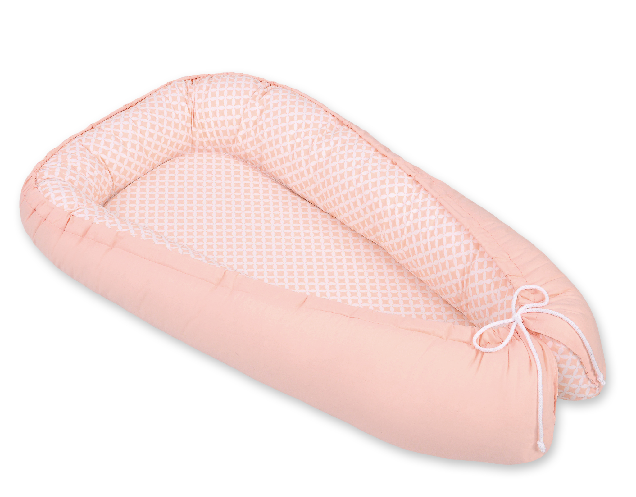 Es ist eine gute Lösung für die ersten Lebensmonate. Die Nestchen werden schon in vielen Europaländer benutzt und geschätzt. Ein solches Netschen ist vor allem ein sehr gutes Schlafplatz für ein Neugeborenes. Es ist kleiner und kuscheliger als ein Bettchen, das Kind füllt sich dadrin geborgen wie im Mutterbauch. Das Neschen hat zum Ziel den Platz zu verringern, so dass das Kind Stufenweise aus der Embrioposition in die gestreckte Position übergehen kann. Wenn das Neugeborene gleich in einem Bettchen schläft, kann es sich wegen zu viel Platz unwohl fühlen. Durch die hohen, weichen Ränder bietet das Nestchen genügend Schutz, dämpft die Geräusche und bietet somit dem Baby einen gesunden Schlaf.