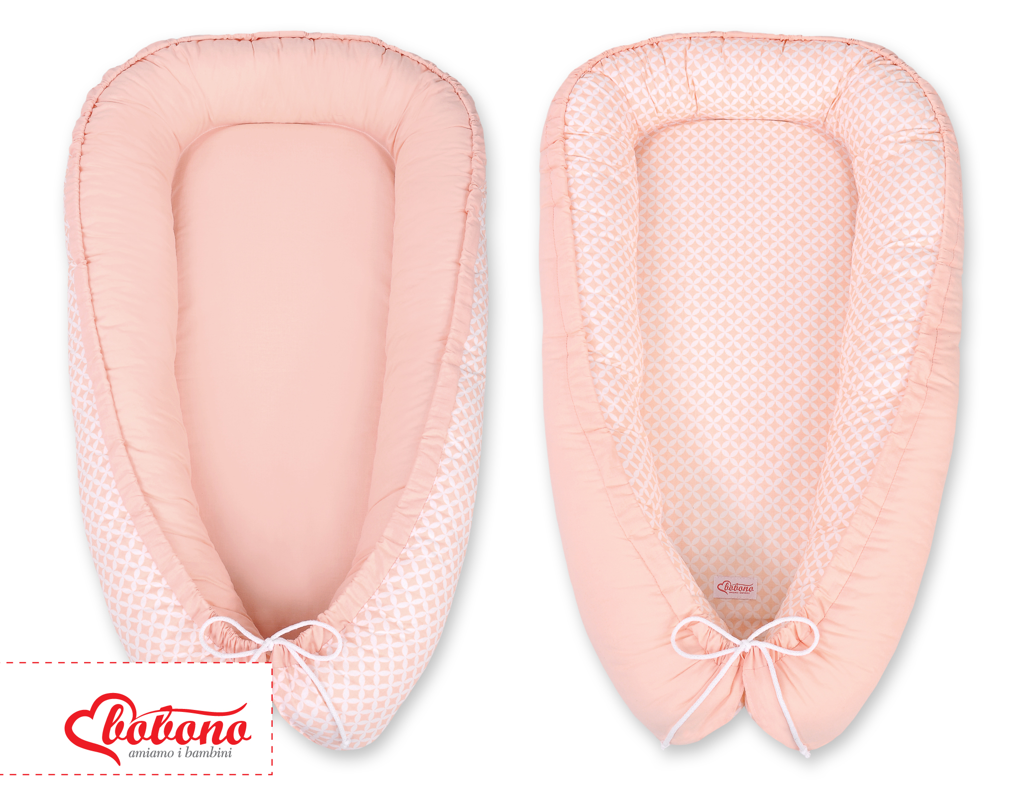 Es kann in das Kinderbett, Stubenwagen oder Wiege reingelegt werden. Somit hat das Baby seinen eigenen Raum, wo es sich sicher und geborgen füllt. Die hohen Ränder erleichtern den Eltern das Baby in der seitlichen Possition zu legen.