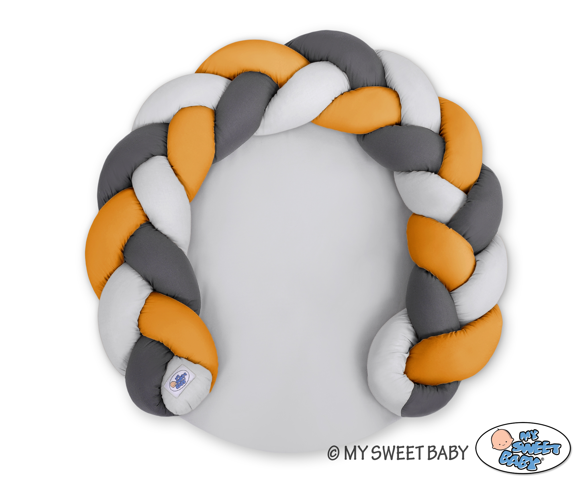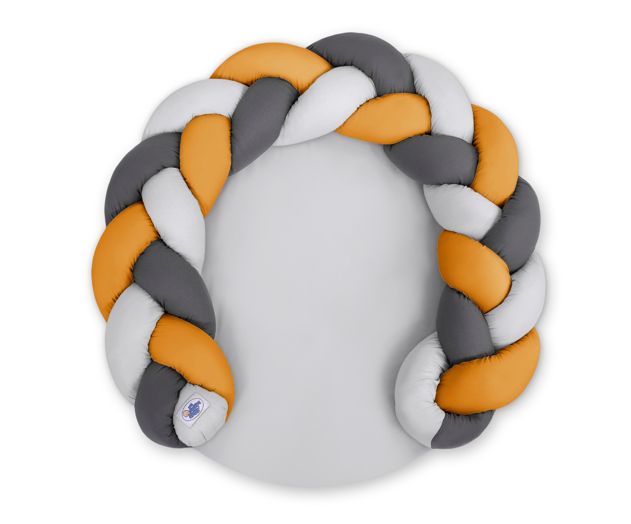 Ohne die Unterlage kann der Zopf als Nestchen im Kinderbett genutzt werden. Die Länge des Zopfes beträgt 180 cm. Das Nestchen kann im Kinderbett als Schutz dienen und später in das größere Bettchen umziehen. Es kann auch wunderbar als Deko im Kinderzimmer dienen.