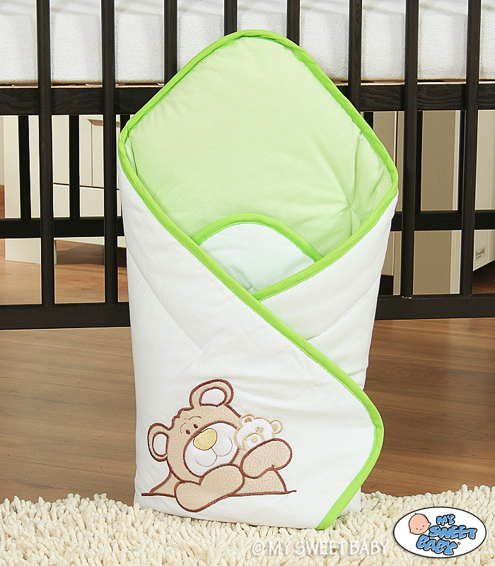 Stubenwagen » Bettwäsche für Babys » Bettwäsche für Babybett TEDDY BÄR BARNABA » Babynestchen » Babyhörnchen » Babynestchen - Teddy Bär Barnaba grün