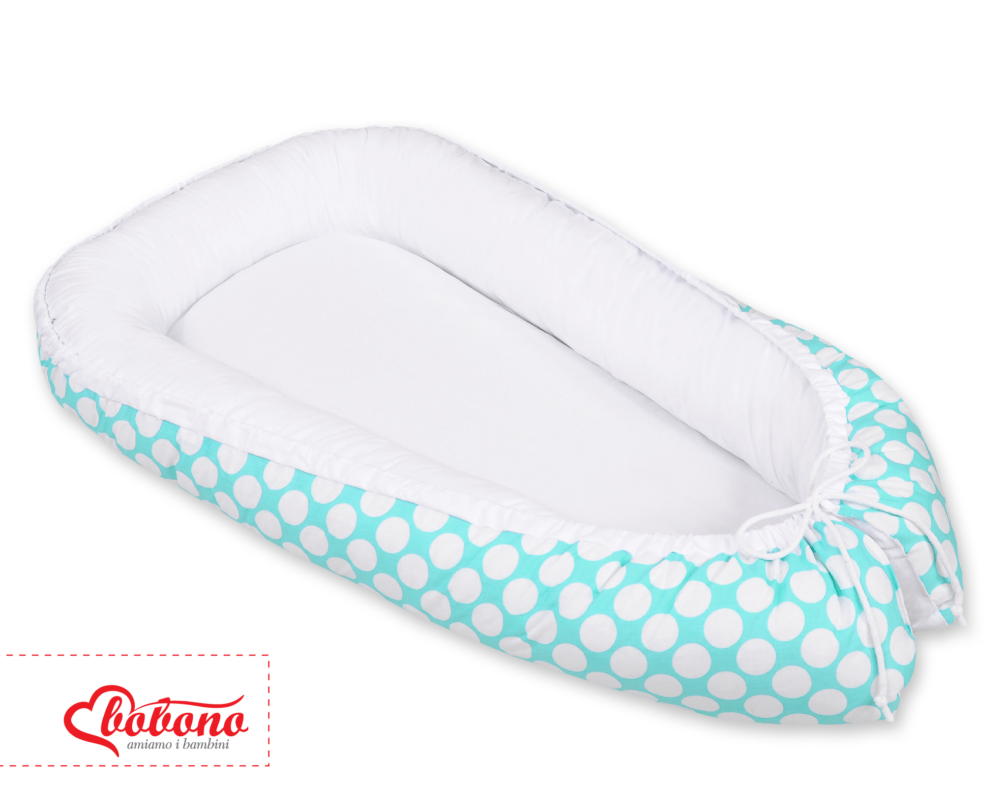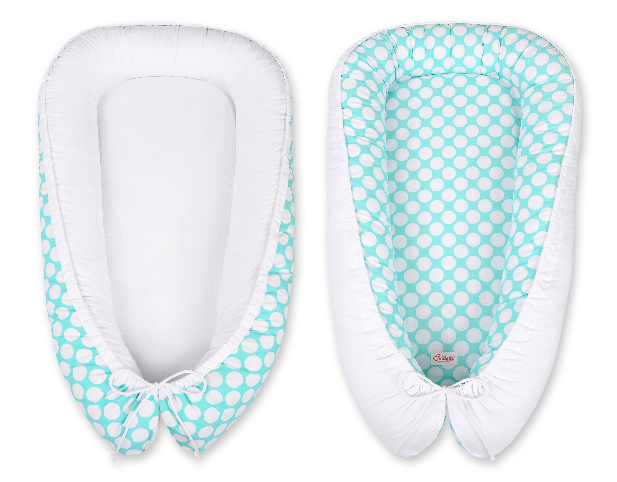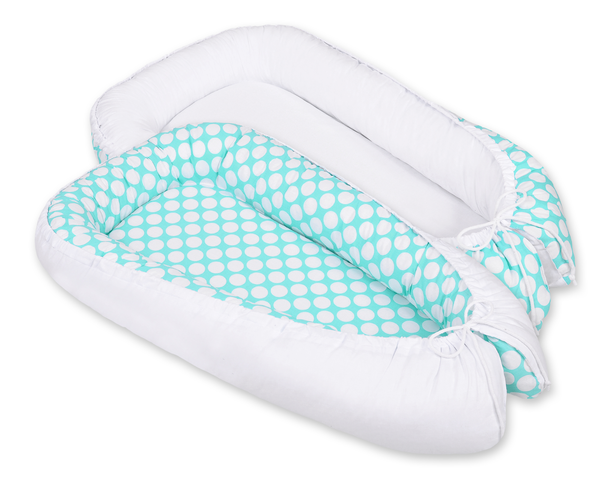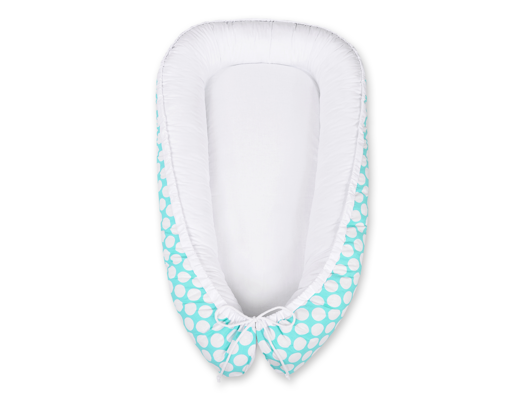 Stubenwagen » Bettwäsche für Babys » Bettwäsche für Babybett FUN & JOY » Babynestchen » Babynestchen - Türkis-Punktmust/weiß