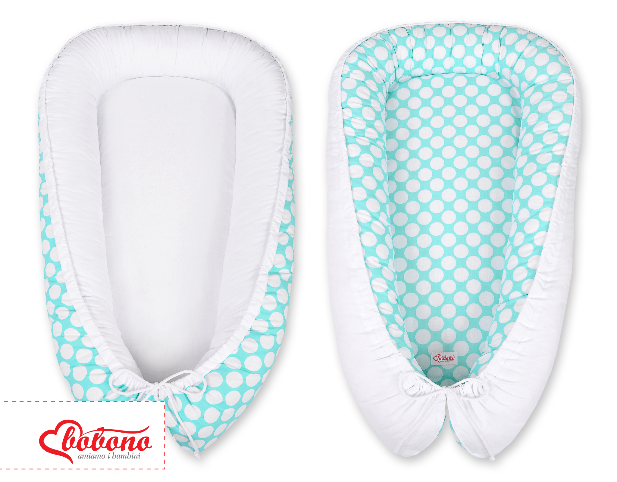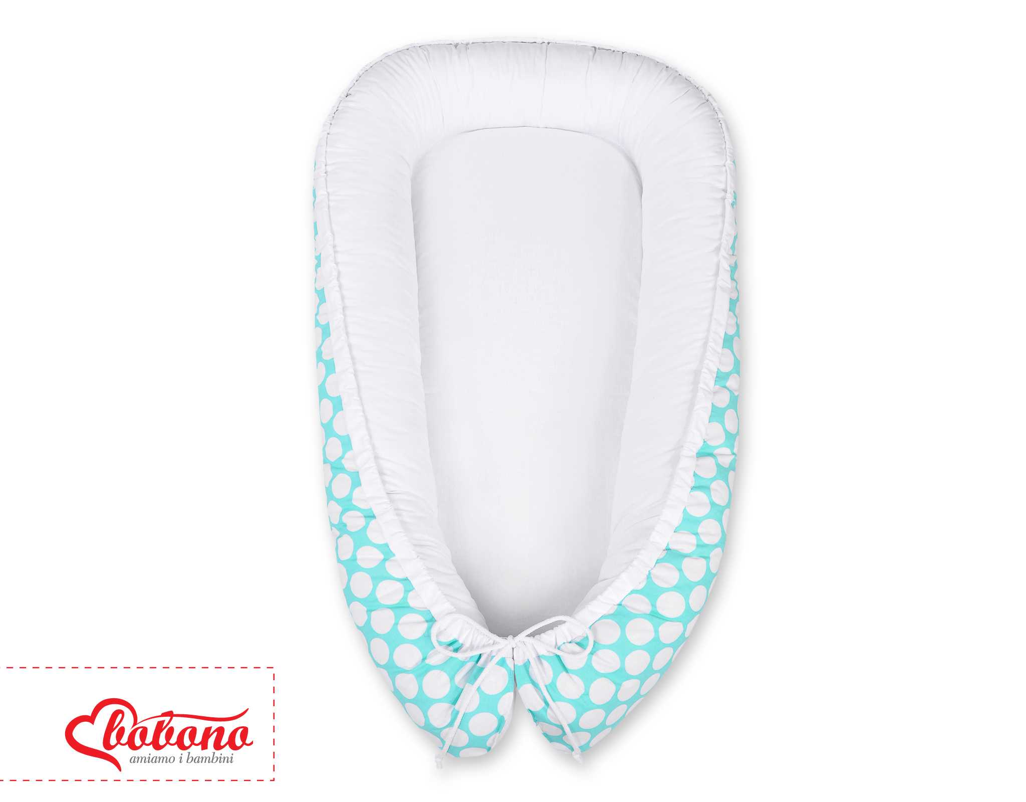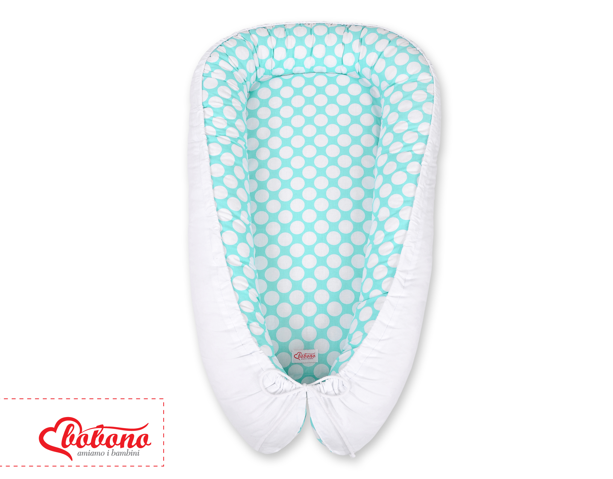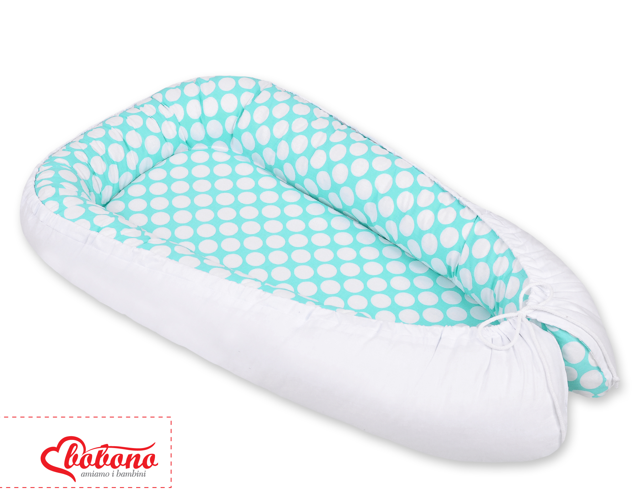 Stubenwagen » Bettwäsche für Babys » Bettwäsche für Babybett FUN & JOY » Babynestchen » Babynestchen - Türkis-Punktmust/weiß