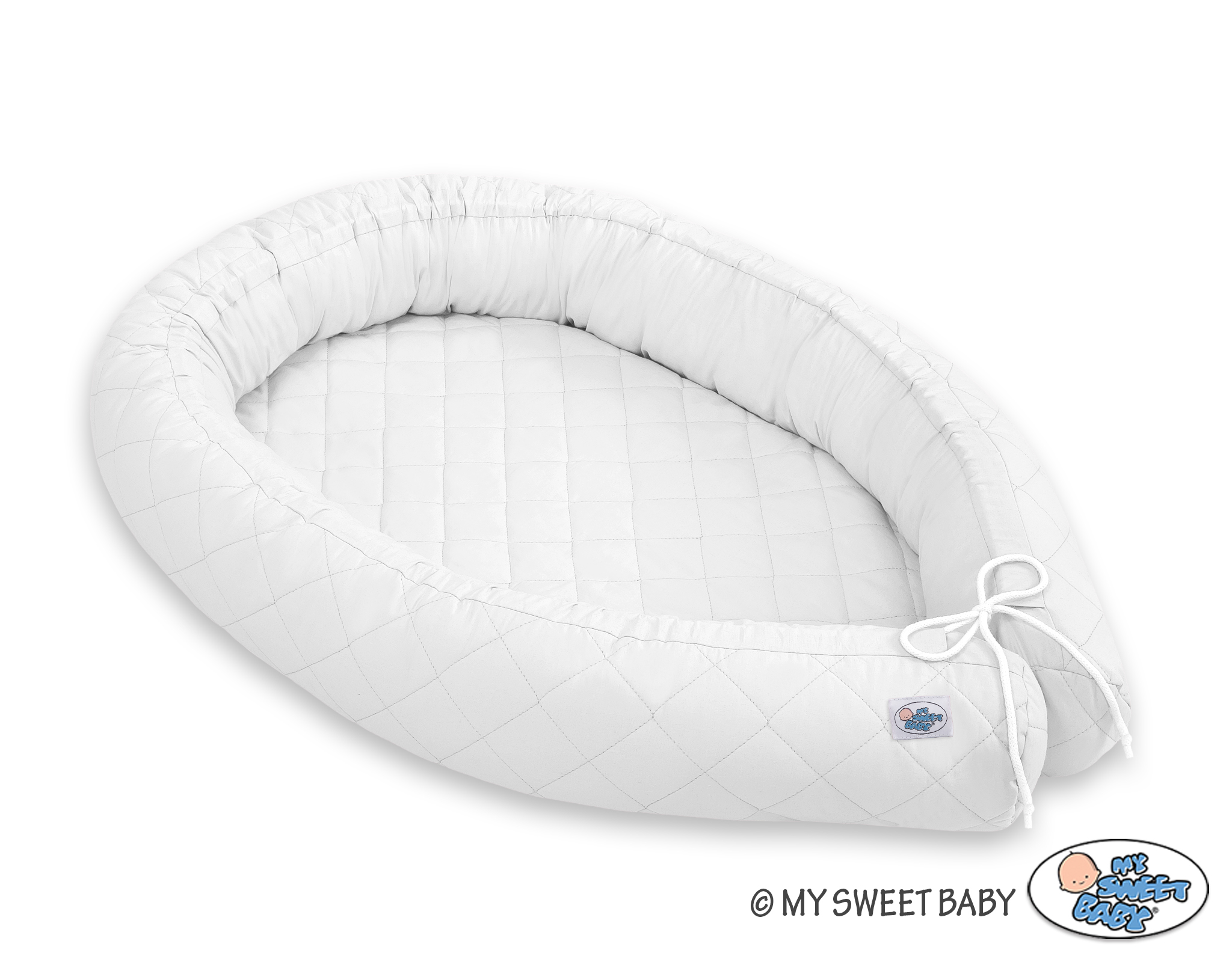 Babynestchen und Bettschlange gesteppt - weiss Nestchen zum Schlafen Cocoon mit Kopfschutz-Funktion