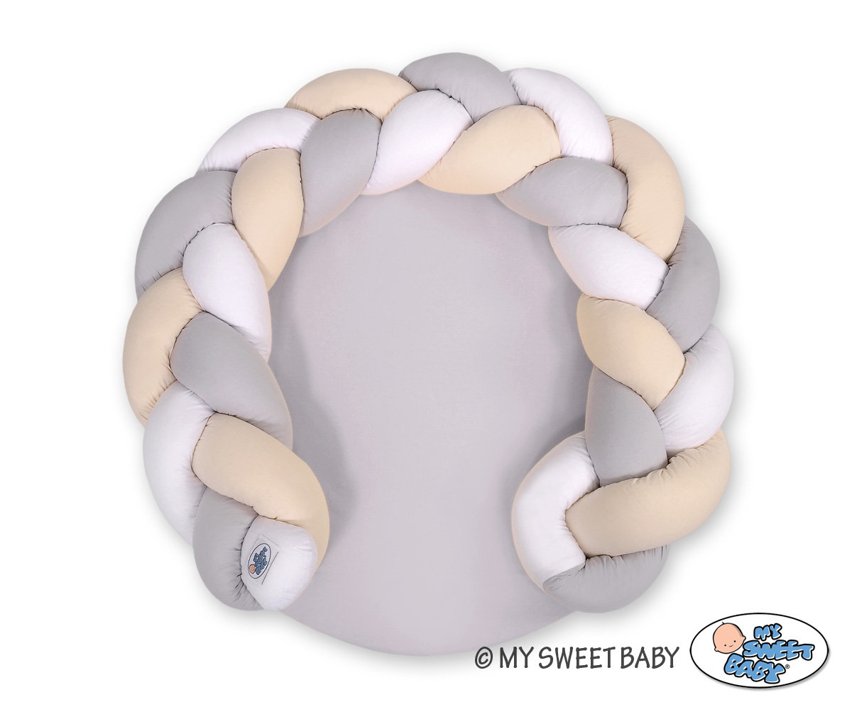 Stubenwagen » Geflochtene Kollektion » Babynestchen Spielmatte 2 in 1 » Babynestchen Zopfschlange / Spielmatte 2 in1 - weiß-beige-grau