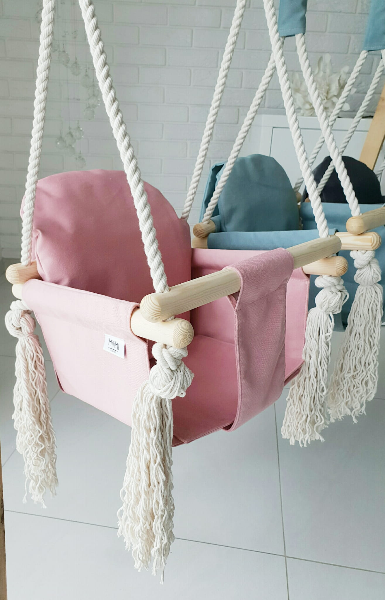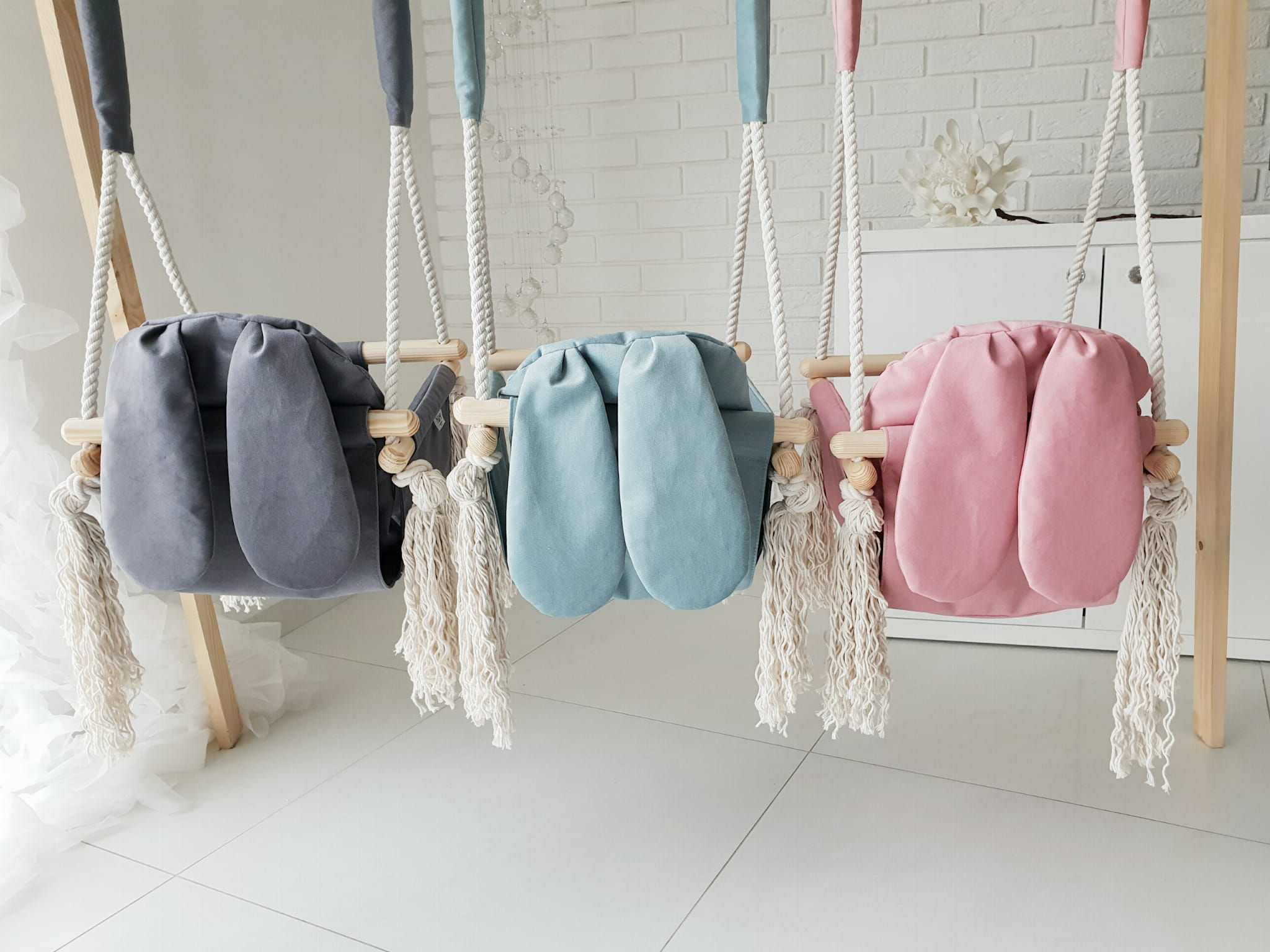 Sorgfältig handgefertigte Schaukeln für Babys, die Zuhause im Kinderzimmer, auf dem Balkon und im Garten ihren Platz finden können.