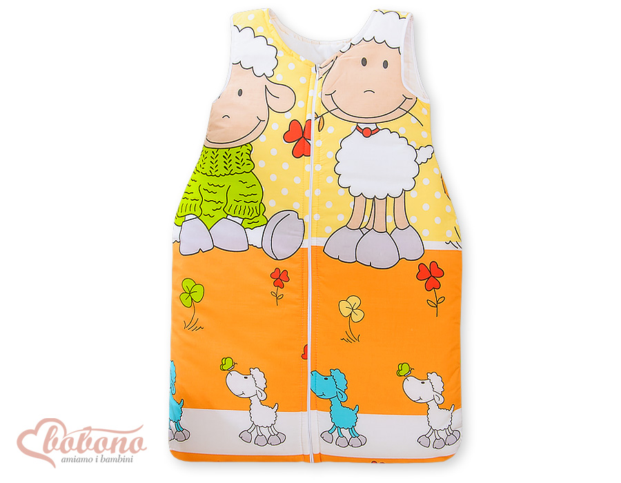 Stubenwagen » Bettwäsche für Babys » Bettwäsche für Babybett BASIC » Babyschlafsack » Babyschlafsack - Basic Schafe orange-gelb