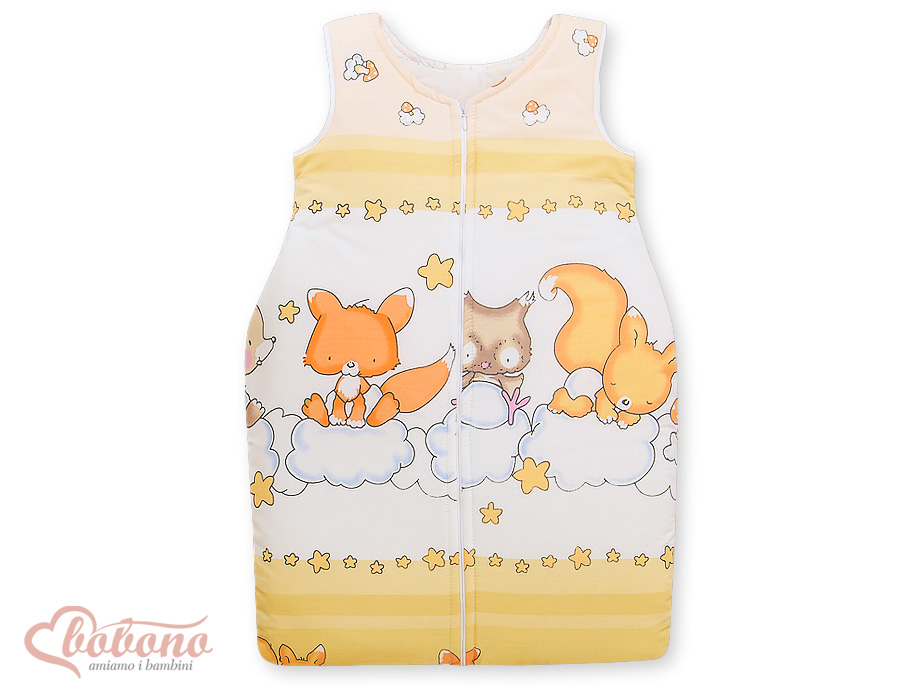 Der Babyschlafsack ist aus 3 Materialschichten hergestellt - Aussen und Innenschicht des Babyschlafsacks sind aus zertiffizierter Baumwolle,  dazwischen befindet sich eine warme, weiche Vliesschicht die auch zertifiziert und antialergisch ist. Der Reißverschluss ist auf der ganzen Länge des Babyschlafsacks eingenäht. Aus 100% Baumwolle.
