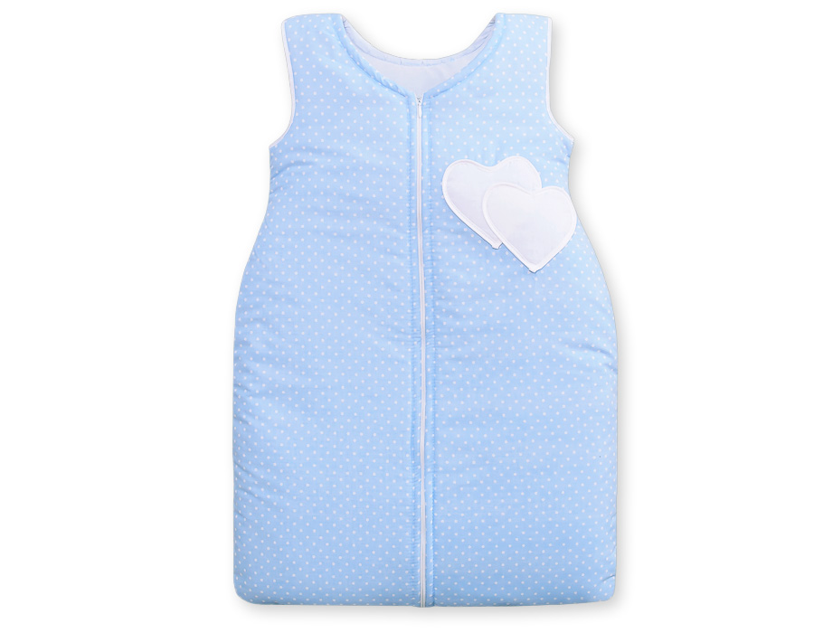 Babyschlafsack - Hängende Herzen Minze Blau-Punktemuster Ein weicher, hochwertiger, grosser und bequemer Babyschlafsack aus zertifizierten Materialien gefertigt. Sorgt für erholsame Nächte.