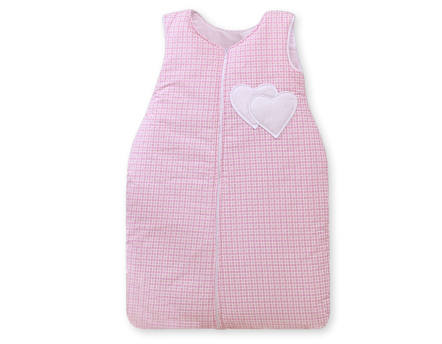 Babyschlafsack - Hängende Herzen rosa kariertBabyschlafsack - Hängende Herzen rosa kariert