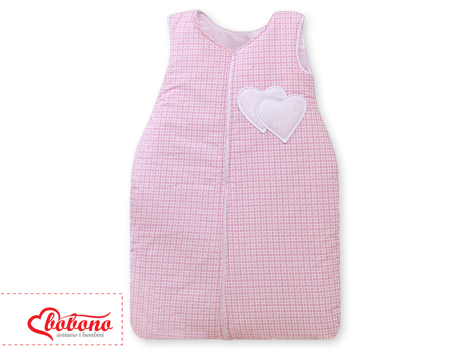 Stubenwagen » Bettwäsche für Babys » Bettwäsche für Babybett HERZEN » Babyschlafsack » Babyschlafsack - Hängende Herzen rosa kariert