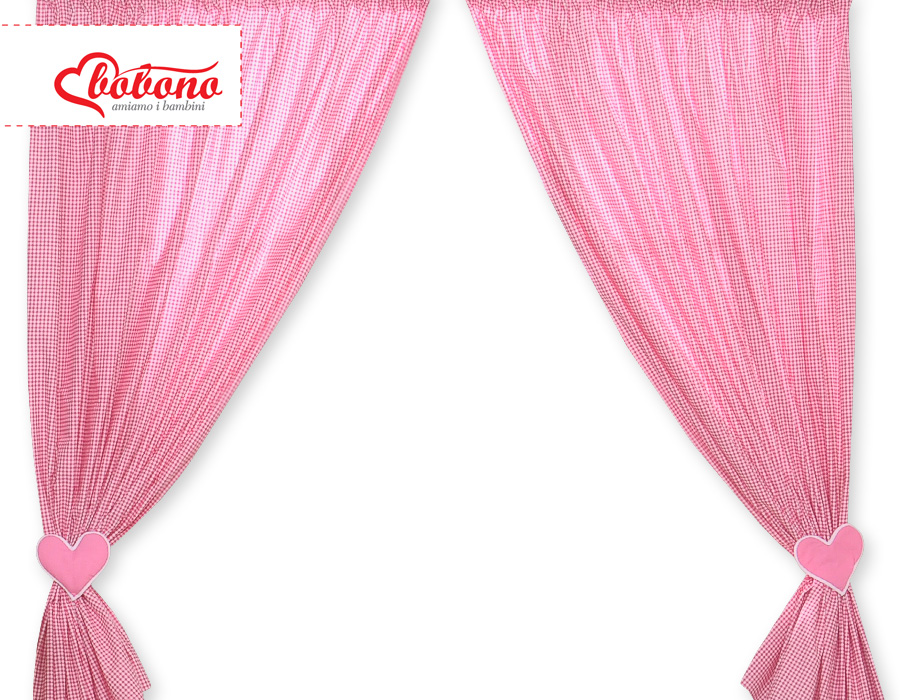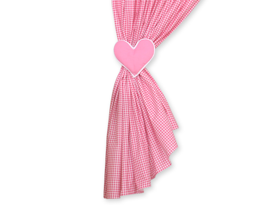 Babyzimmer Vorhänge - Hängende Herzen dunkel rosa kariert