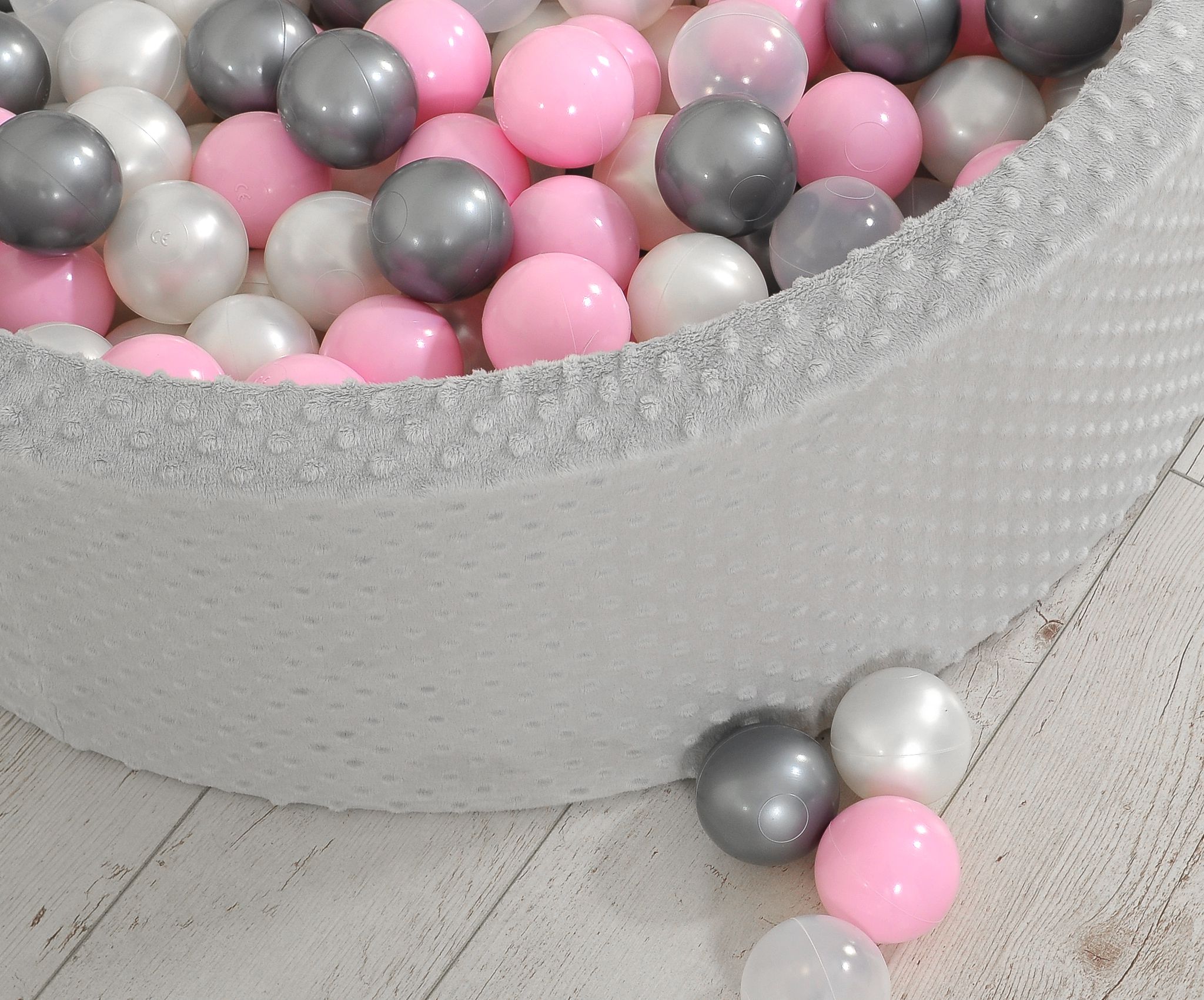 Bällebad 90 x 30 cm Minkystoff mit Bällen 300st - grau