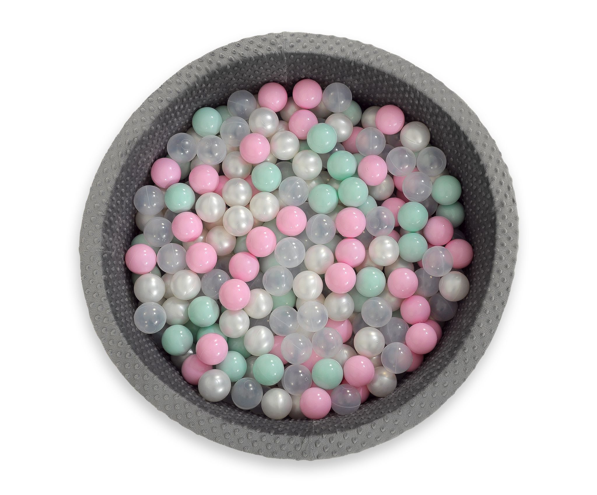 - Bällebad aus Schaumstoff - 400 Plastikbälle. Die Farben stehen zur Wahl – je 50 Stück pro Farbe. - Aufbewahrungstasche für die Bälle