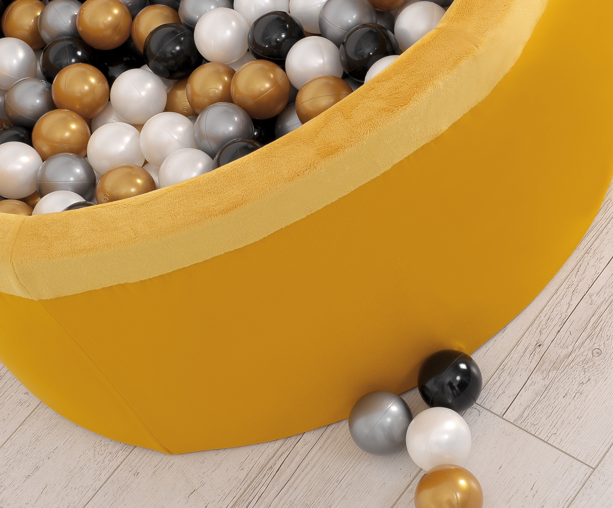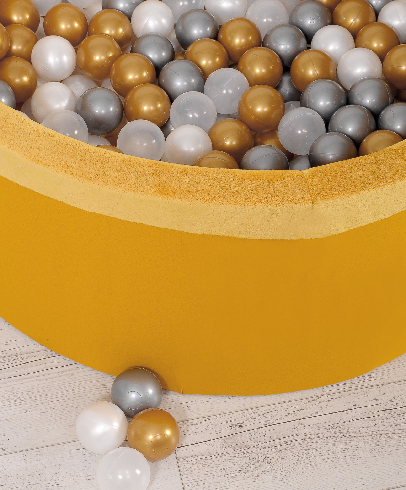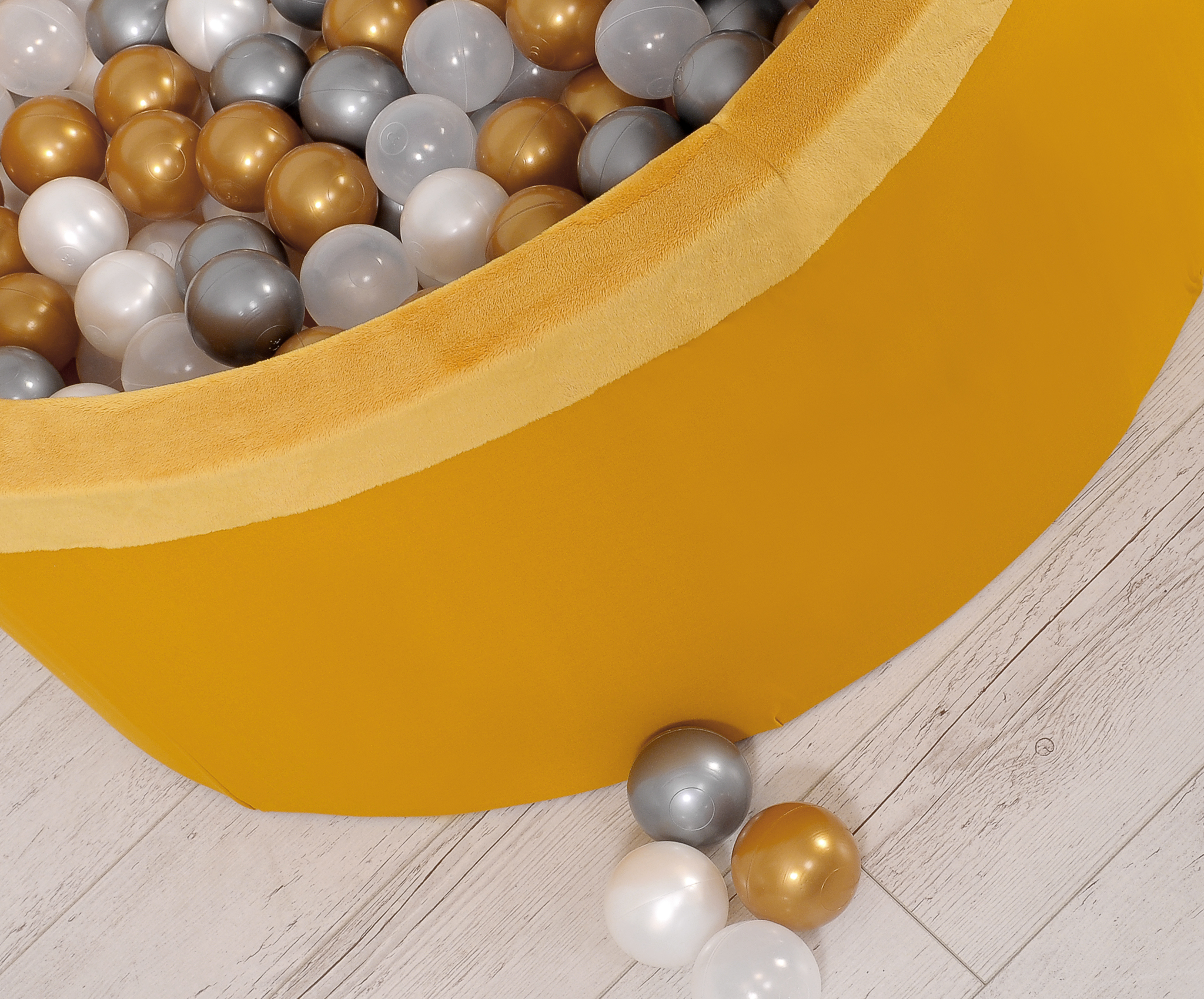 Bällebad aus Minkystoff Bällepool mit bunten Bällen 200st - honey yellow Das bunte Bällebad eignet sich hervorragend um darin Draußen und in Haus zu spielen. Die bunten Bälle sind entwicklungsfördernd für das Kind. Der Pool ist aus weichem Schaumstoff gefertigt, bietet dadurch viel Sicherheit beim spielen.
