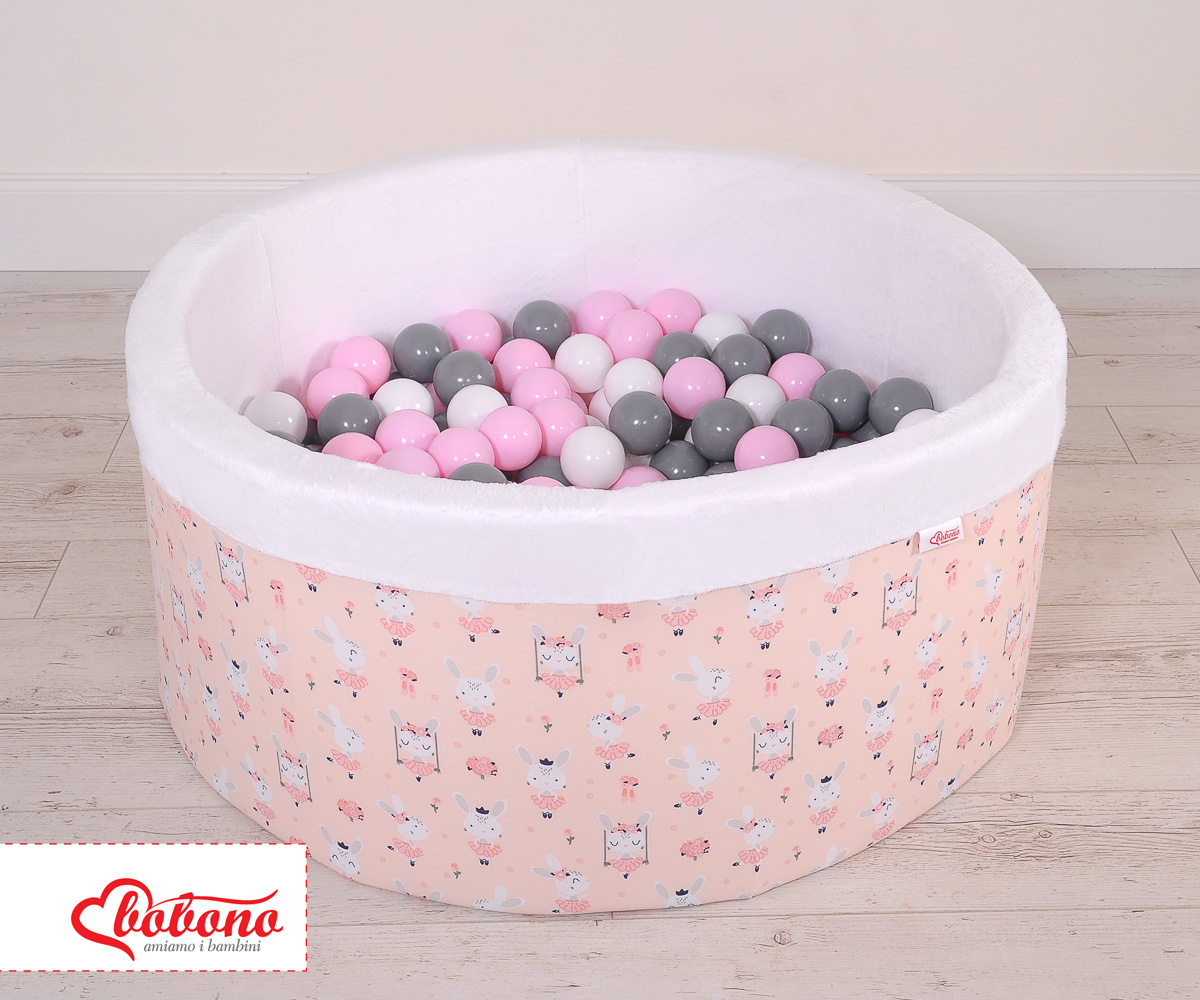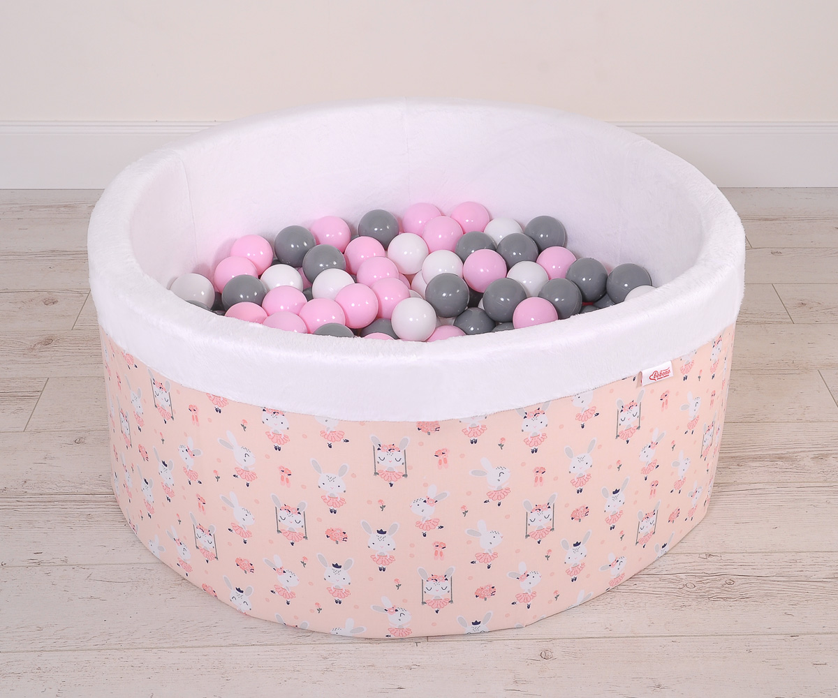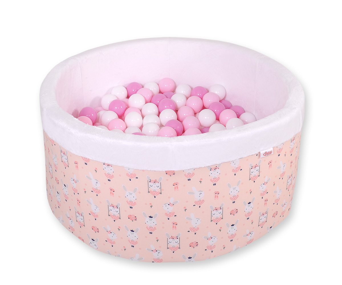 Bällebad aus Minkystoff mit Bällen 200st - Ballerinen rosa Das bunte Bällebad eignet sich hervorragend um darin Draußen und in Haus zu spielen. Die bunten Bälle sind entwicklungsfördernd für das Kind. Der Pool ist aus weichem Schaumstoff gefertigt, bietet dadurch viel Sicherheit beim spielen.