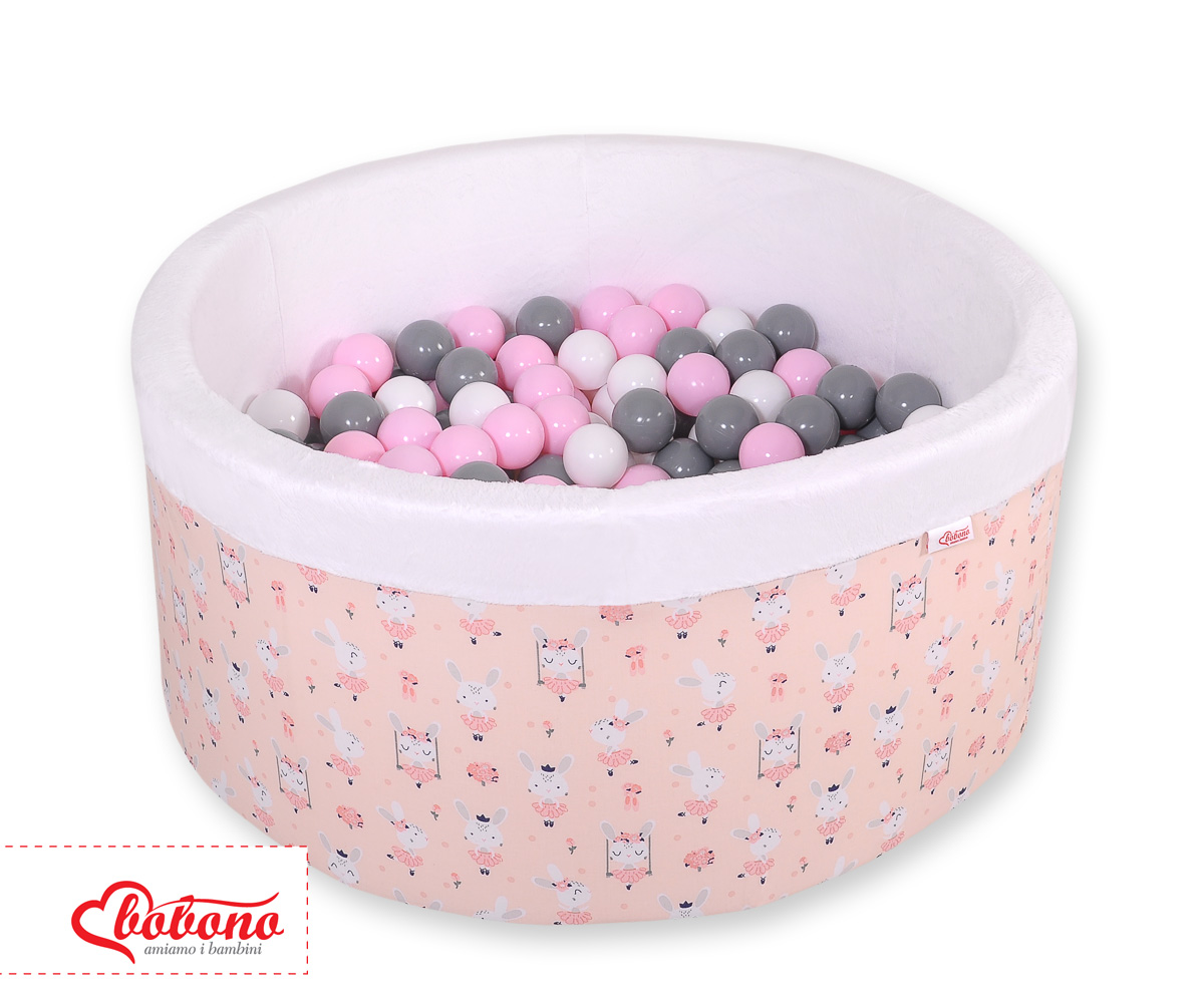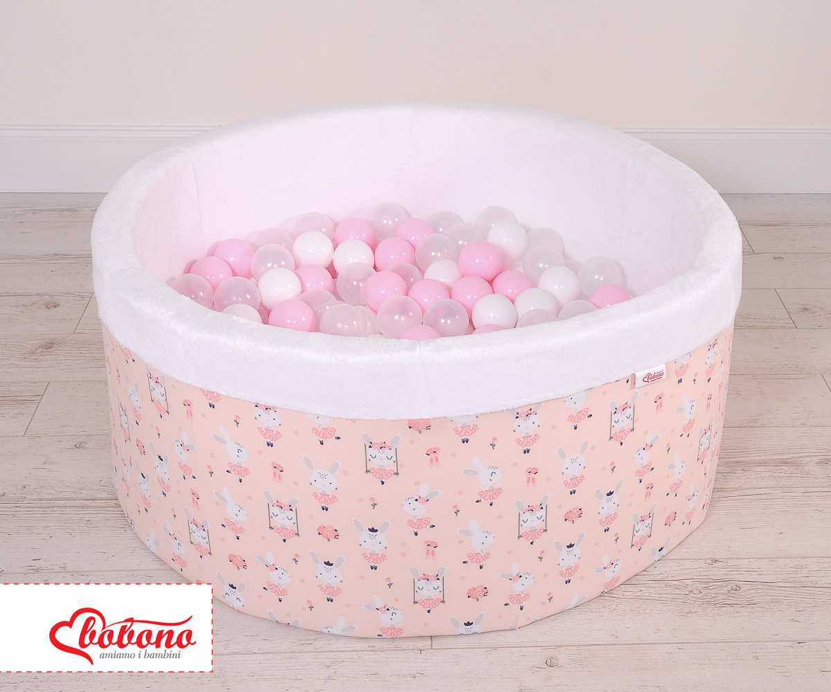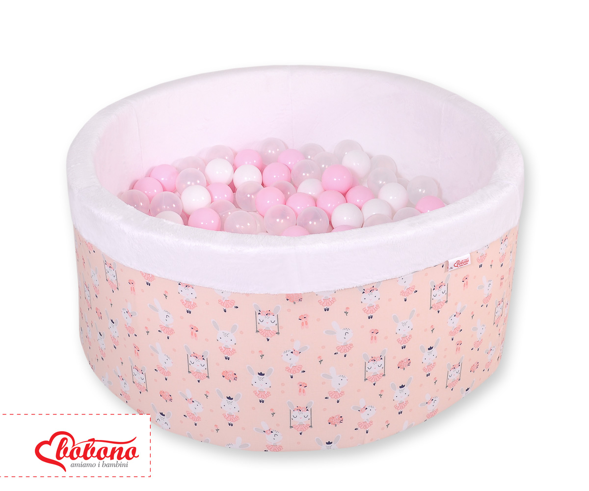 Bällebad aus Minkystoff mit Bällen 200st - Ballerinen rosa Das bunte Bällebad eignet sich hervorragend um darin Draußen und in Haus zu spielen. Die bunten Bälle sind entwicklungsfördernd für das Kind. Der Pool ist aus weichem Schaumstoff gefertigt, bietet dadurch viel Sicherheit beim spielen.