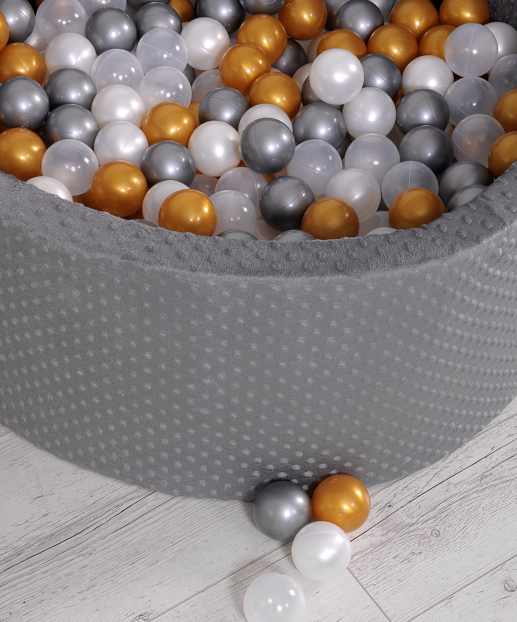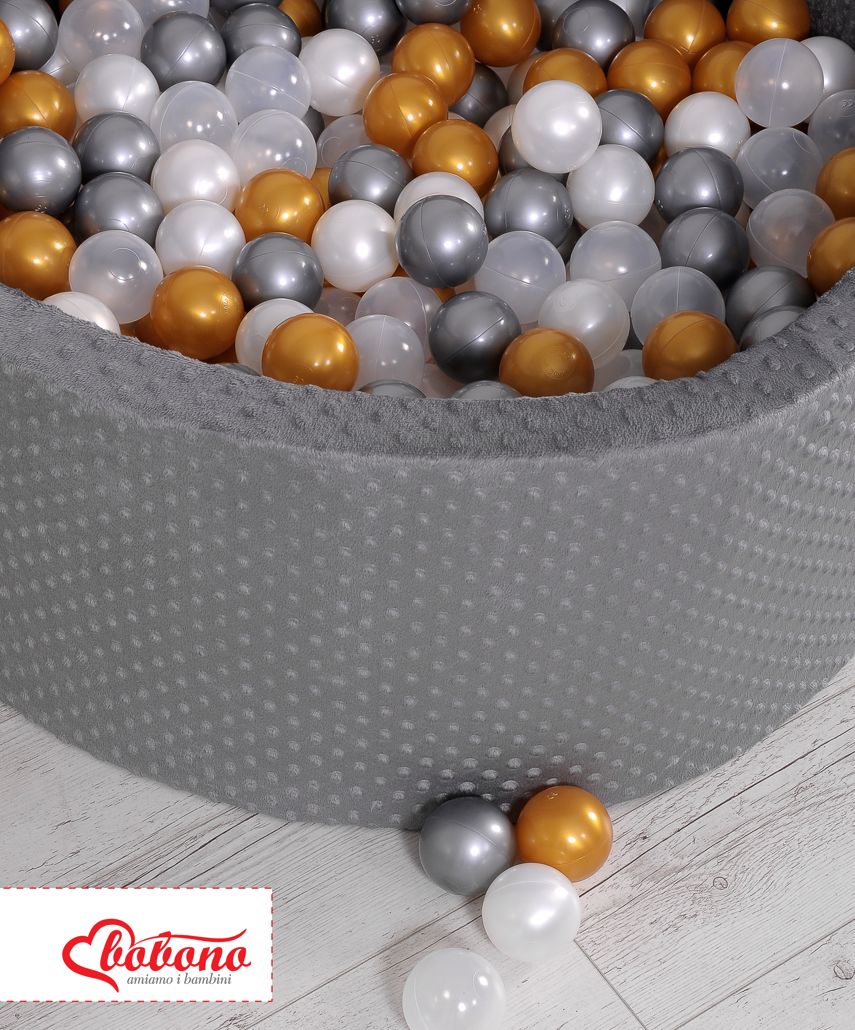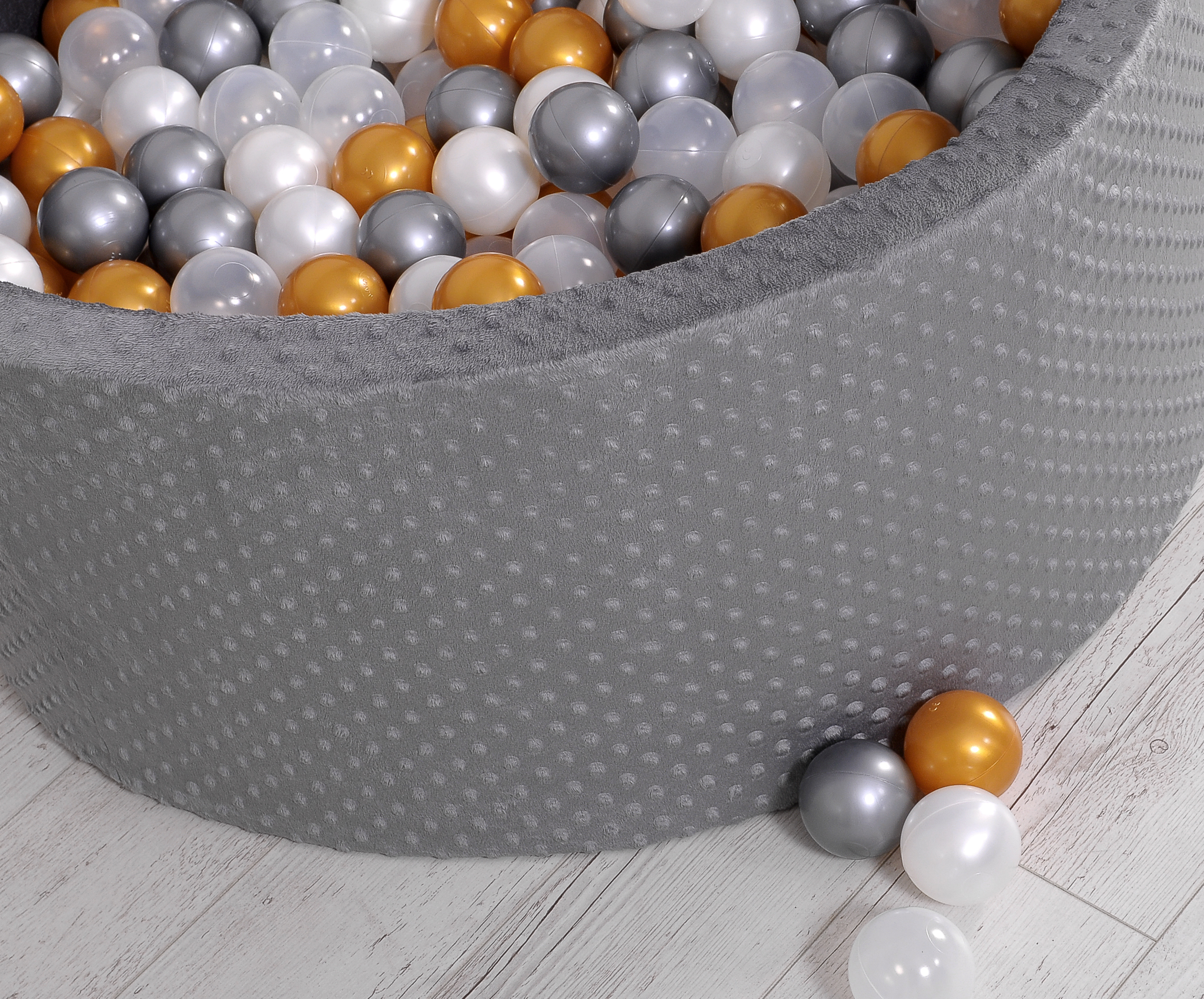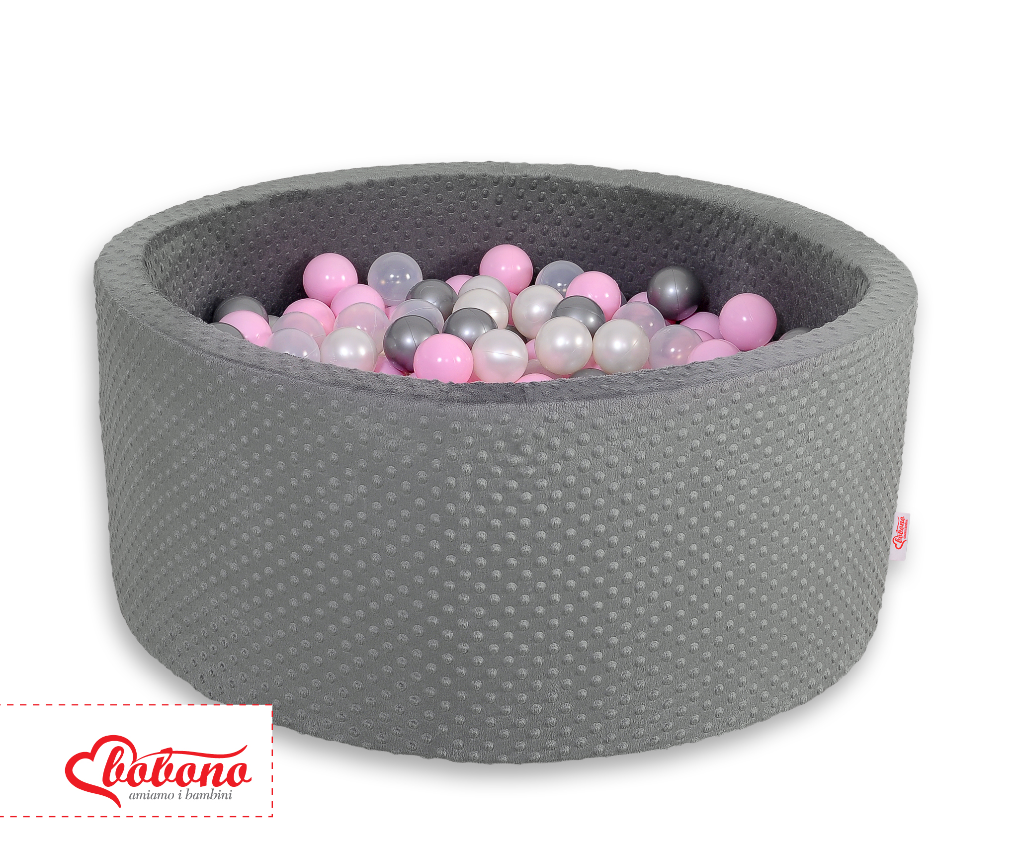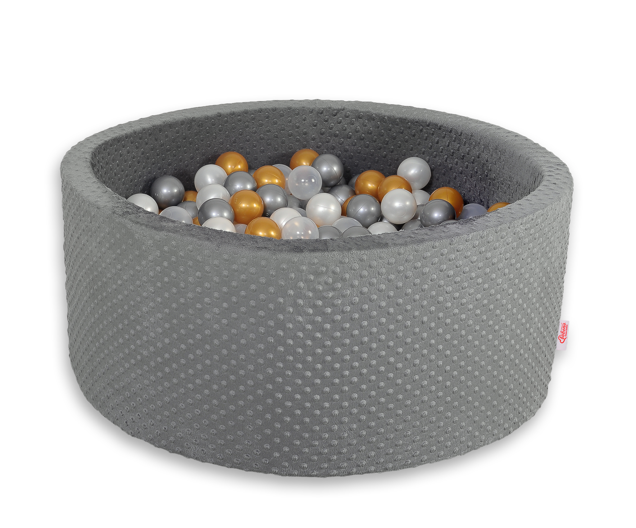 Bällebad aus Minkystoff mit Bällen 200st - dunkelgrau Das bunte Bällebad eignet sich hervorragend um darin Draußen und in Haus zu spielen. Die bunten Bälle sind entwicklungsfördernd für das Kind. Der Pool ist aus weichem Schaumstoff gefertigt, bietet dadurch viel Sicherheit beim spielen.