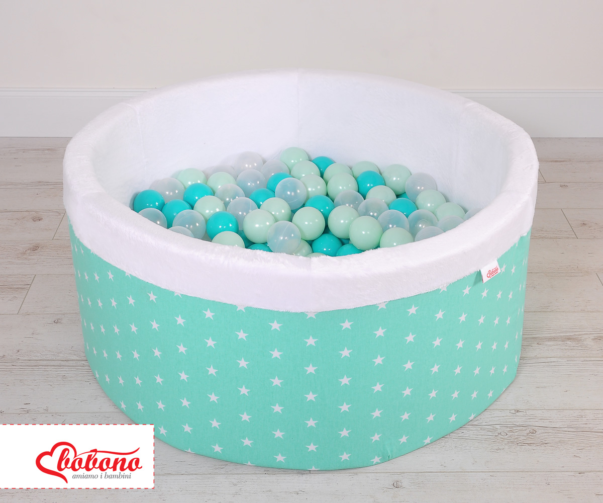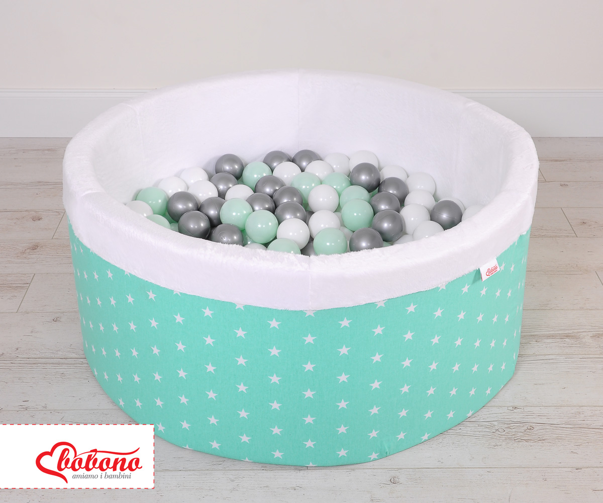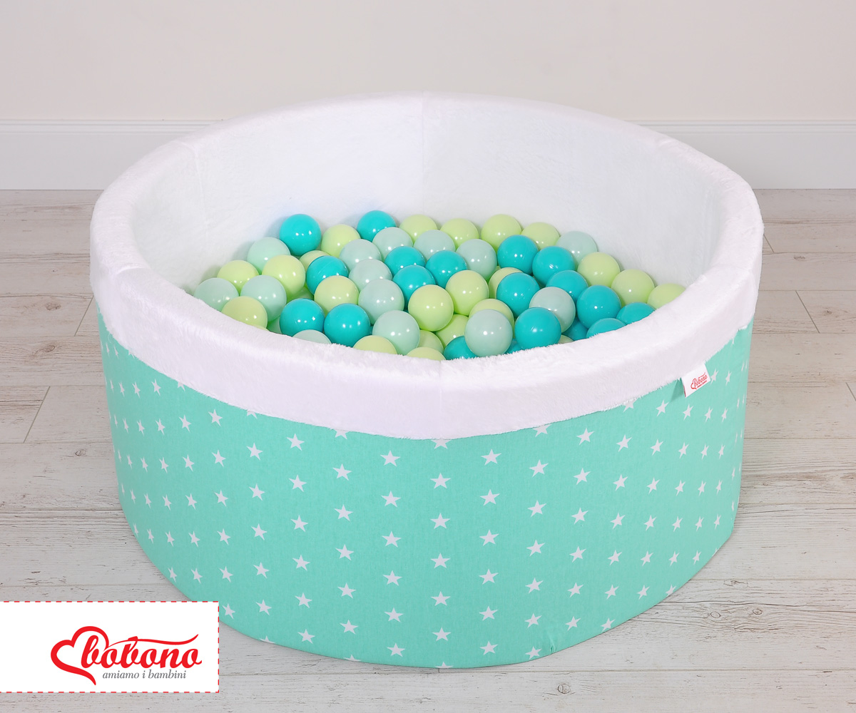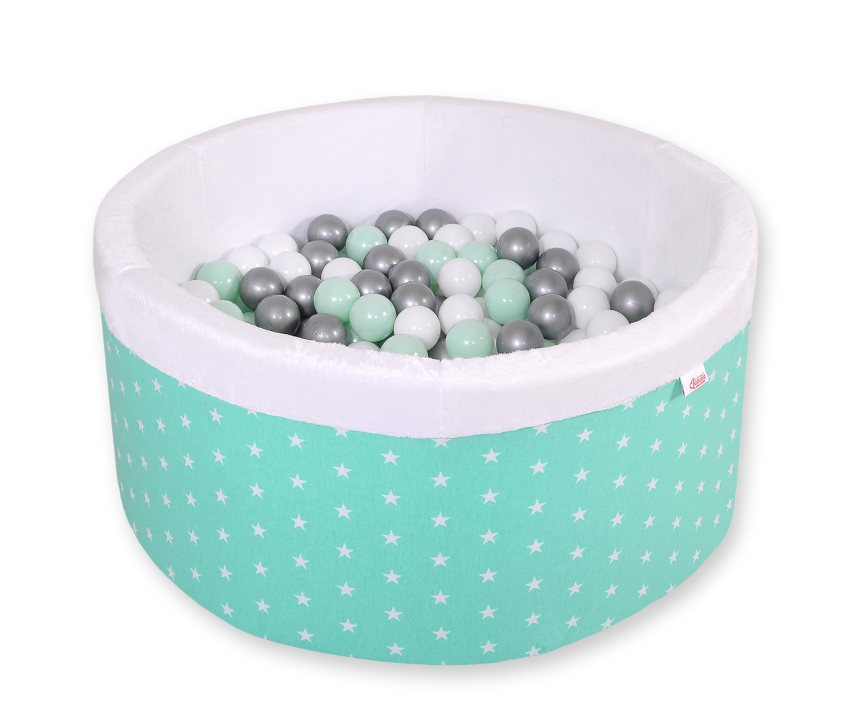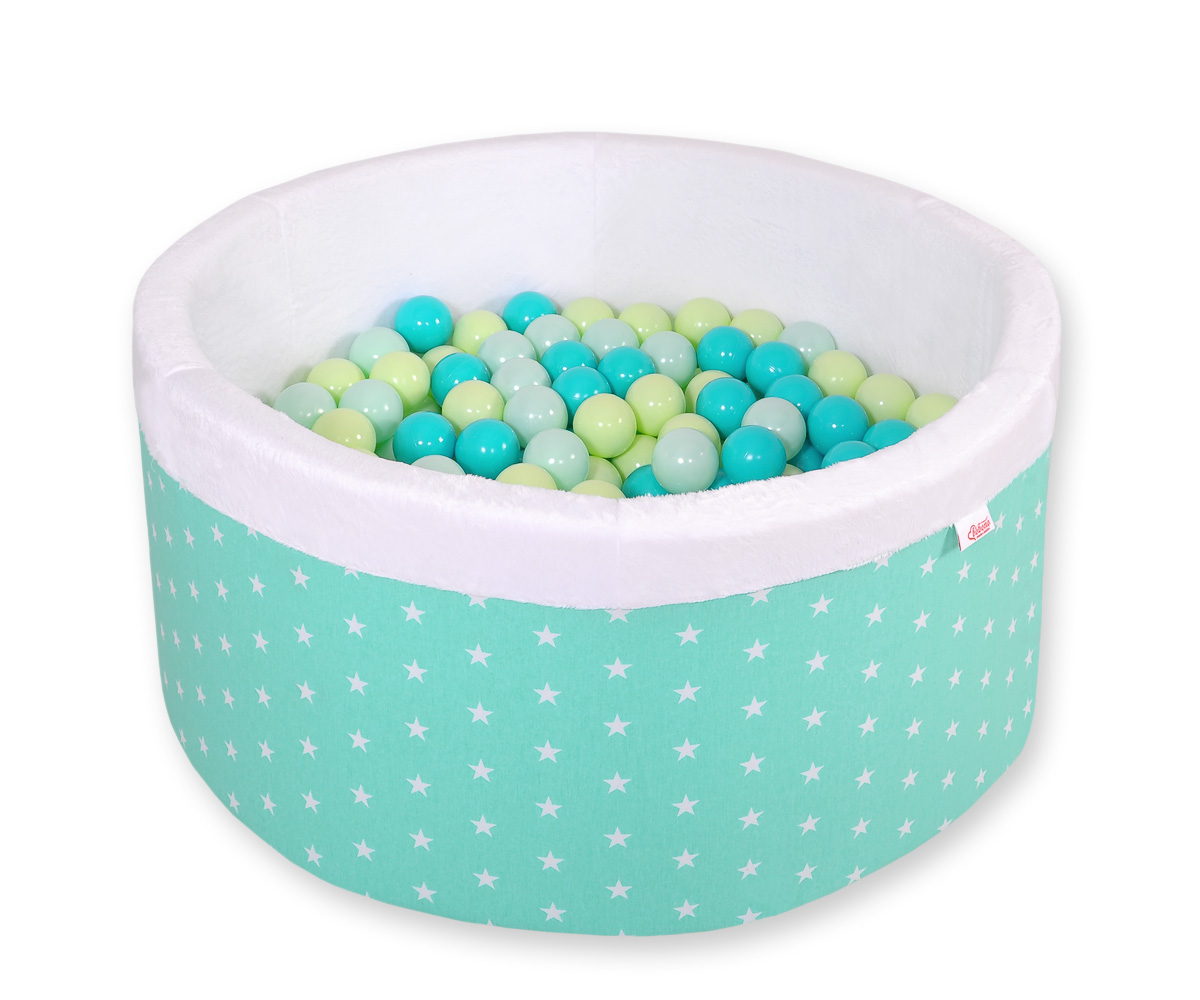 Bällebad aus Minkystoff mit Bällen 200st - minze Sternchen Das bunte Bällebad eignet sich hervorragend um darin Draußen und in Haus zu spielen. Die bunten Bälle sind entwicklungsfördernd für das Kind. Der Pool ist aus weichem Schaumstoff gefertigt, bietet dadurch viel Sicherheit beim spielen.
