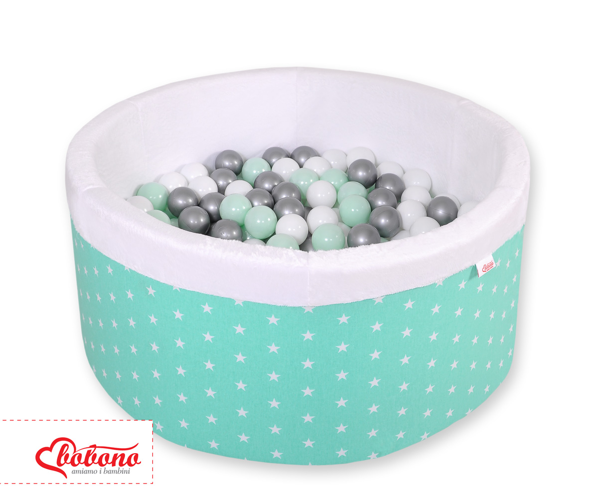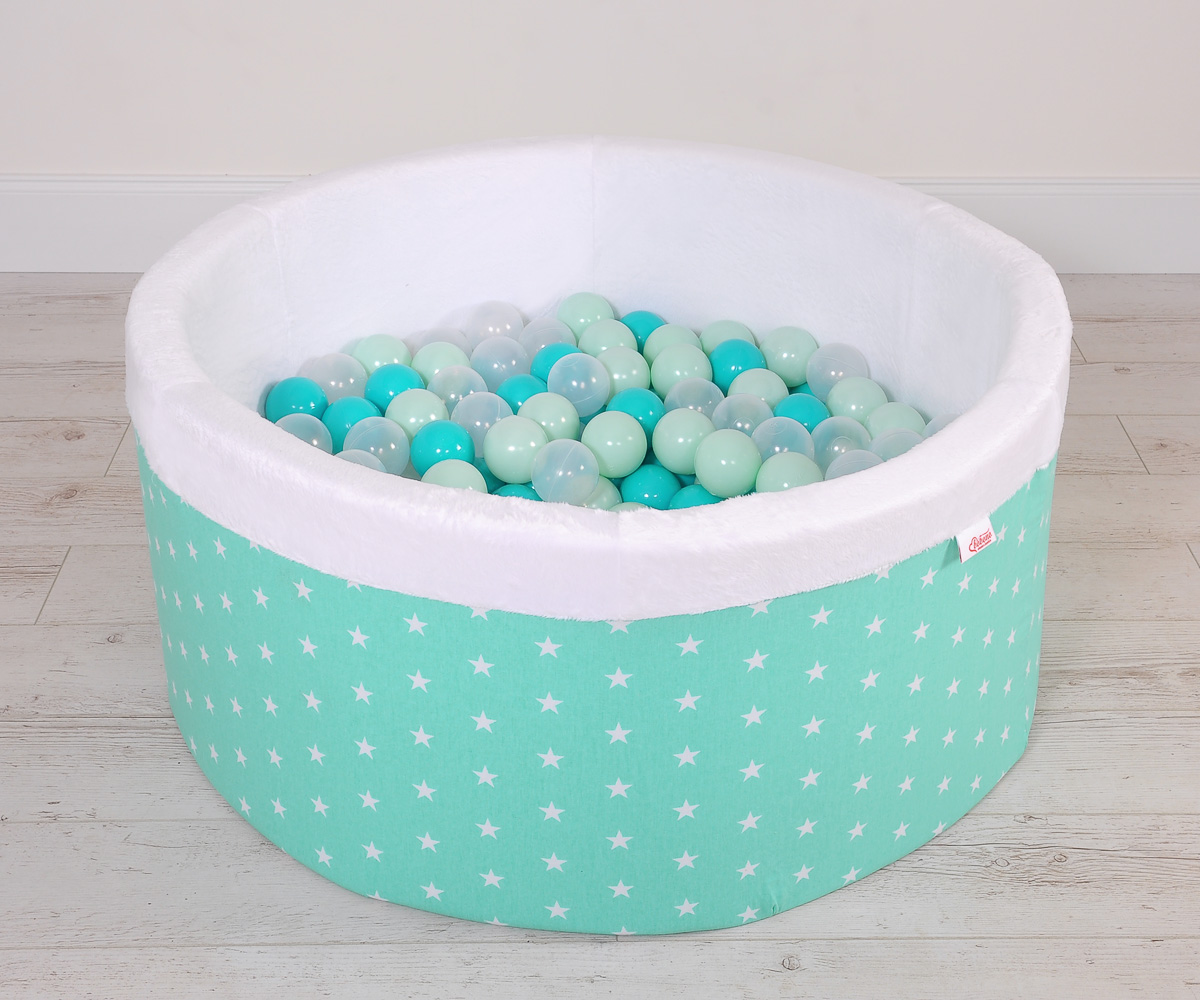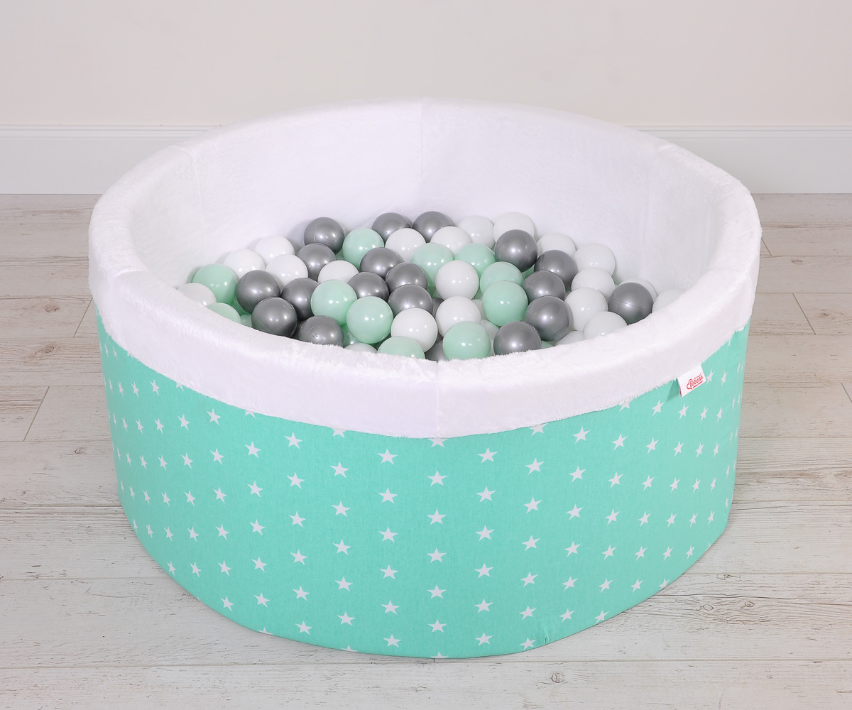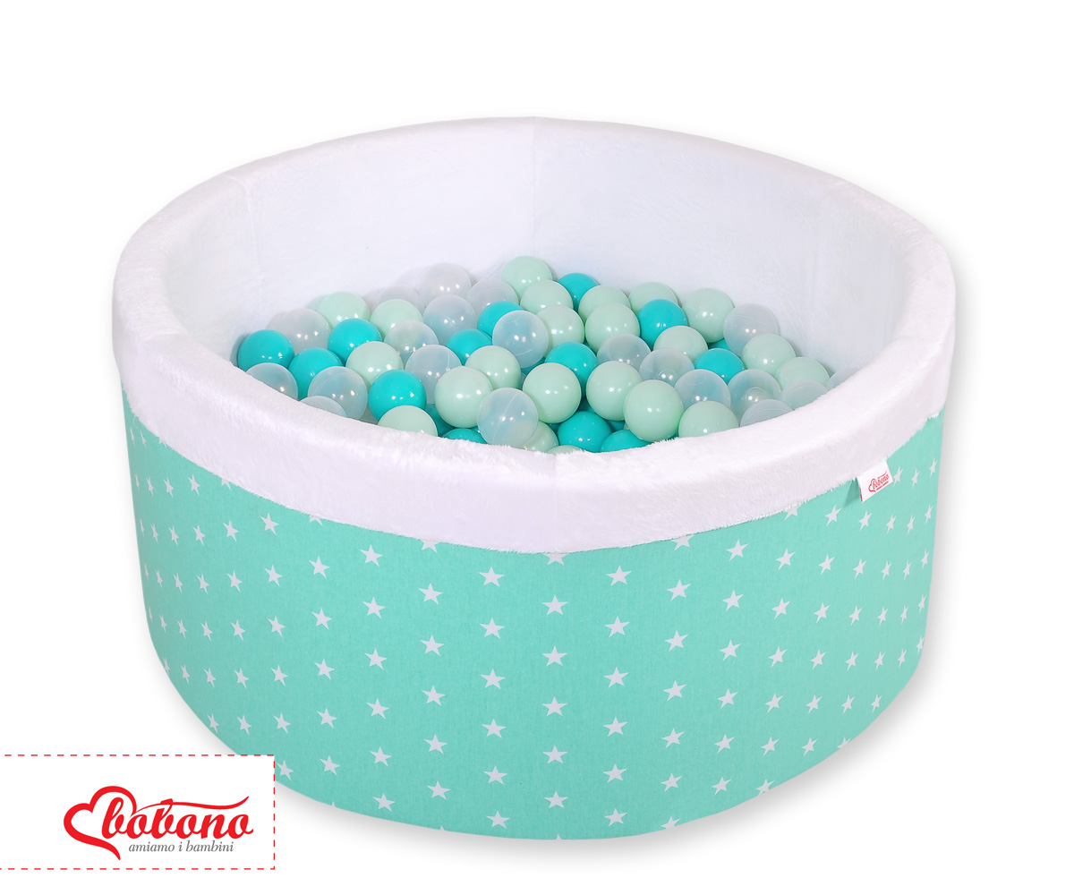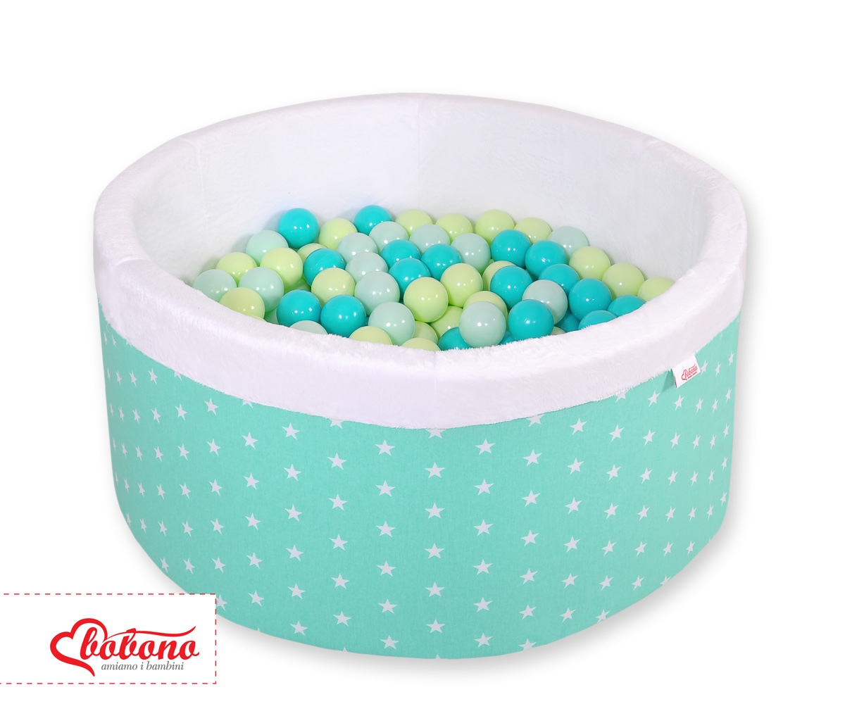 Bällebad aus Minkystoff mit Bällen 200st - minze Sternchen Das bunte Bällebad eignet sich hervorragend um darin Draußen und in Haus zu spielen. Die bunten Bälle sind entwicklungsfördernd für das Kind. Der Pool ist aus weichem Schaumstoff gefertigt, bietet dadurch viel Sicherheit beim spielen.
