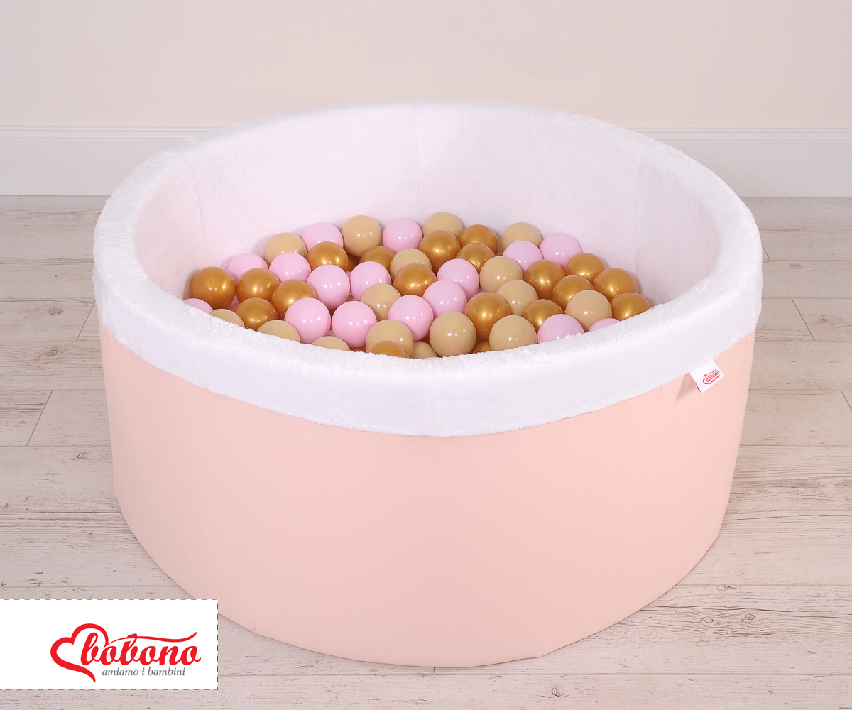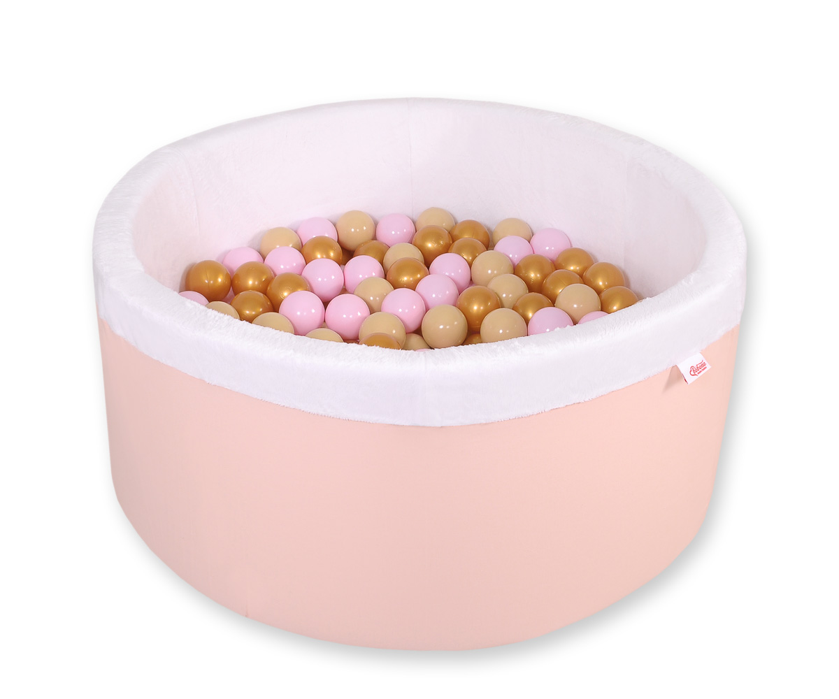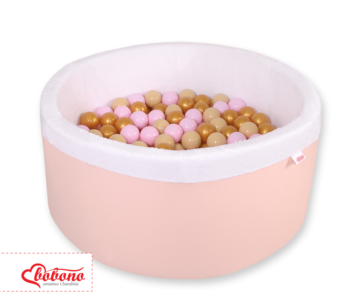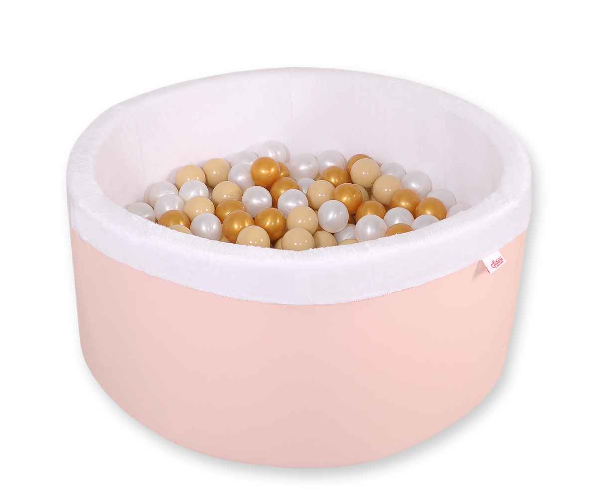 Bällebad aus Minkystoff mit Bällen (Rosa, Gold, Grau) 200st - puderrosa