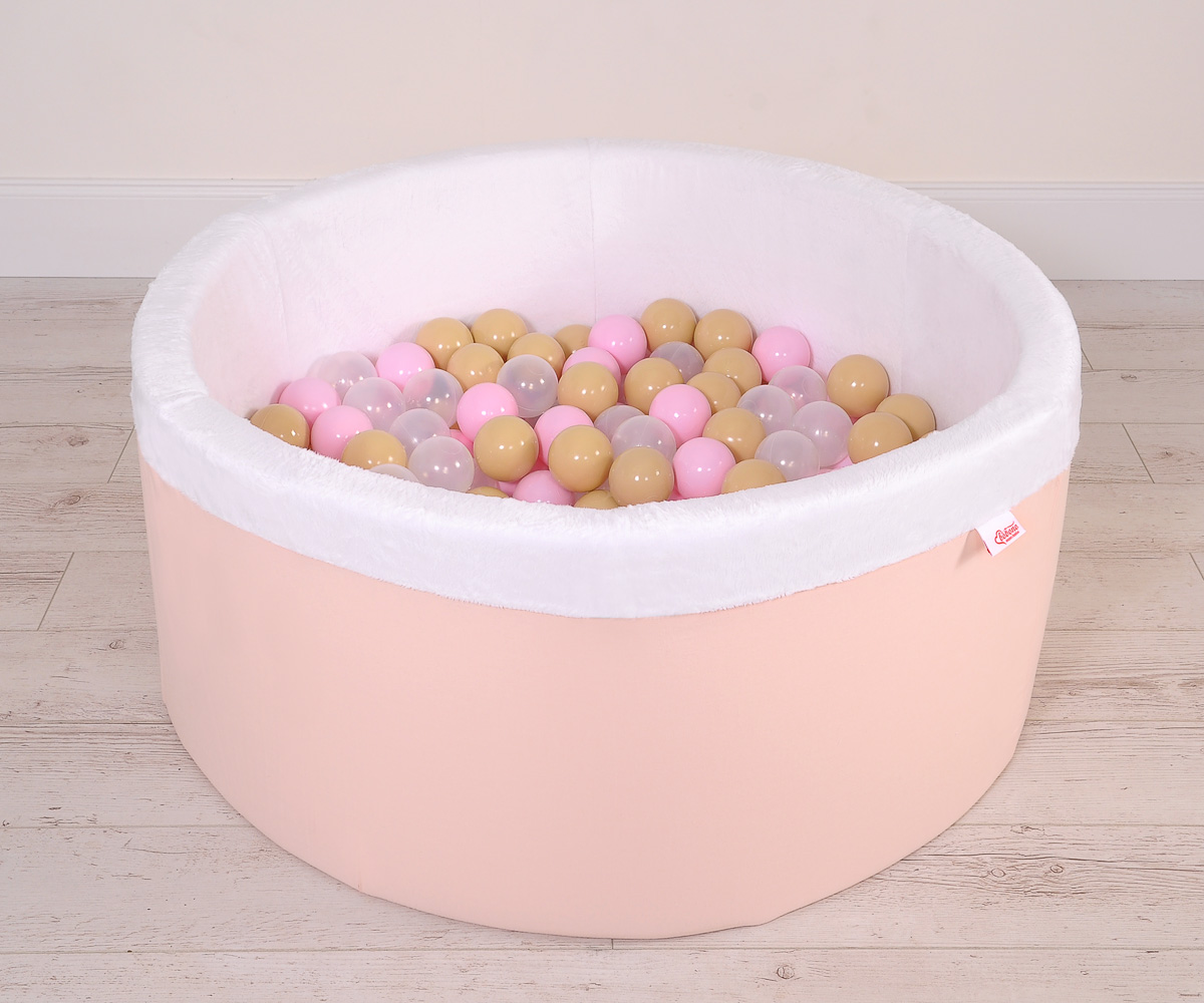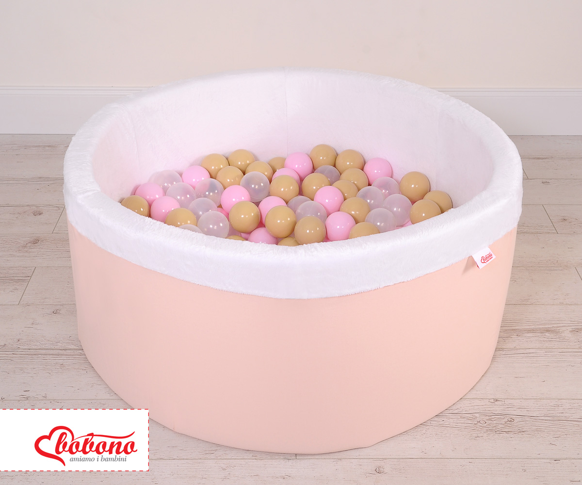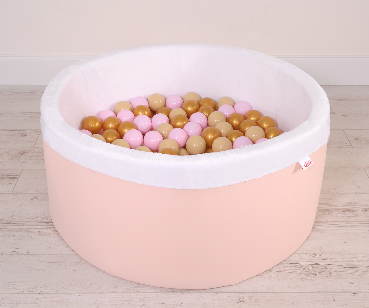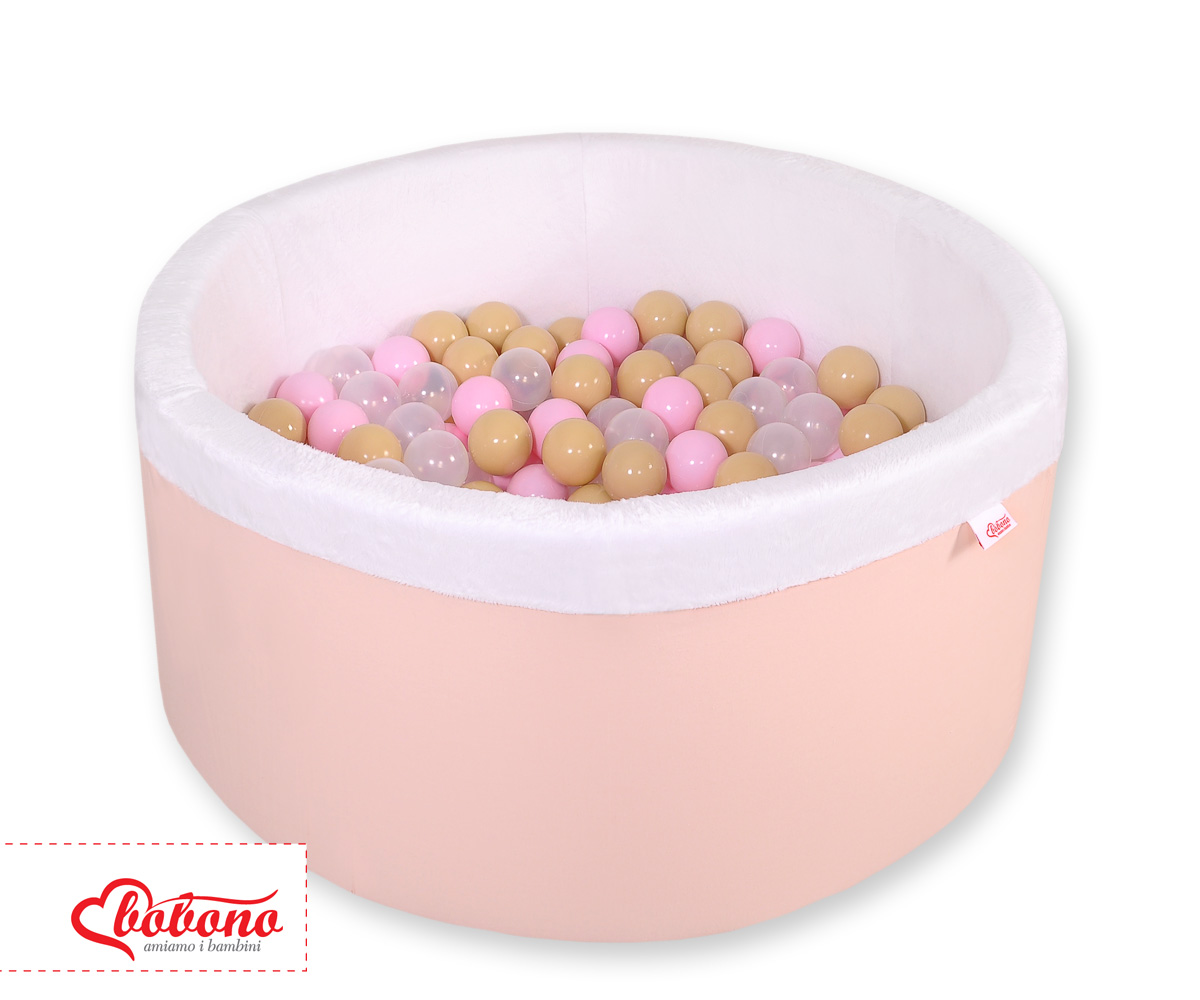 Bällebad aus Minkystoff mit Bällen (Rosa, Gold, Grau) 200st - puderrosa