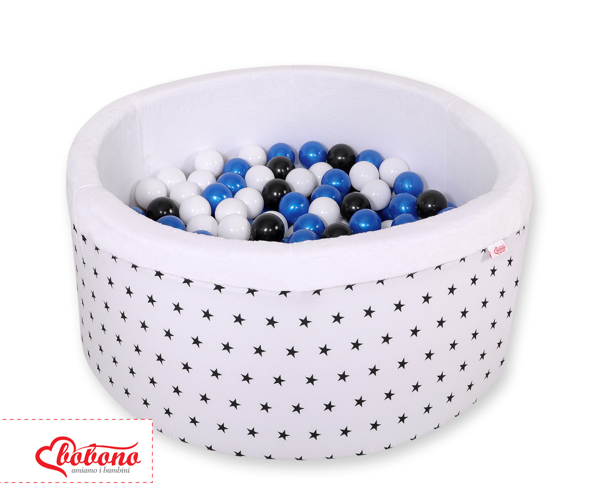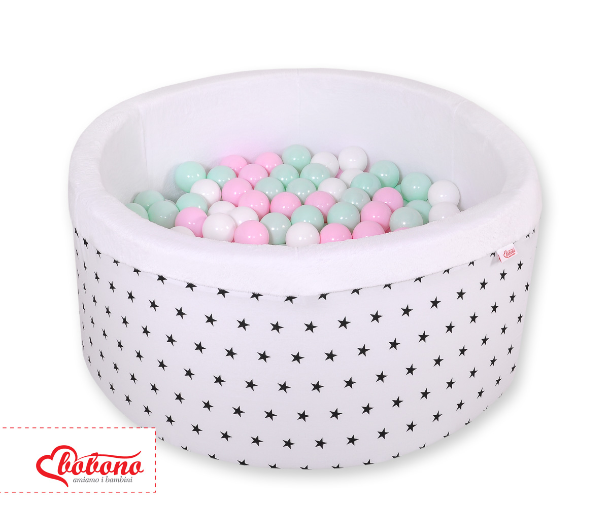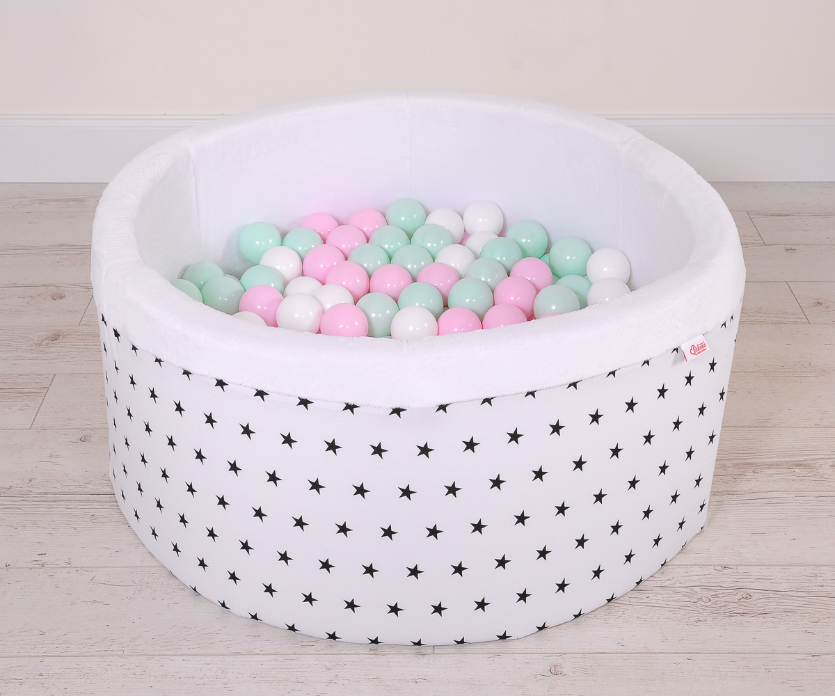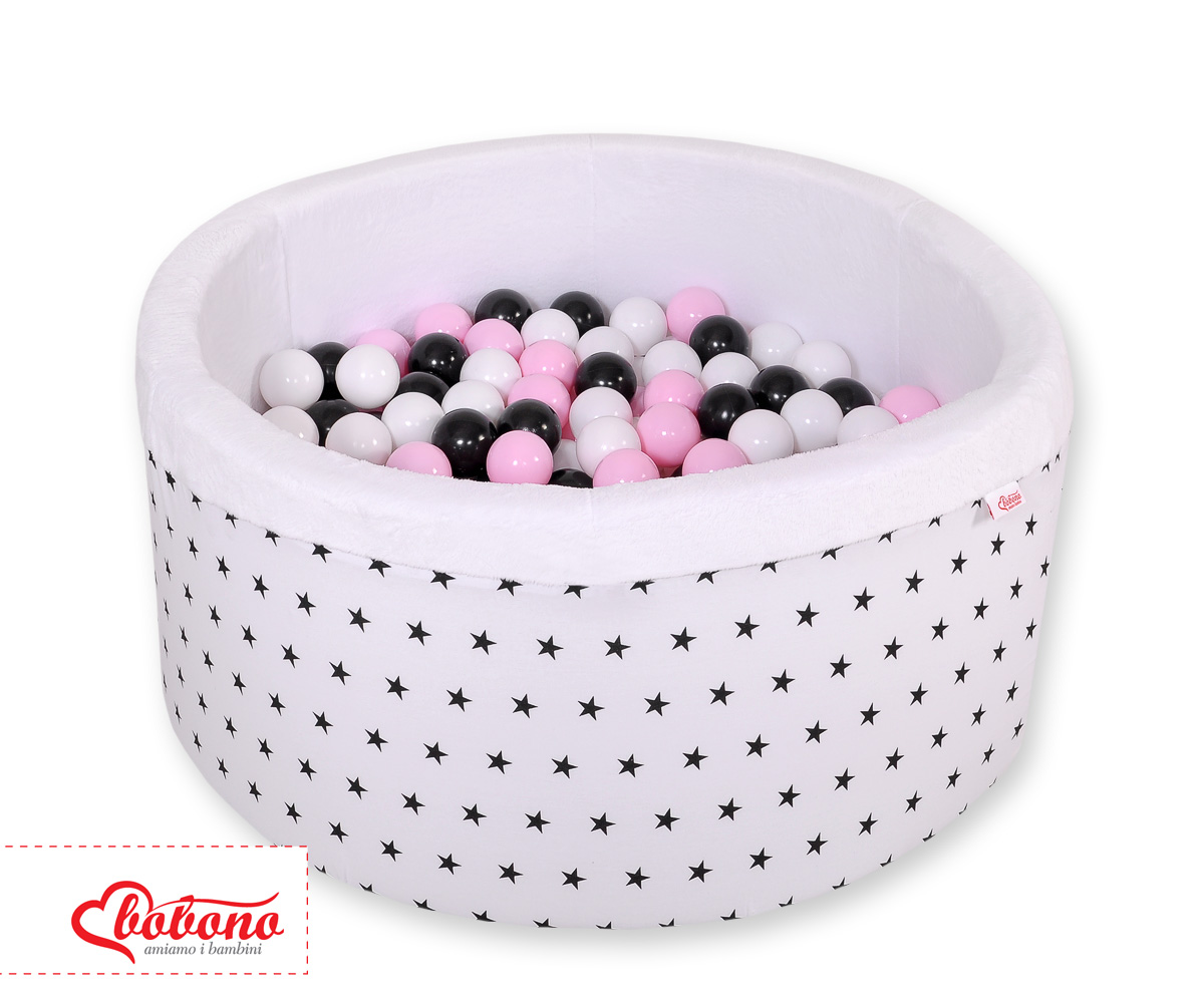 Bällebad aus Minkystoff mit Bällen 200st - schwarze Sternchen Das bunte Bällebad eignet sich hervorragend um darin Draußen und in Haus zu spielen. Die bunten Bälle sind entwicklungsfördernd für das Kind. Der Pool ist aus weichem Schaumstoff gefertigt, bietet dadurch viel Sicherheit beim spielen.