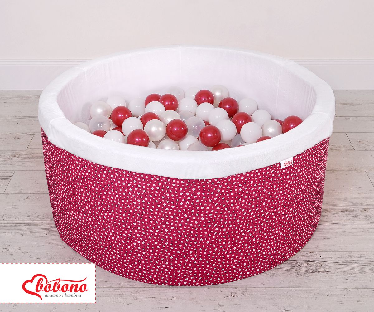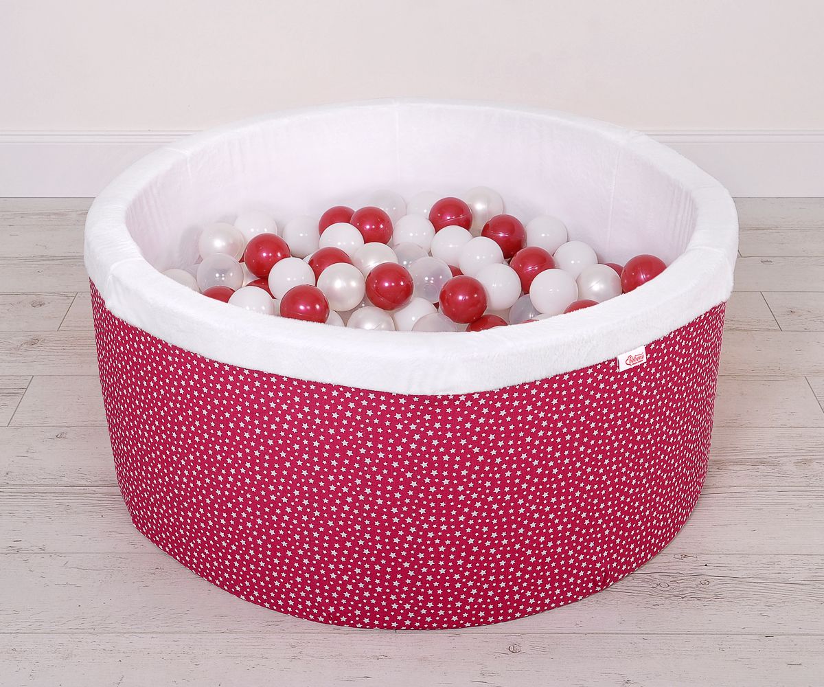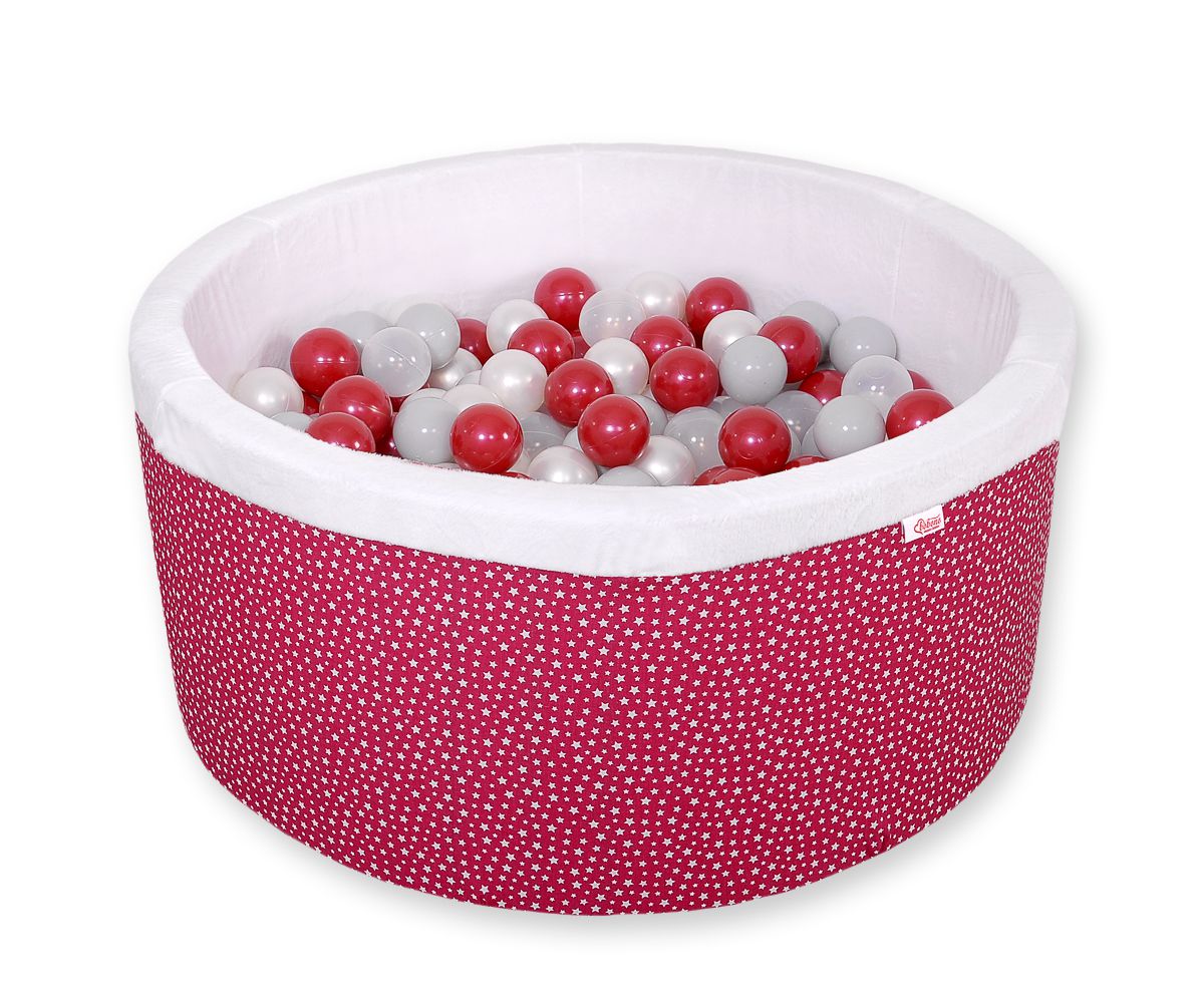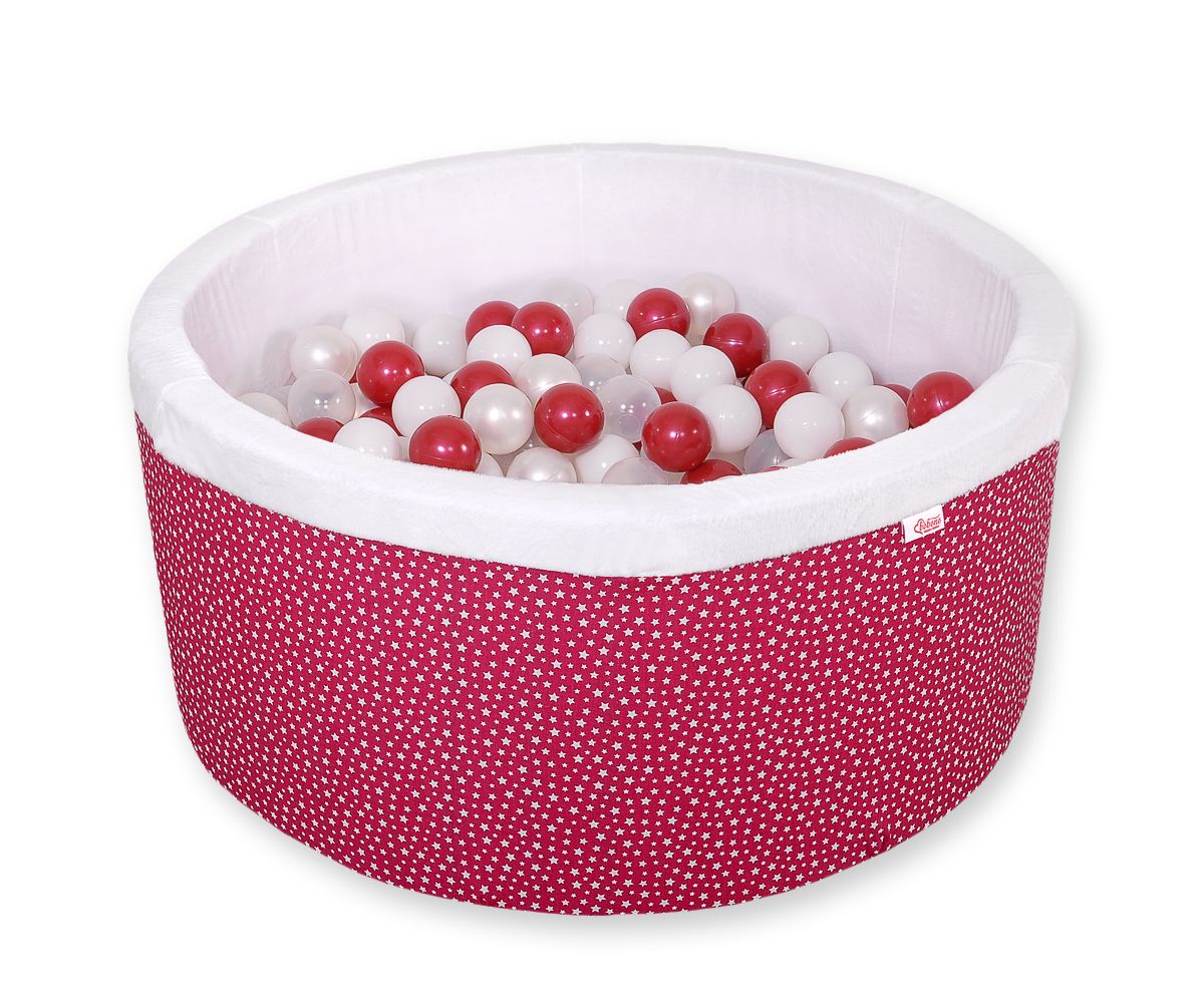Bällebad aus Minkystoff mit Bällen 200st - weinrote Sternchen Das bunte Bällebad eignet sich hervorragend um darin Draußen und in Haus zu spielen. Die bunten Bälle sind entwicklungsfördernd für das Kind. Der Pool ist aus weichem Schaumstoff gefertigt, bietet dadurch viel Sicherheit beim spielen.