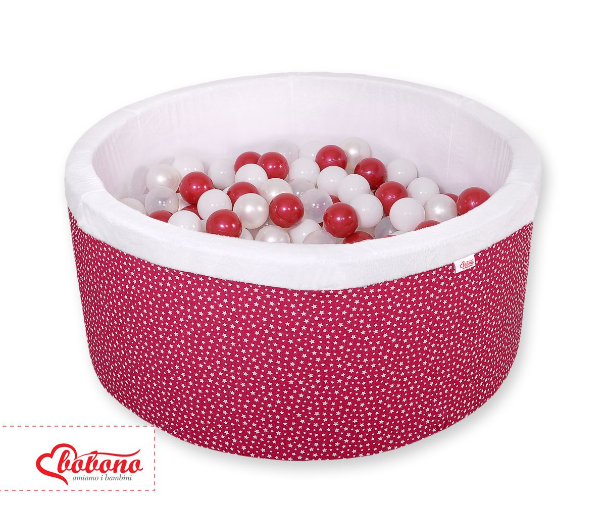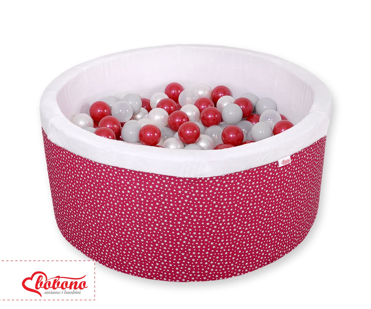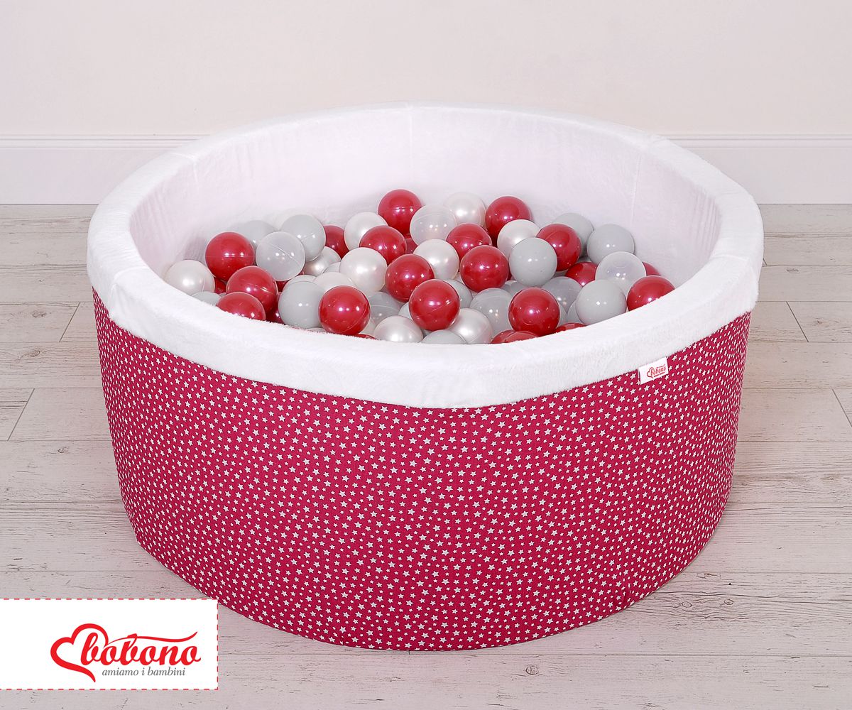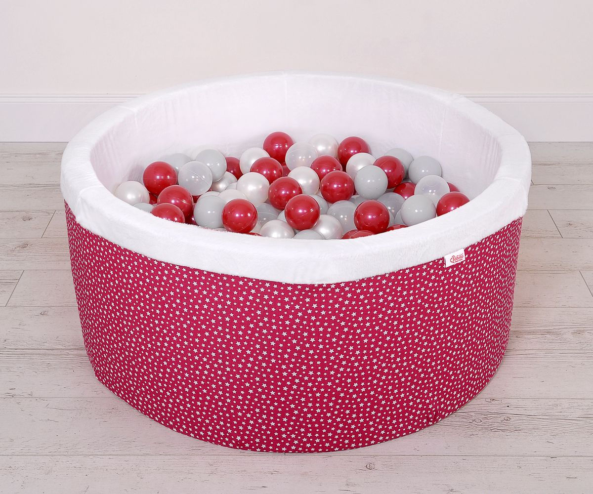 Bällebad aus Minkystoff mit Bällen 200st - weinrote Sternchen Das bunte Bällebad eignet sich hervorragend um darin Draußen und in Haus zu spielen. Die bunten Bälle sind entwicklungsfördernd für das Kind. Der Pool ist aus weichem Schaumstoff gefertigt, bietet dadurch viel Sicherheit beim spielen.