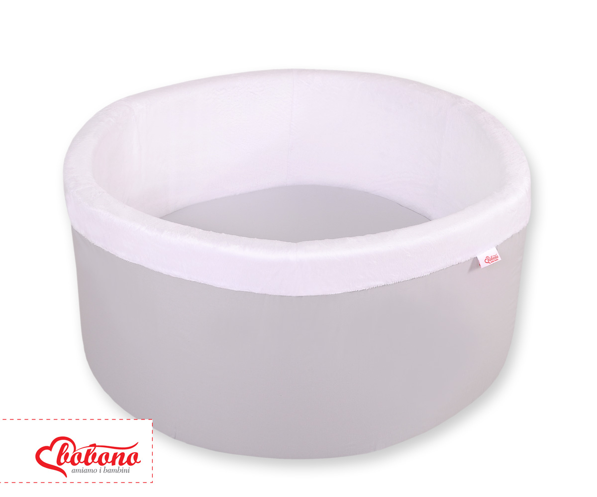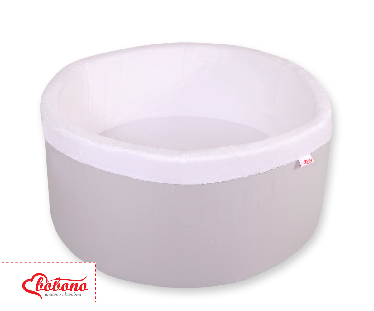 Bällebad aus Minkystoff ohne Bälle - grau Das bunte Bällebad eignet sich hervorragend um darin Draußen und in Haus zu spielen. Der Pool ist aus weichem Schaumstoff gefertigt, bietet dadurch viel Sicherheit beim spielen.
