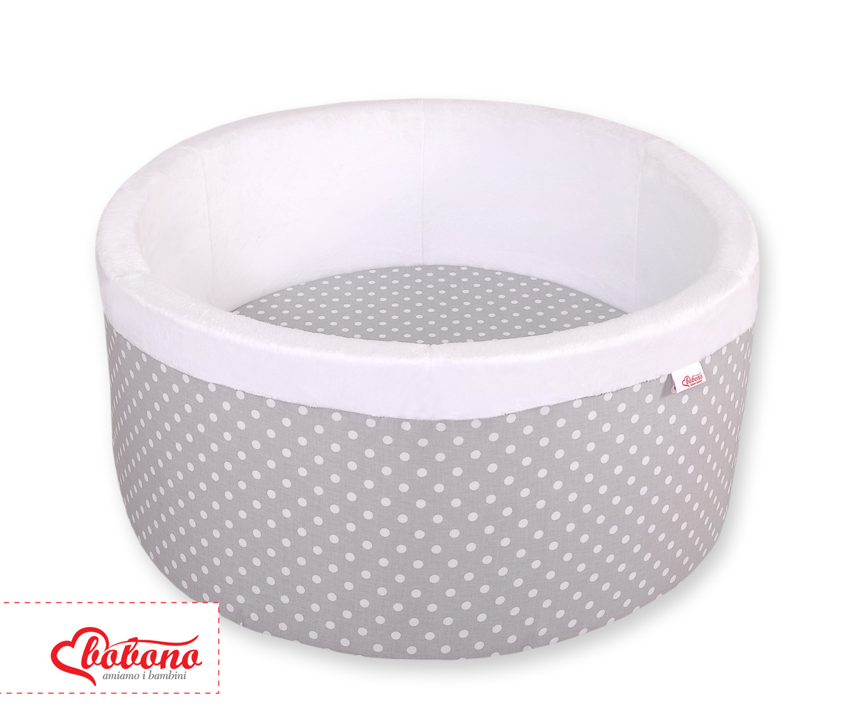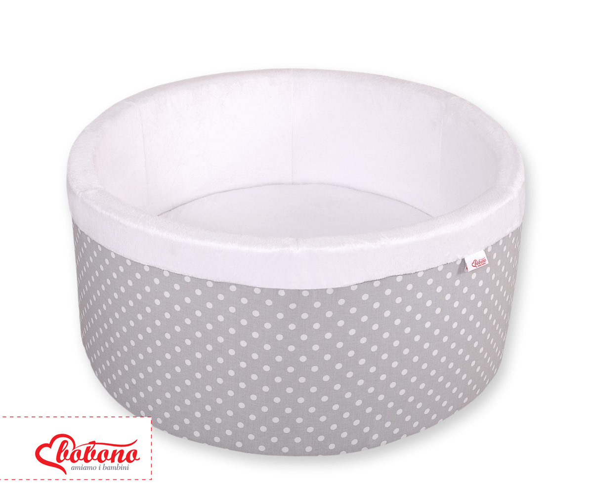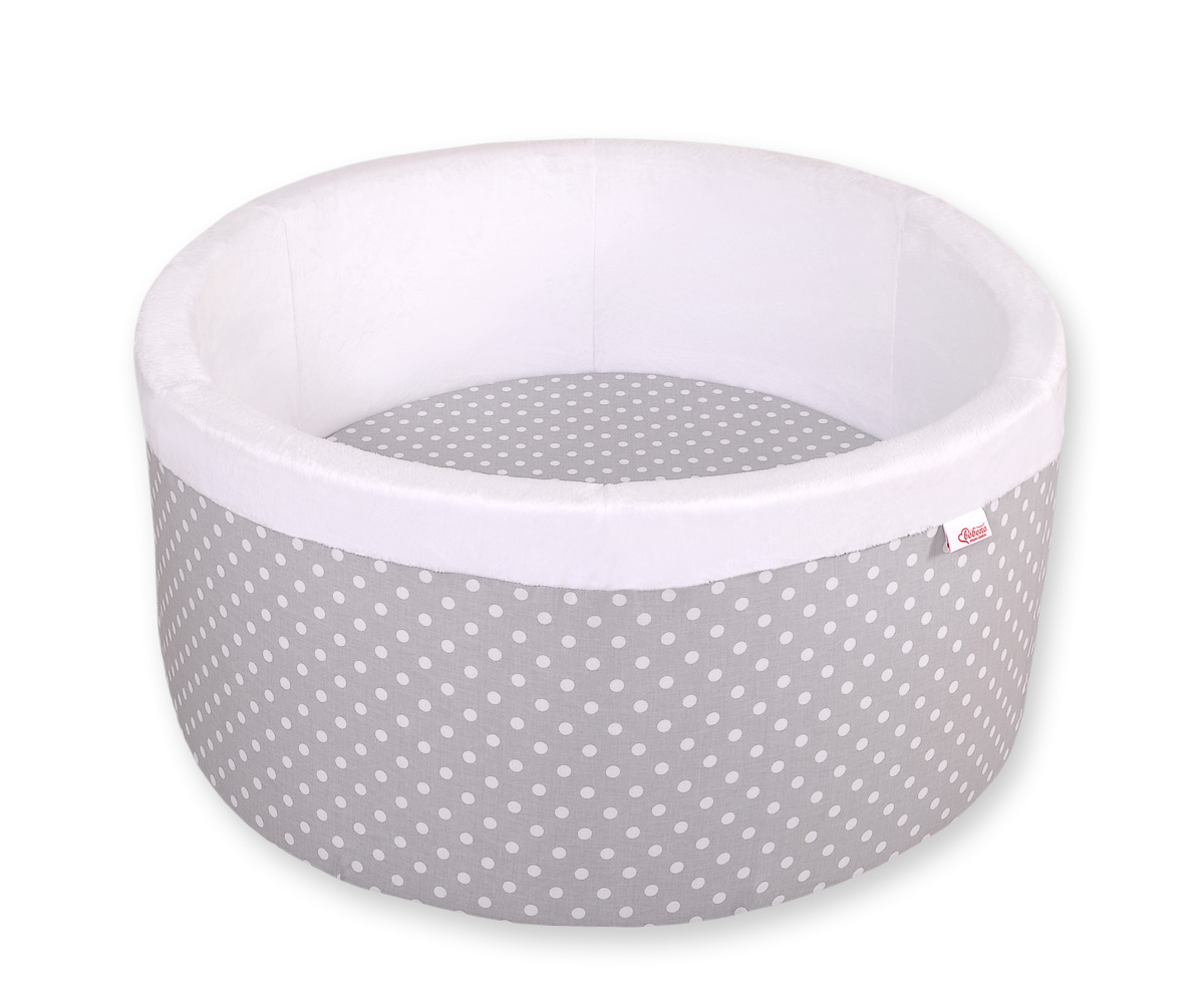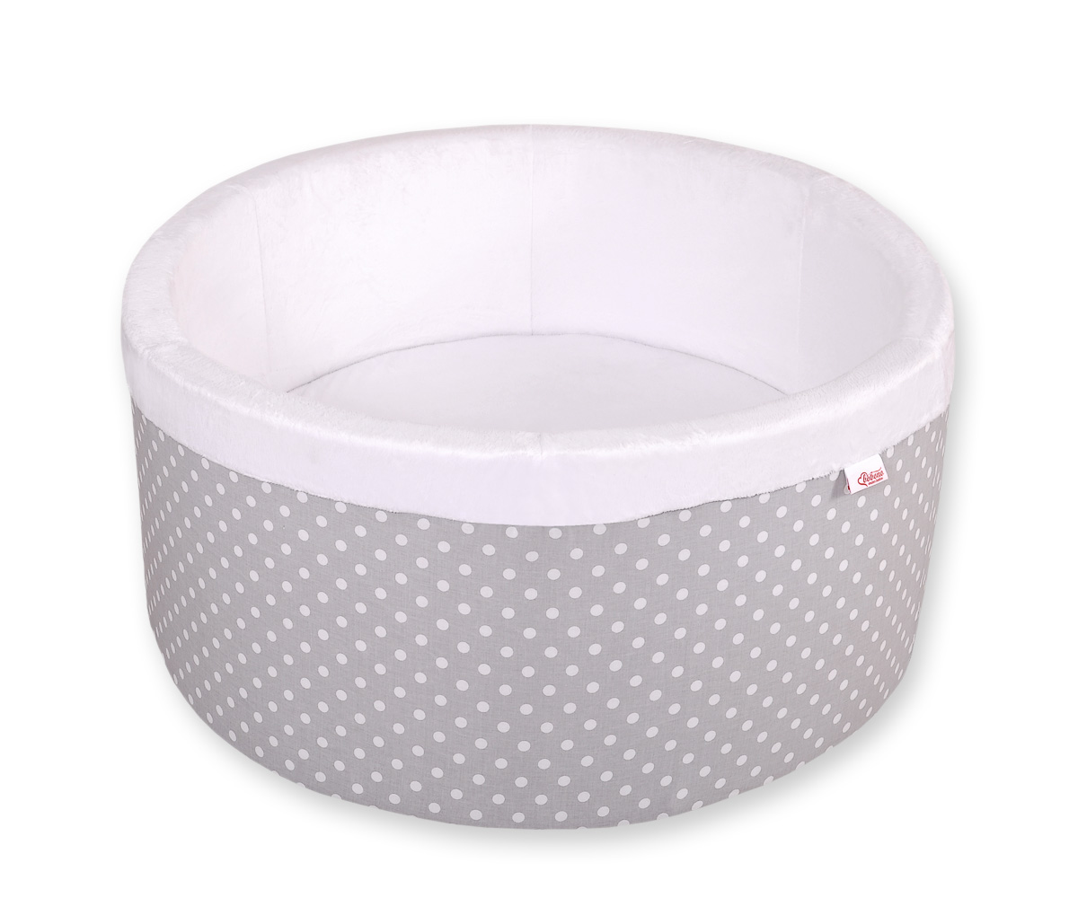 Bällebad aus Minkystoff ohne Bälle - Grau-Punktemuster Das bunte Bällebad eignet sich hervorragend um darin Draußen und in Haus zu spielen. Der Pool ist aus weichem Schaumstoff gefertigt, bietet dadurch viel Sicherheit beim spielen.