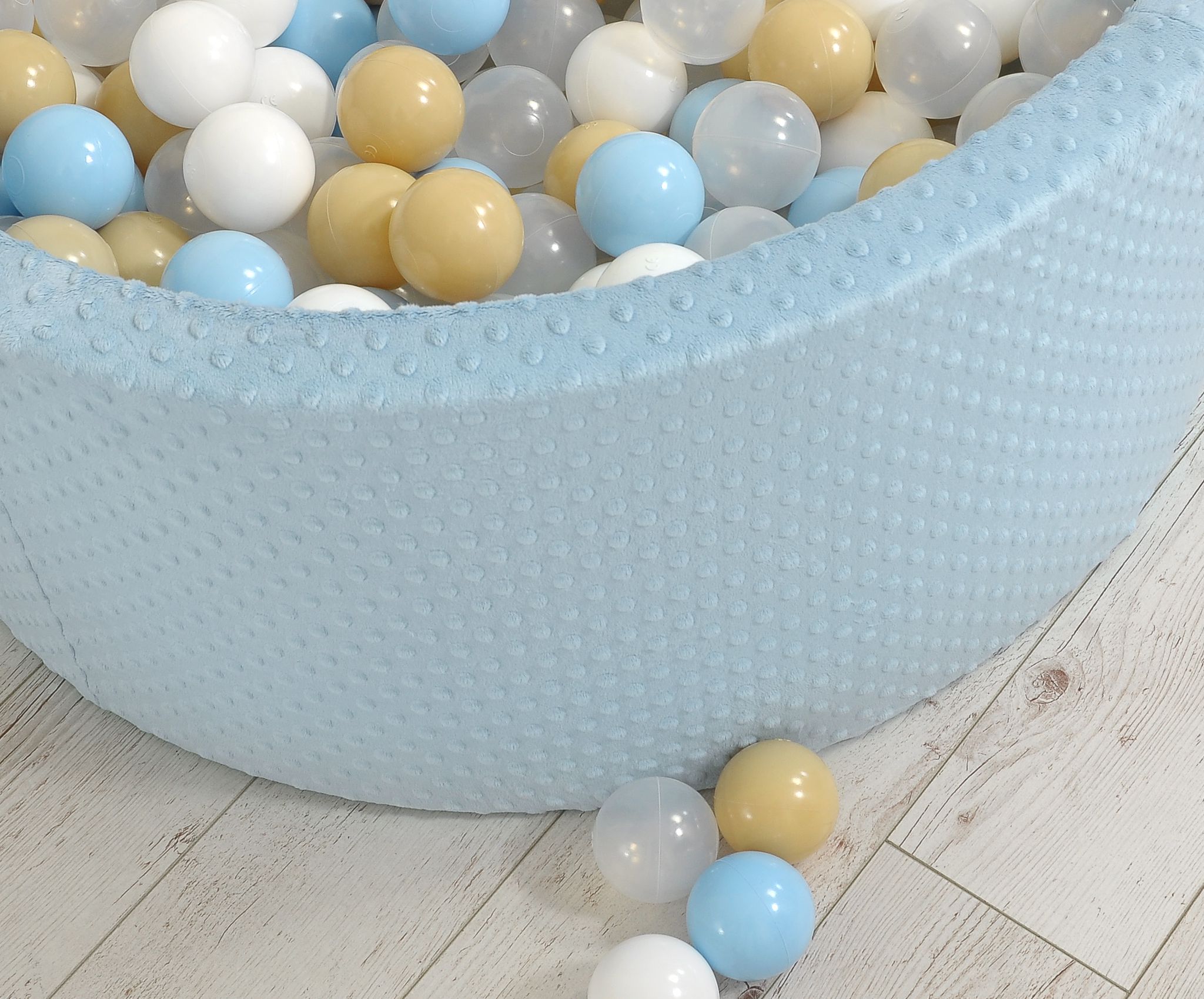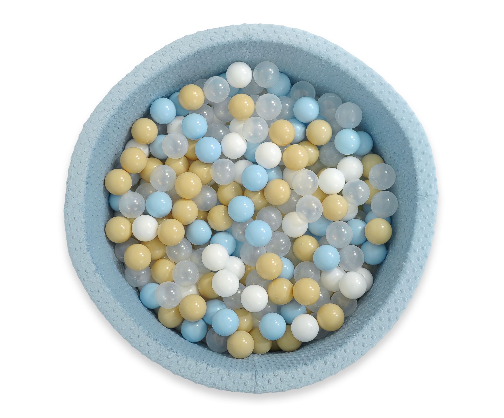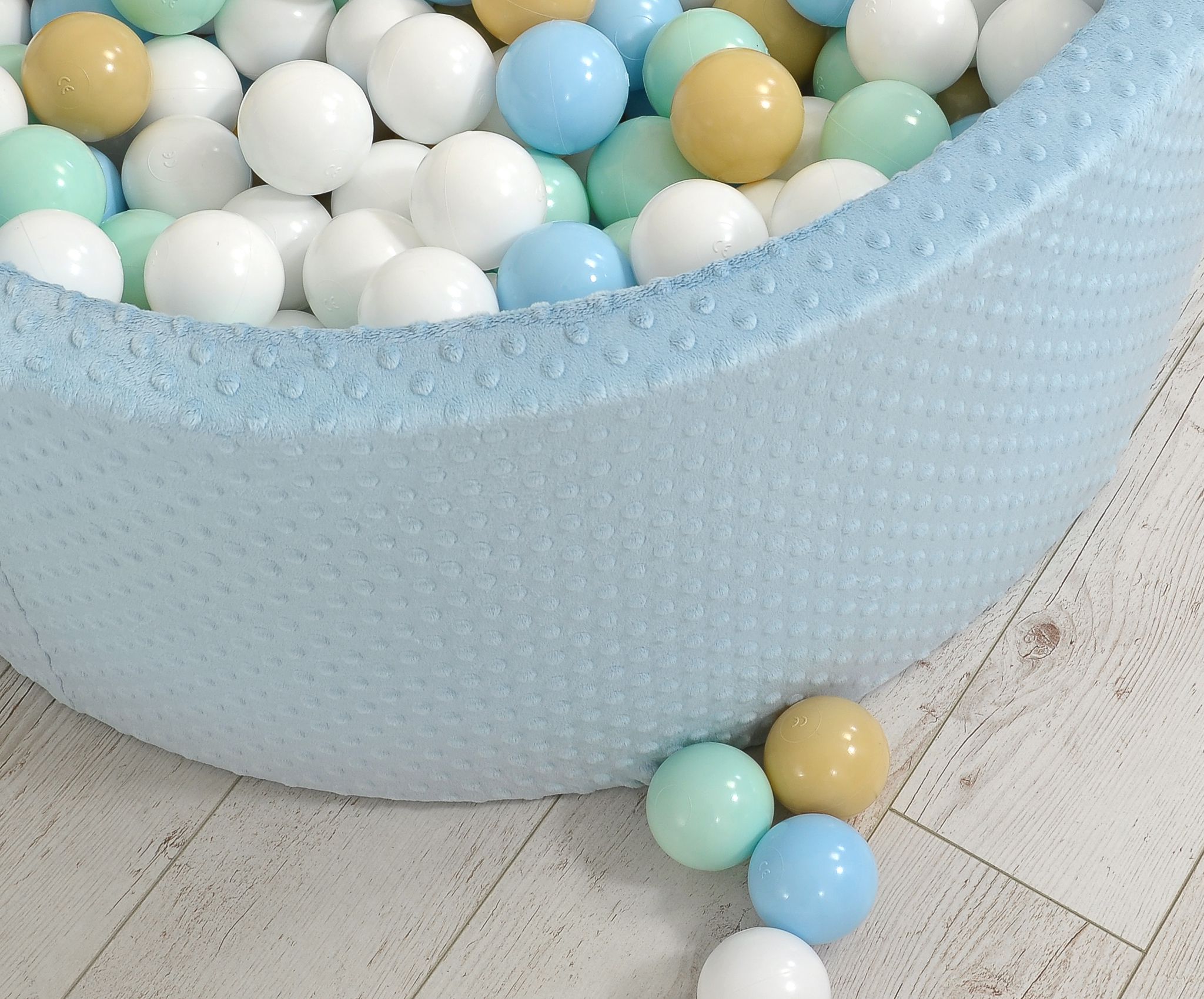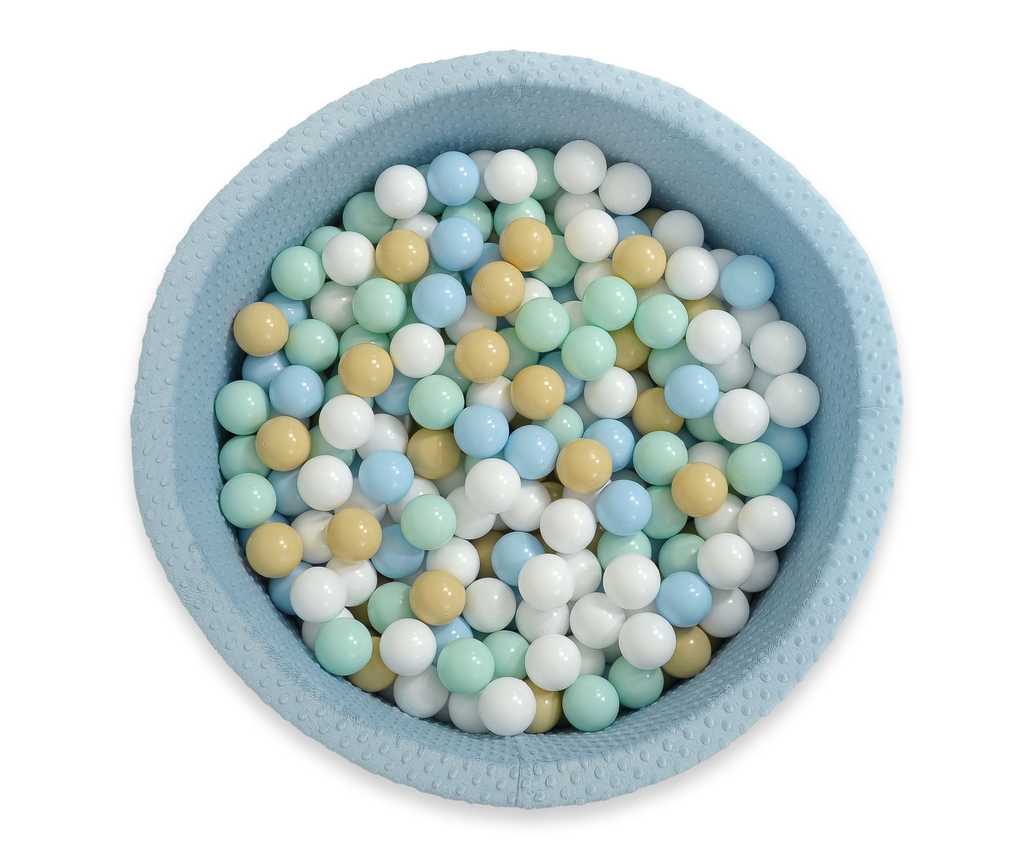 Bällebad für Babys 90 x 40 cm Minky mit Bällen 200st- misty blue Das bunte Bällebad eignet sich hervorragend um darin Draußen und in Haus zu spielen. Die bunten Bälle sind entwicklungsfördernd für das Kind. Der Pool ist aus weichem Schaumstoff gefertigt, bietet dadurch viel Sicherheit beim spielen.