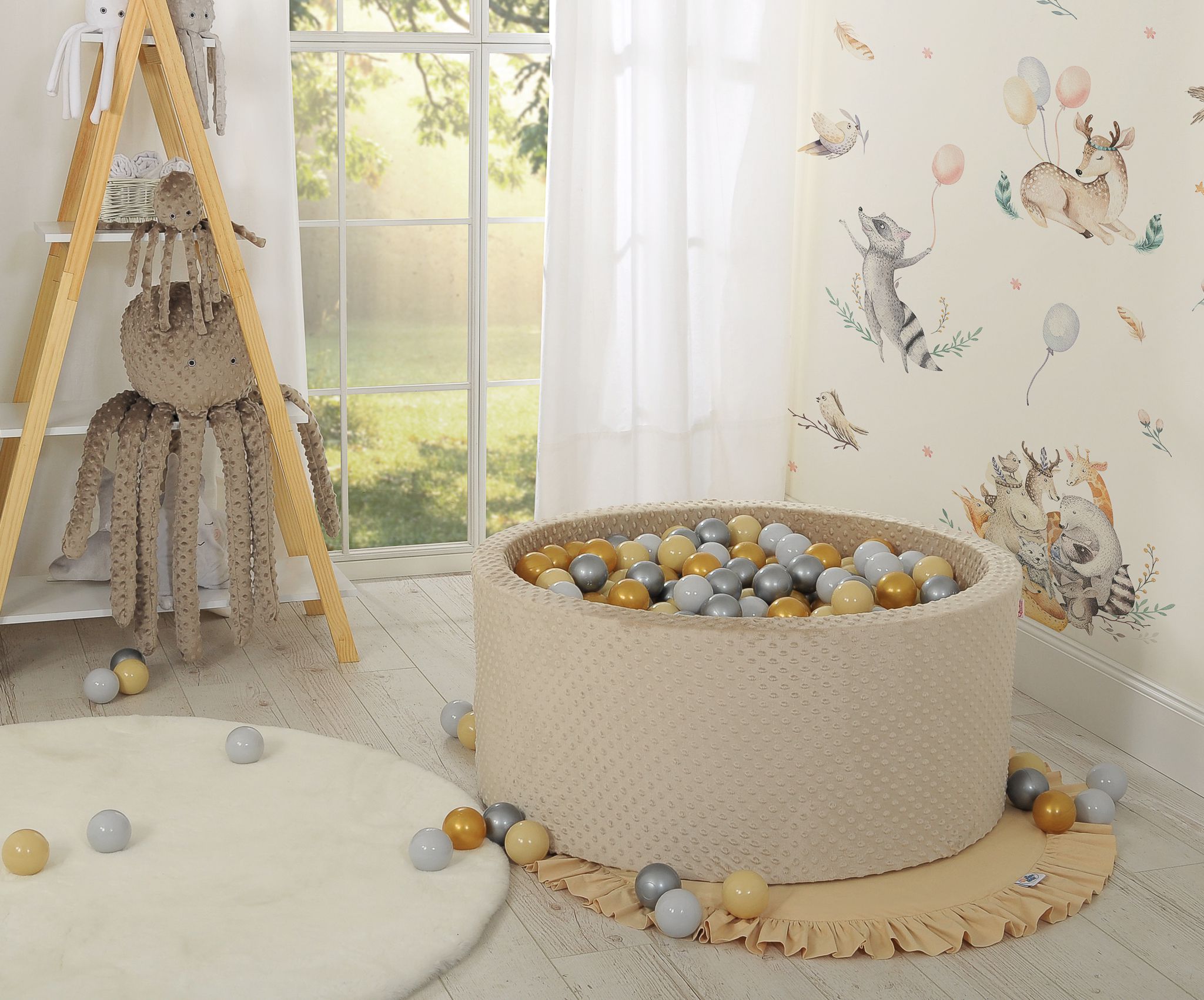 Bällebad für Babys 90 x 40 cm Minky mit Bällen 300st - beige