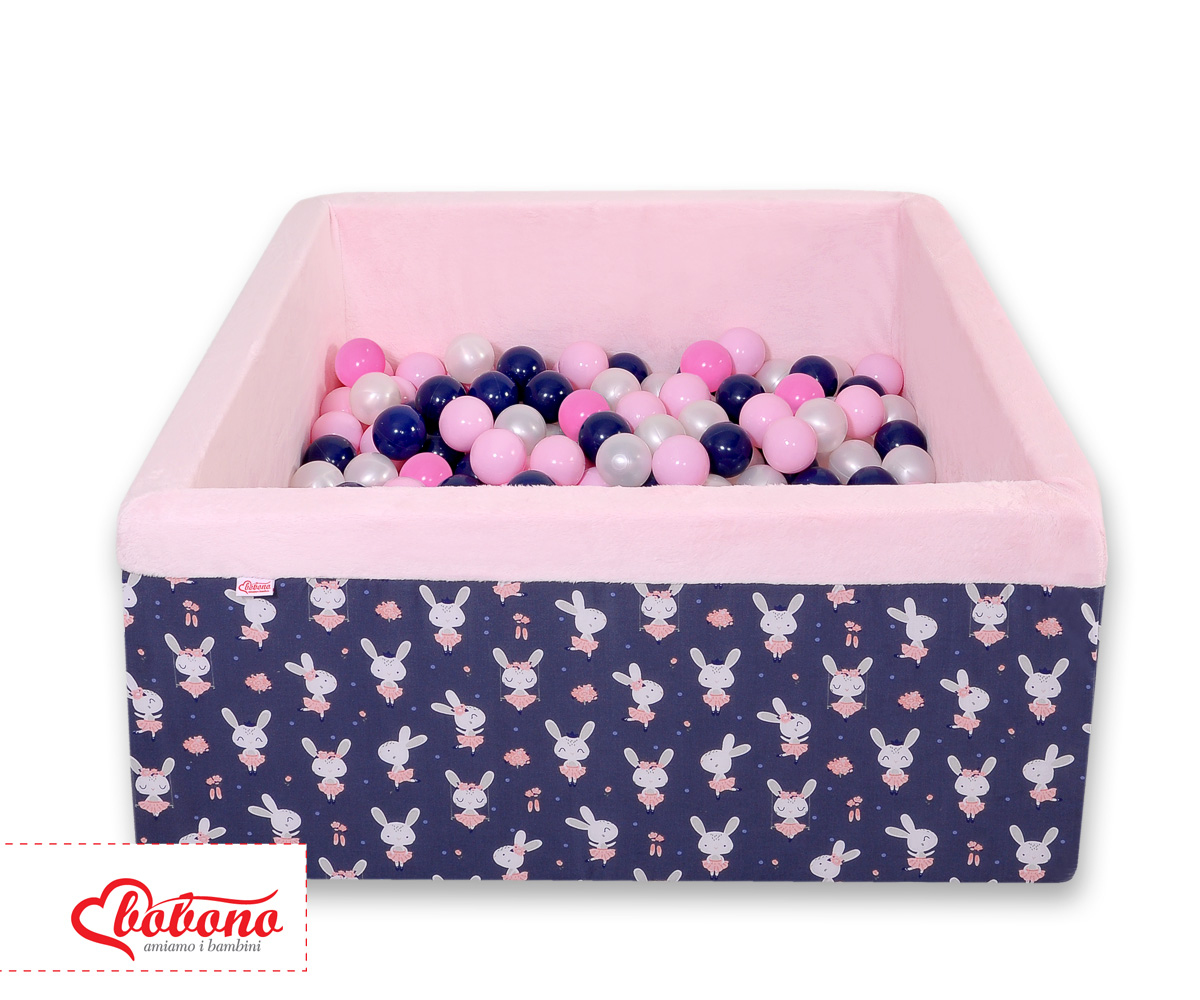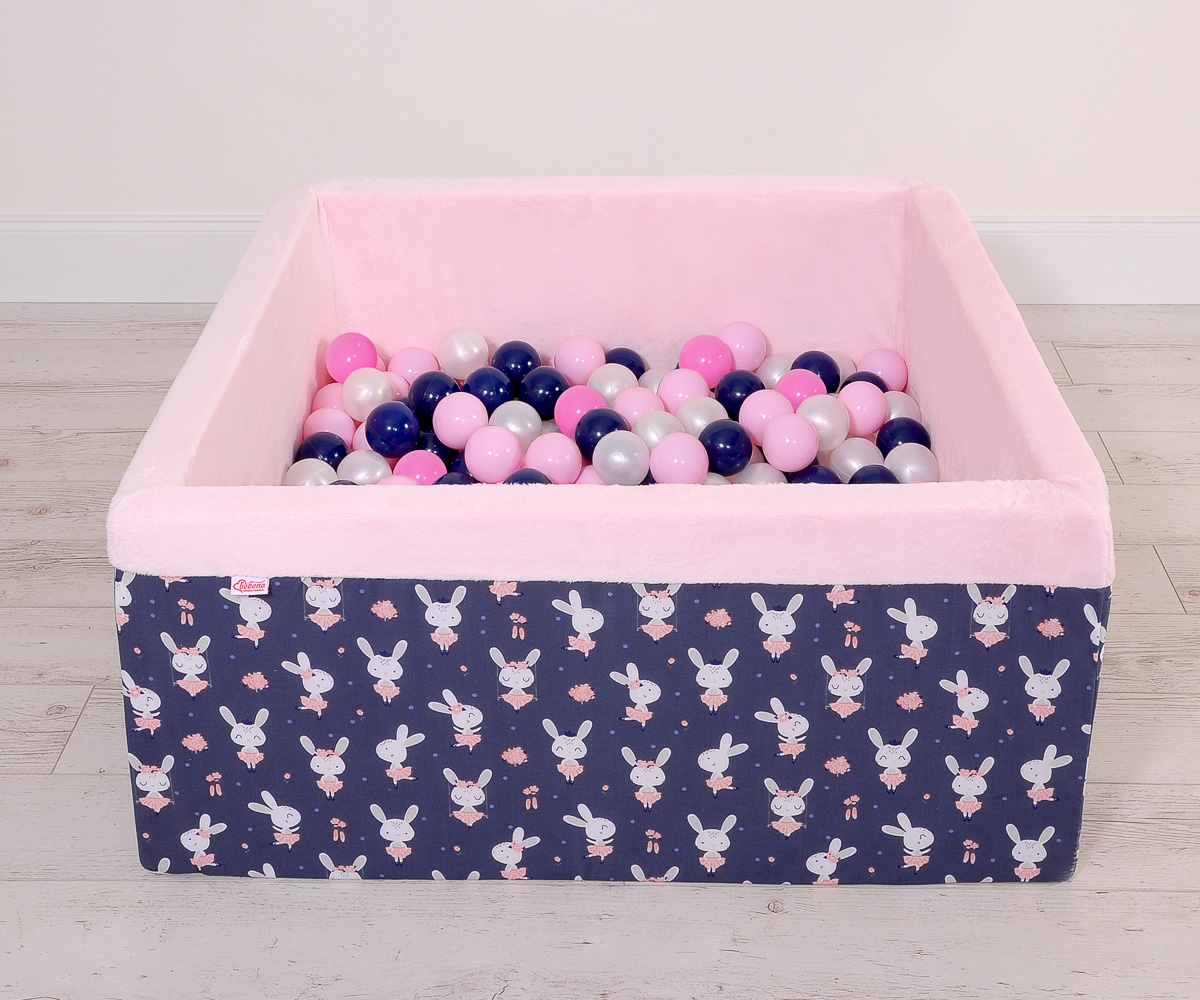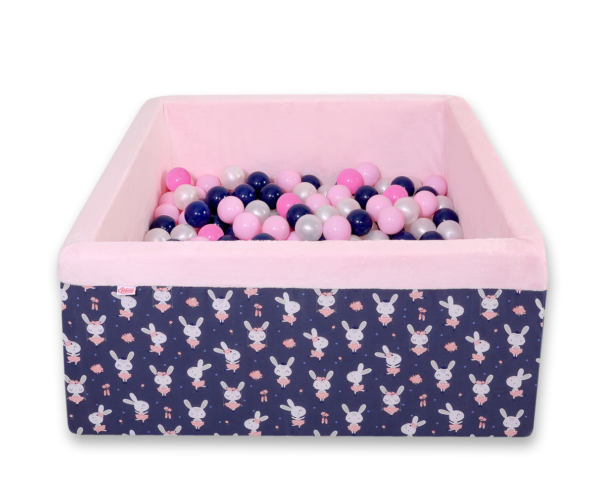 Bällebad minky mit Bällen 200st - blaue Hasen Das bunte Bällebad eignet sich hervorragend um darin Draußen und in Haus zu spielen. Die bunten Bälle sind entwicklungsfördernd für das Kind. Der Pool ist aus weichem Schaumstoff gefertigt, bietet dadurch viel Sicherheit beim spielen.