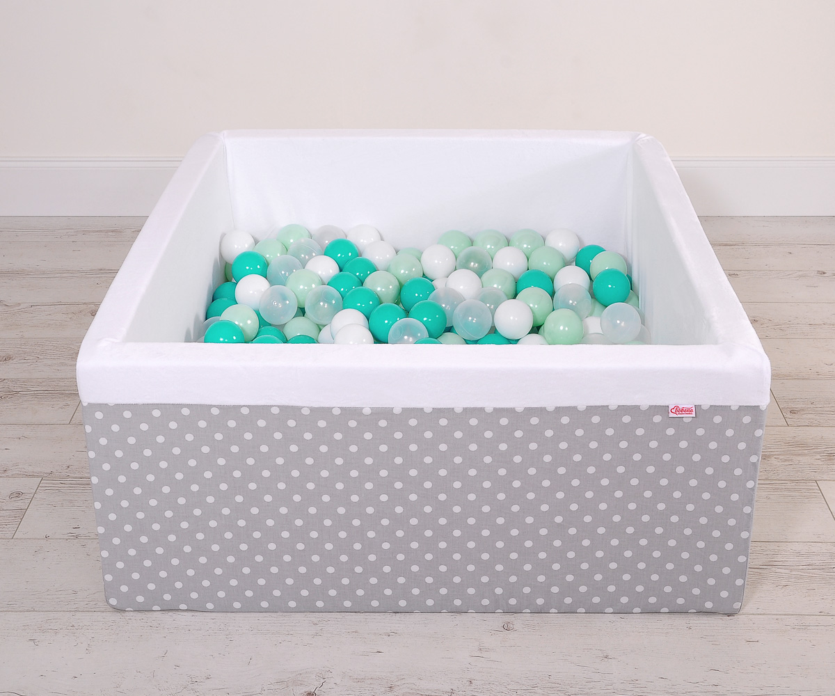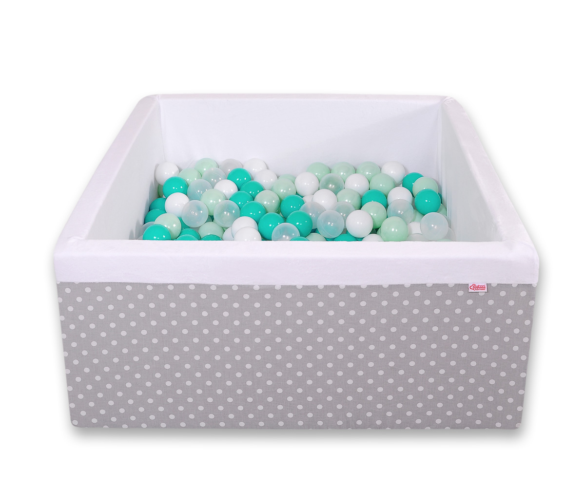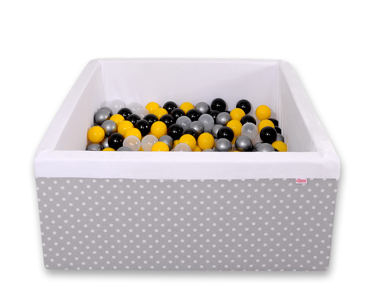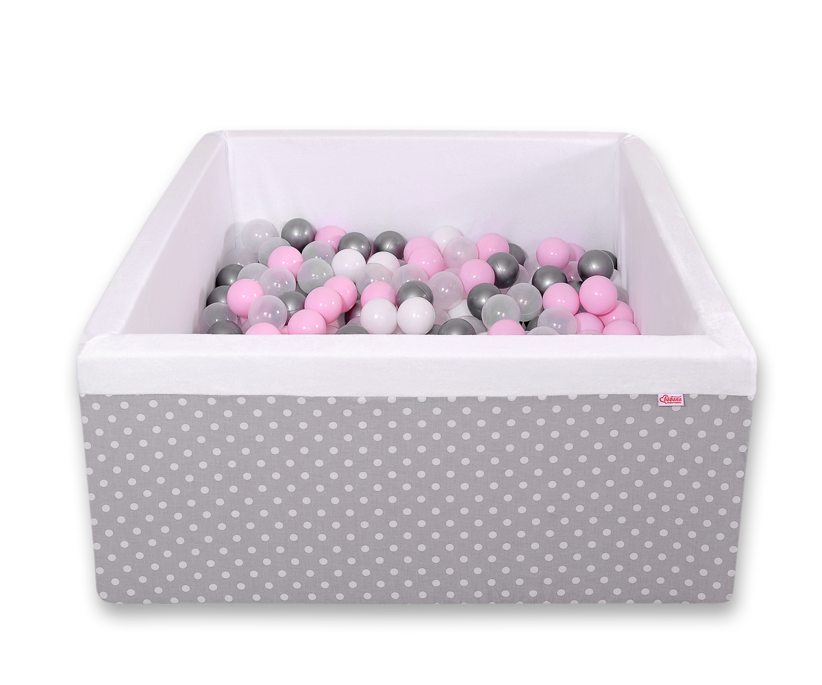 Bällebad minky mit Bällen 200st - Grau-Punktemuster Das bunte Bällebad eignet sich hervorragend um darin Draußen und in Haus zu spielen. Die bunten Bälle sind entwicklungsfördernd für das Kind. Der Pool ist aus weichem Schaumstoff gefertigt, bietet dadurch viel Sicherheit beim spielen.