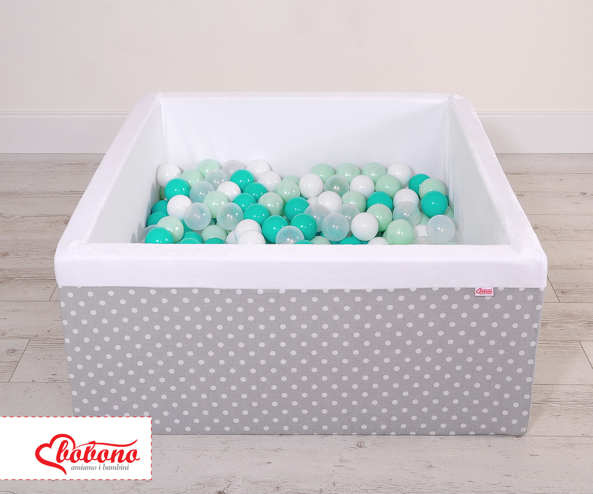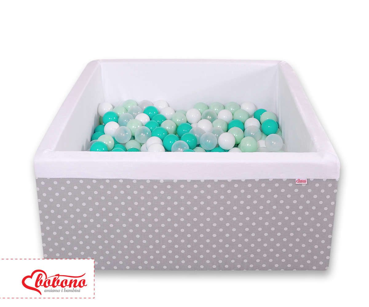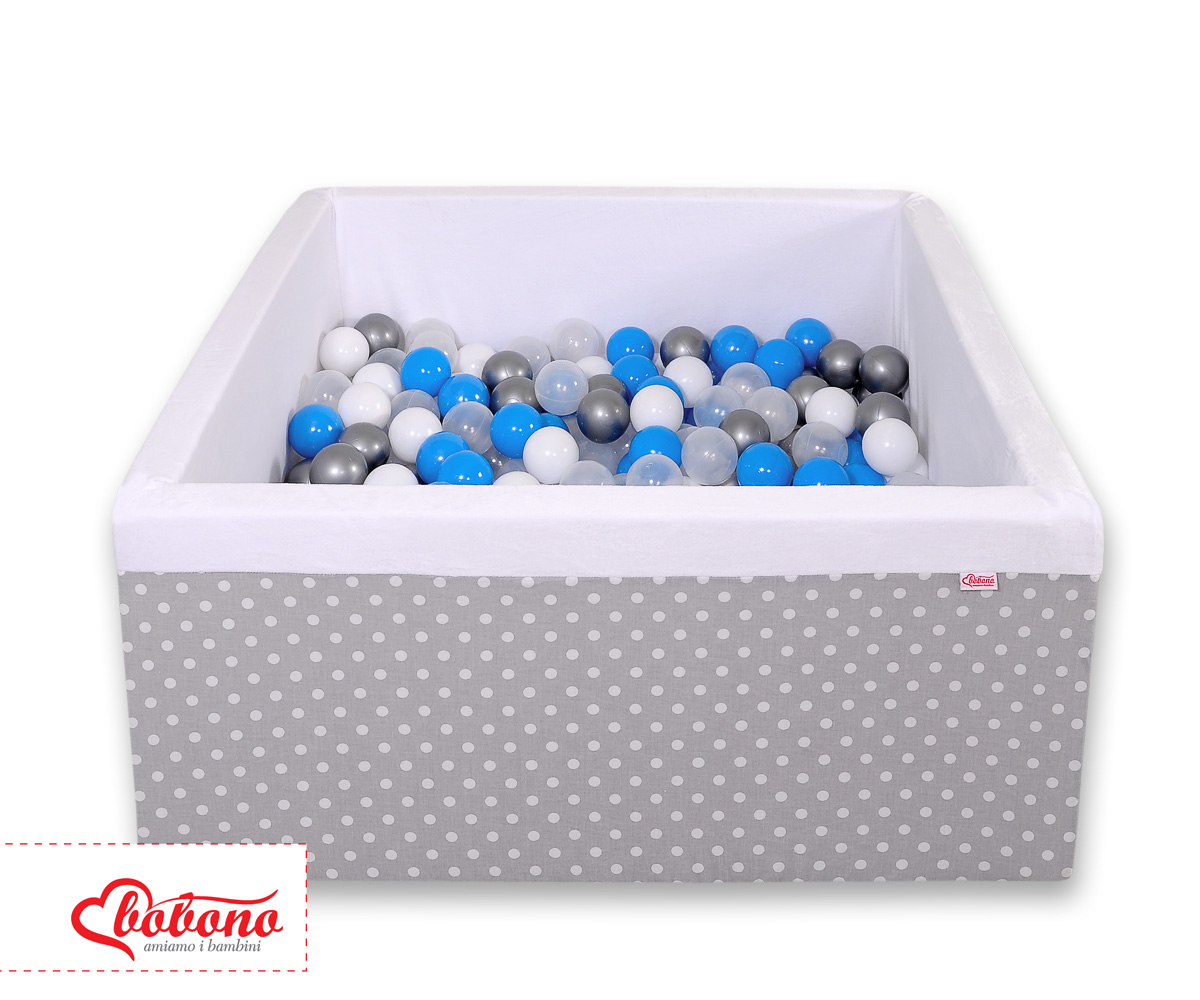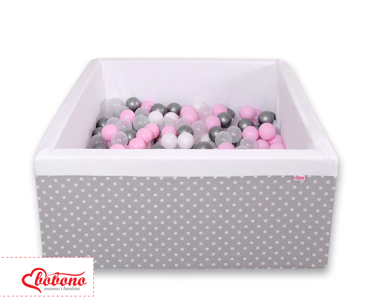Bällebad minky mit Bällen 200st - Grau-Punktemuster Das bunte Bällebad eignet sich hervorragend um darin Draußen und in Haus zu spielen. Die bunten Bälle sind entwicklungsfördernd für das Kind. Der Pool ist aus weichem Schaumstoff gefertigt, bietet dadurch viel Sicherheit beim spielen.