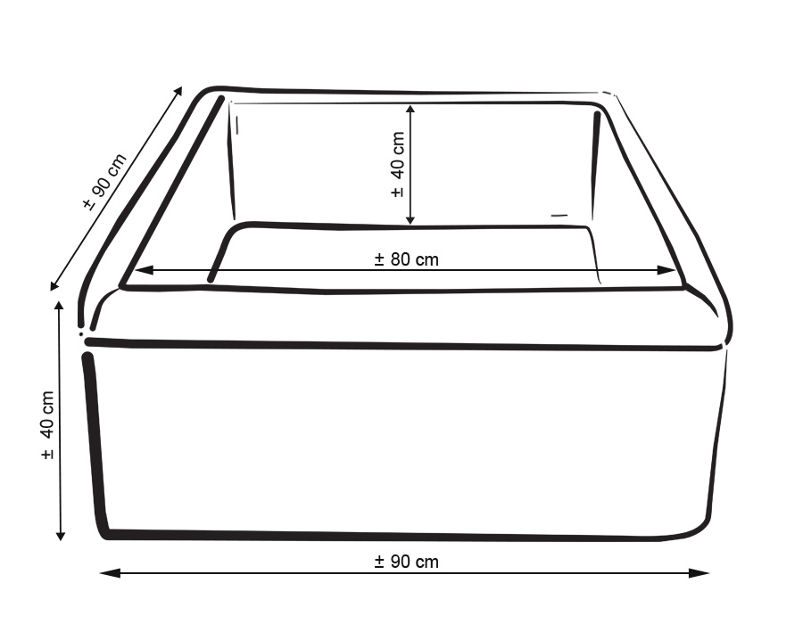 - Seitenlänge ca. 90 cm - Höhe ca. 40 cm - Wanddicke 5 cm