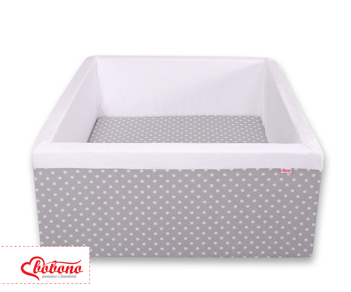 Bällebad minky ohne Bälle - Grau-Punktemuster Das bunte Bällebad eignet sich hervorragend um darin Draußen und in Haus zu spielen. Der Pool ist aus weichem Schaumstoff gefertigt, bietet dadurch viel Sicherheit beim spielen.