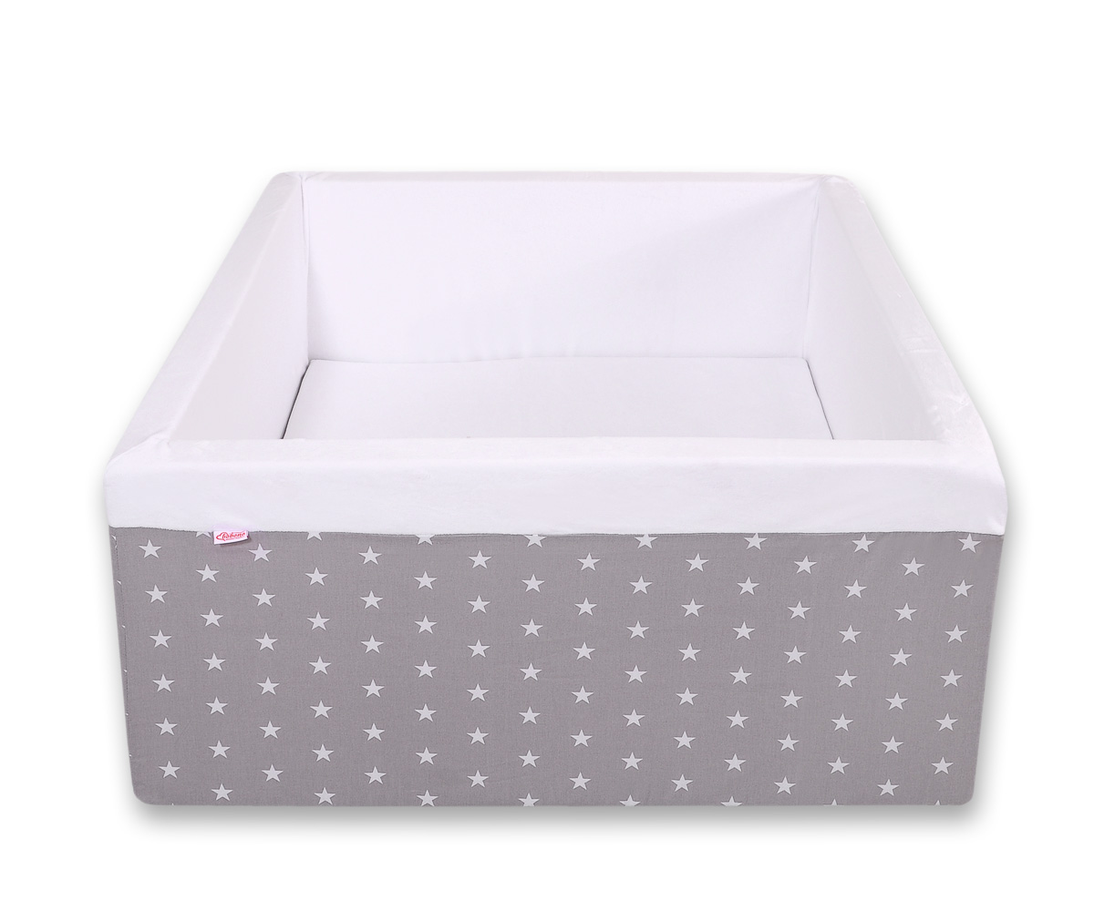 Bällebad minky ohne Bälle - graue Sternchen Das bunte Bällebad eignet sich hervorragend um darin Draußen und in Haus zu spielen. Der Pool ist aus weichem Schaumstoff gefertigt, bietet dadurch viel Sicherheit beim spielen.