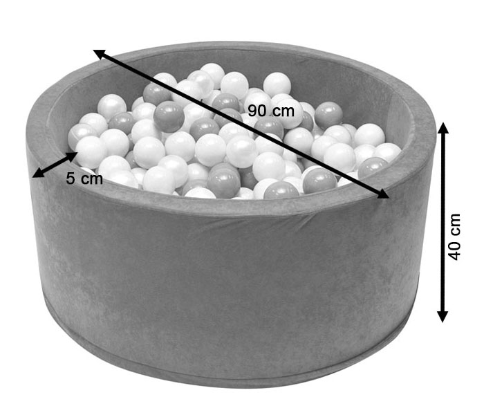 Mit einem Durchmesser von 92 cm und einer Höhe von 40 cm bietet dieses Bällebad ausreichend Platz für stundenlanges Vergnügen. Die 5 cm dicke Wand und die 3 cm dicke Bodenmatte sorgen für Stabilität und Sicherheit beim Spielen.