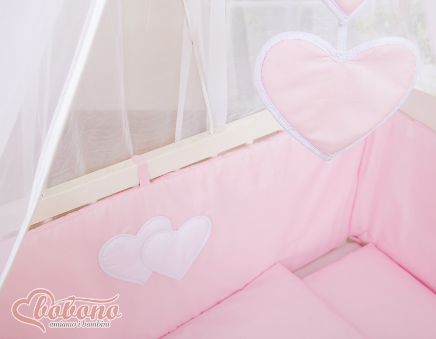 Komplett Beistellbett mit Matratze und Bettwäsche Set - Hängende Herzen rosa