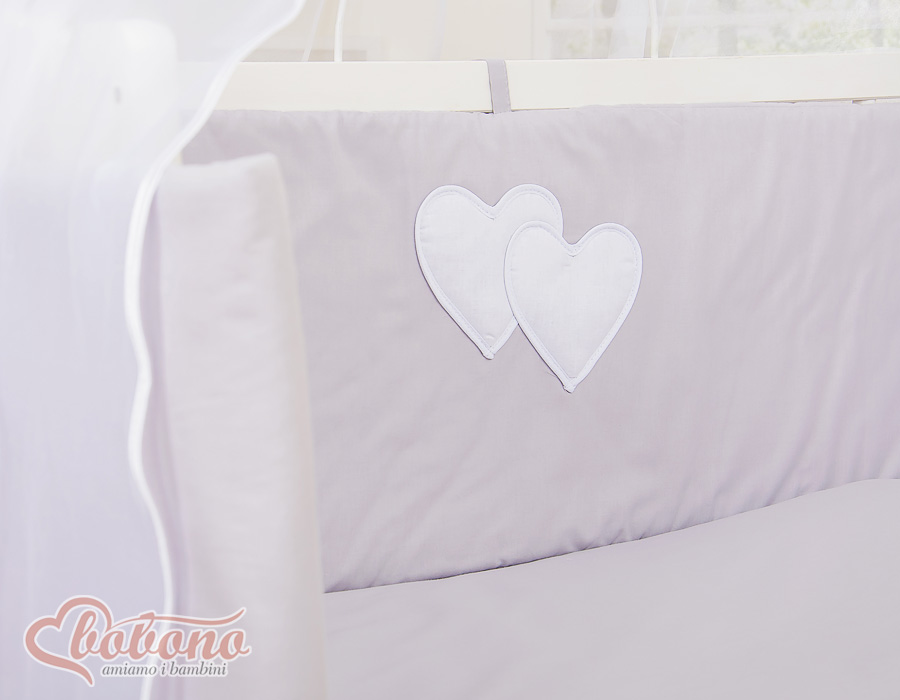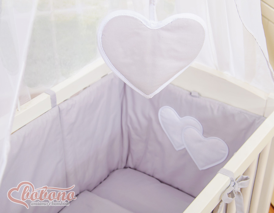 Beistellbett mit Rollen und Matratze und Bettwäsche Set - Hängende Herzen grau