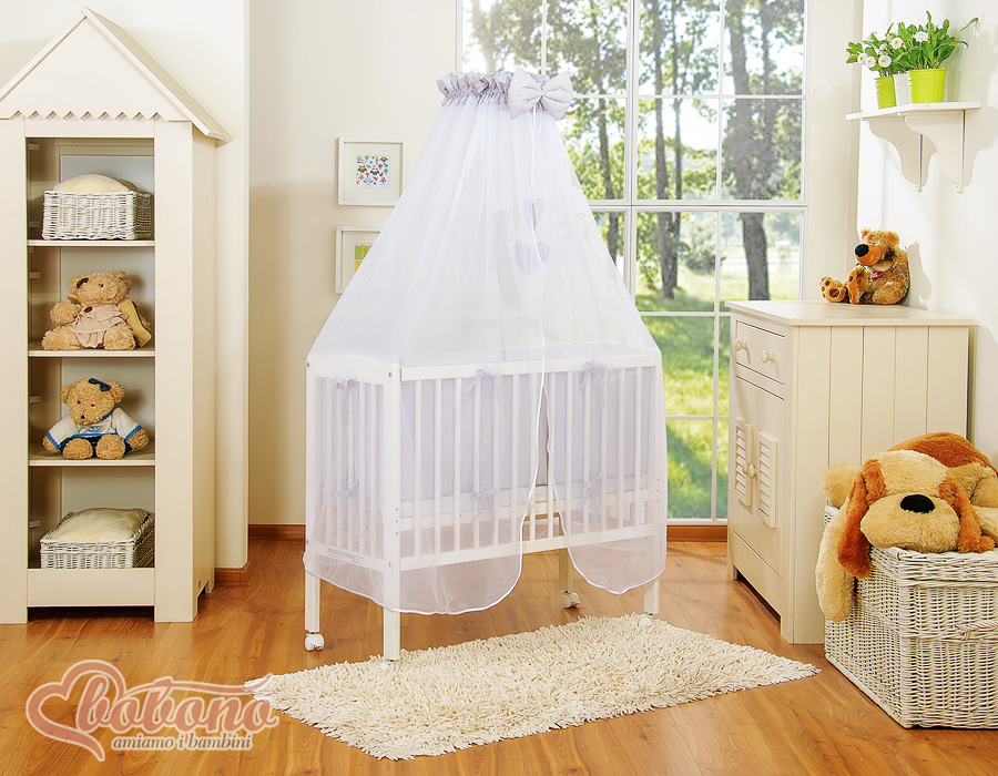 Grau Herzen Bettwäsche Matratze Beistellbett Komplett Set Betthimmel Rollen
